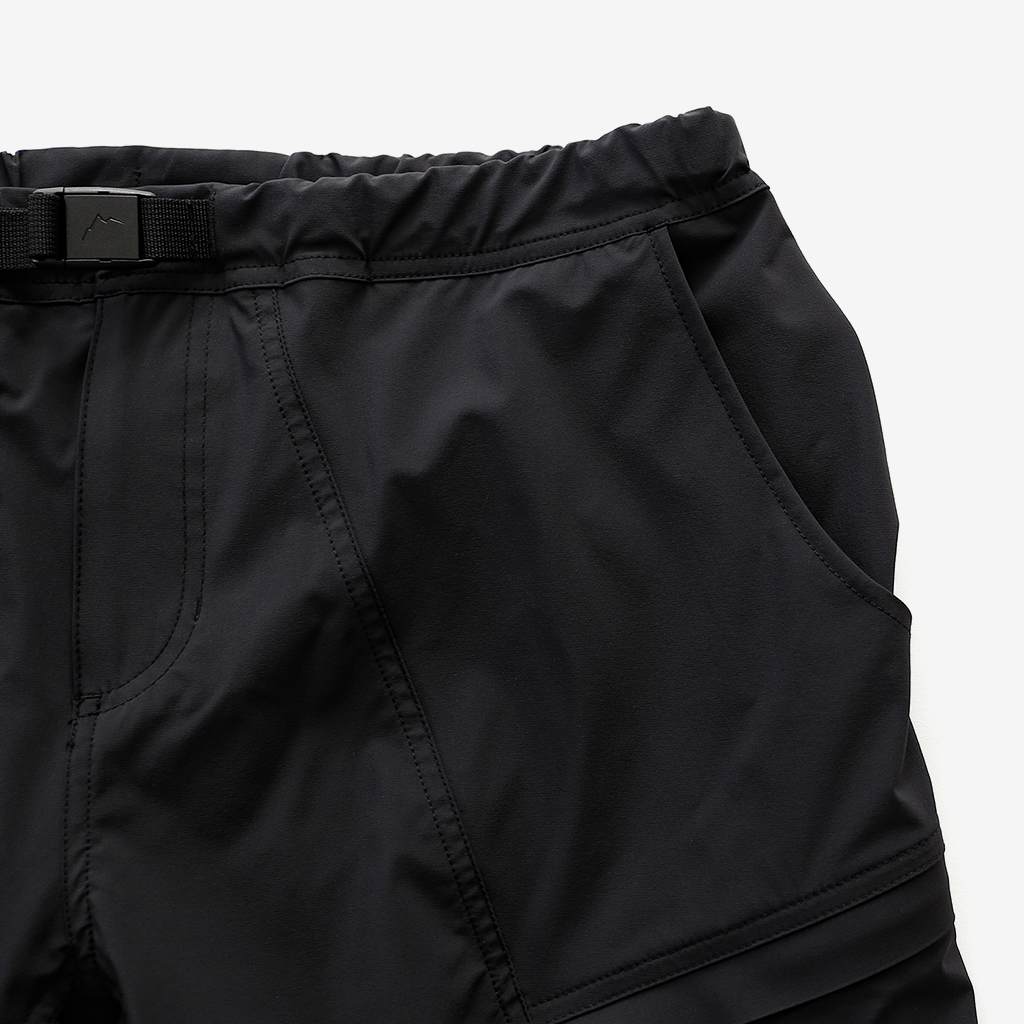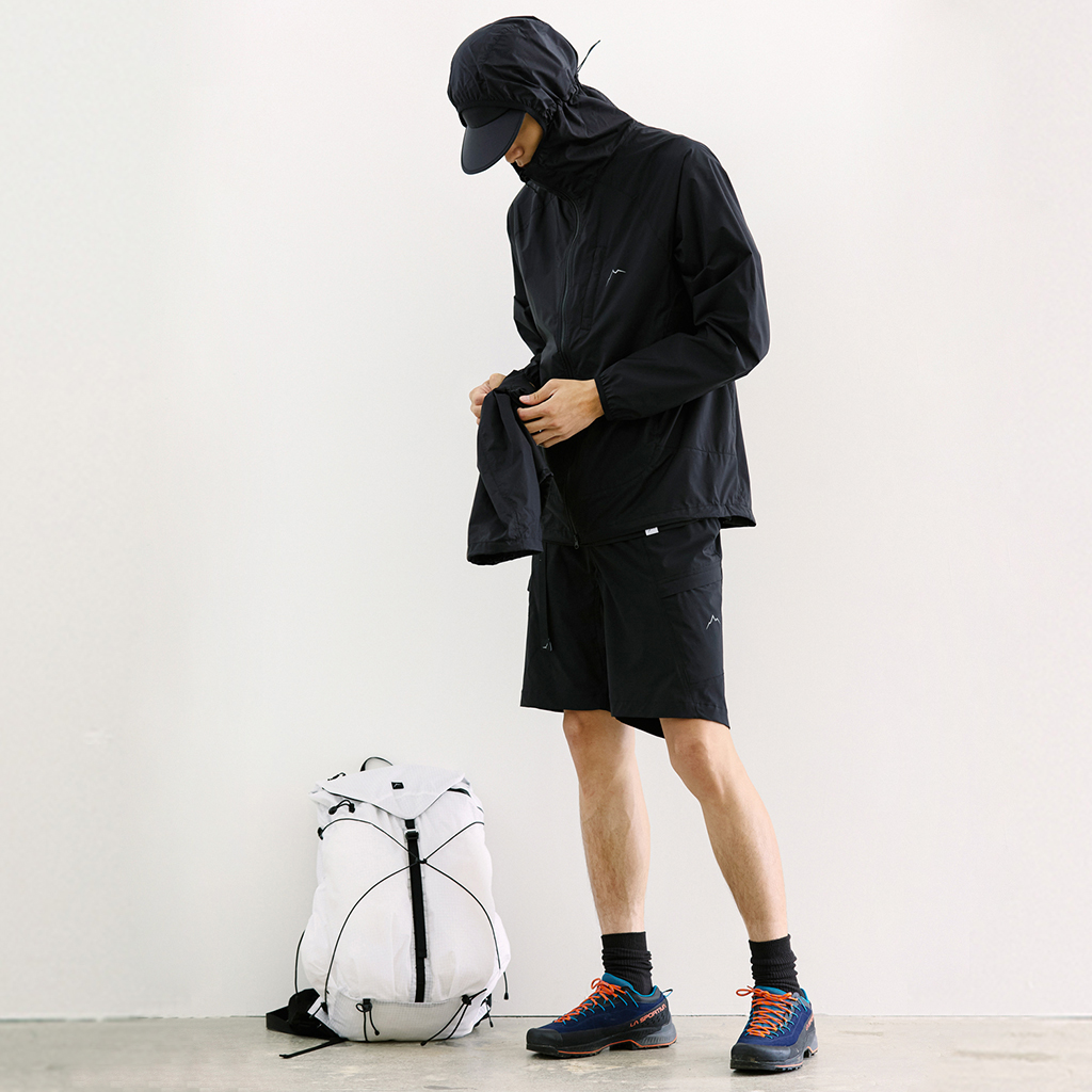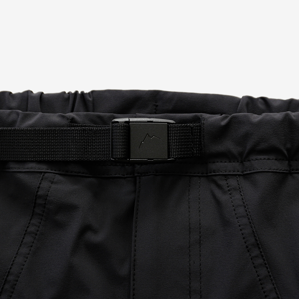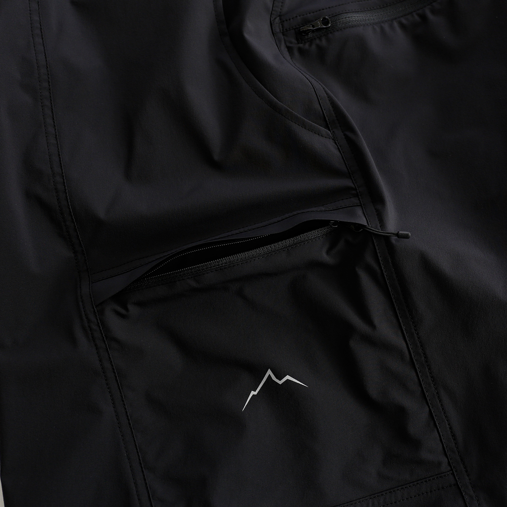 CAYL『Stretch Shell Shorts』は、通気性の良いナイロンスパン生地で、ストレッチ性抜群のハイキングショーツ。 計6か所の収納ポケットを備え、両サイドと背面は鍵や財布などの貴重品も安心して収納できるジッパーポケットになっています。 ウエストはゴムとウェビングベルトで直感的に絞り具合を調整可能。腰上で留めてアクティブに動いたり、食事などリラックスしたい時は緩めたり。 丈は長めで太すぎない品のあるシルエットのショートパンツです。 カラーは、Black、Grey、Oakの3カラー展開です。 背面。 モデル:184cm/Lサイズ