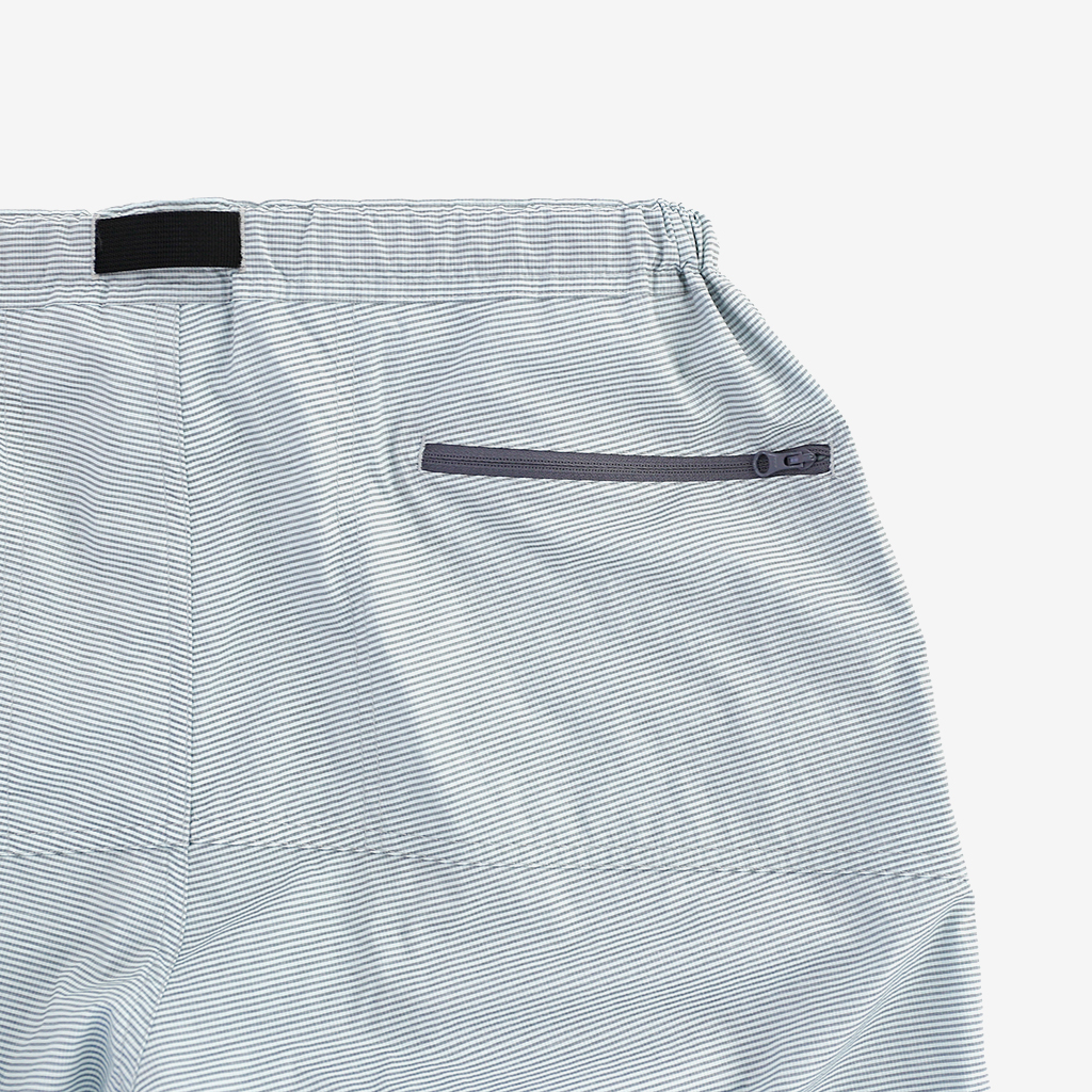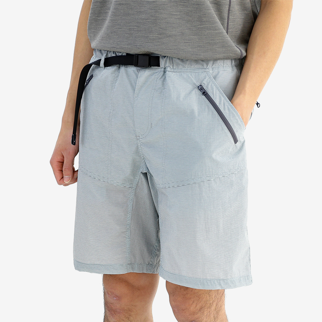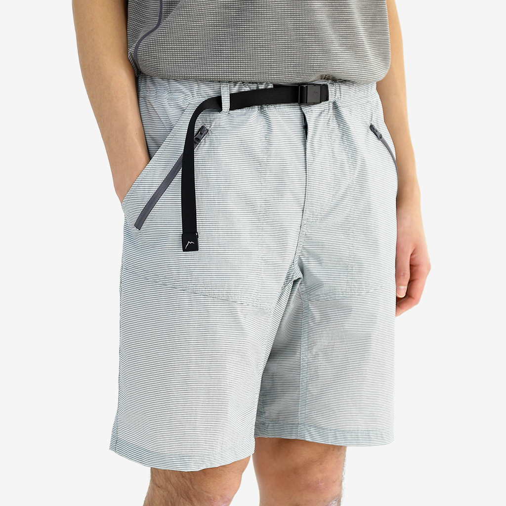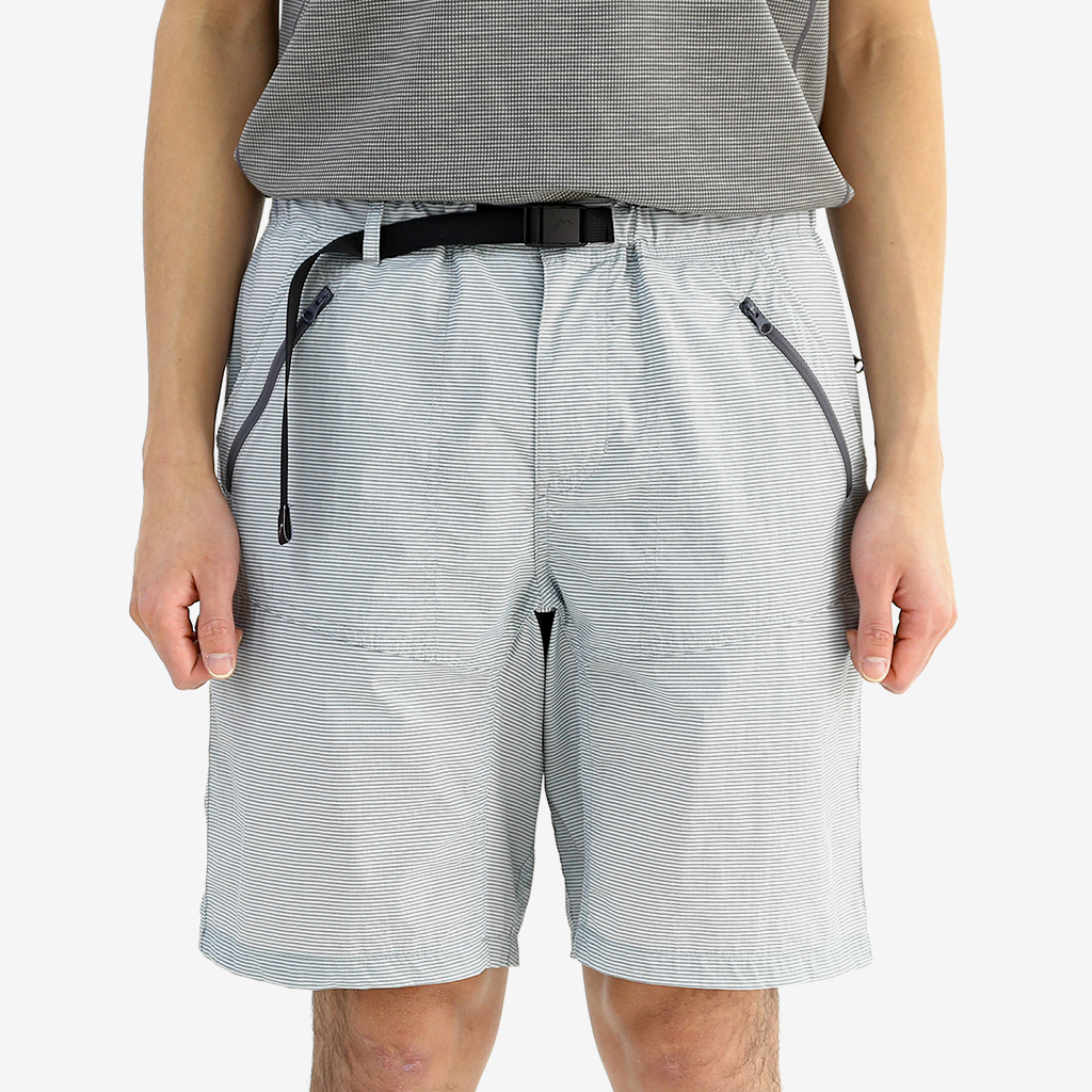 CAYL『Light CHK Shorts』は、15Dのナイロンとポリエステルをミックスした生地で作られた、薄手ながら撥水コーティングが施されたハイキングショーツ。 ストライプにも見える細かなチェック柄が、軽やかでユニークな印象を生み出しています。 適度な防風性と通気性を持ち、軽量でコンパクトになるので荷物の負担にならず、幅広いシーンで活躍します。 速乾性も高く、濡れてもすぐに乾いてくれるのもうれしいポイント。 同素材で作られた『CHK 2 Pocket Short Sleeve Shirts』や『Flap Pocket CHK Jacket』『Light CHK Mesh Cap』と合わせても◎ カラーはLight Grey、Dark Greyの2カラー展開になります。 背面。 モデル:184cm/Lサイズ モデル:165cm / Sサイズ