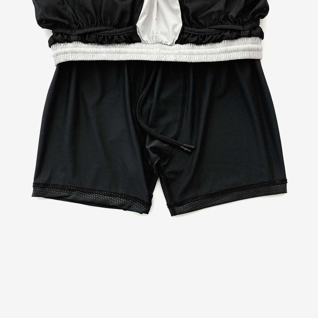 背面。 キーリングも付属。 通気性を高める細かなレーザーホール加工。 ボクサータイプのインナーパンツを内蔵しています。 モデル:184cm/Lサイズ