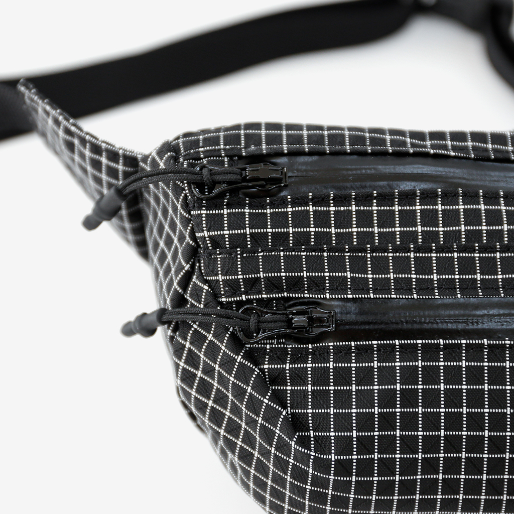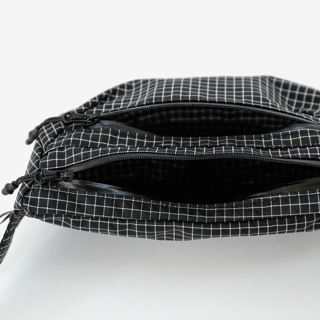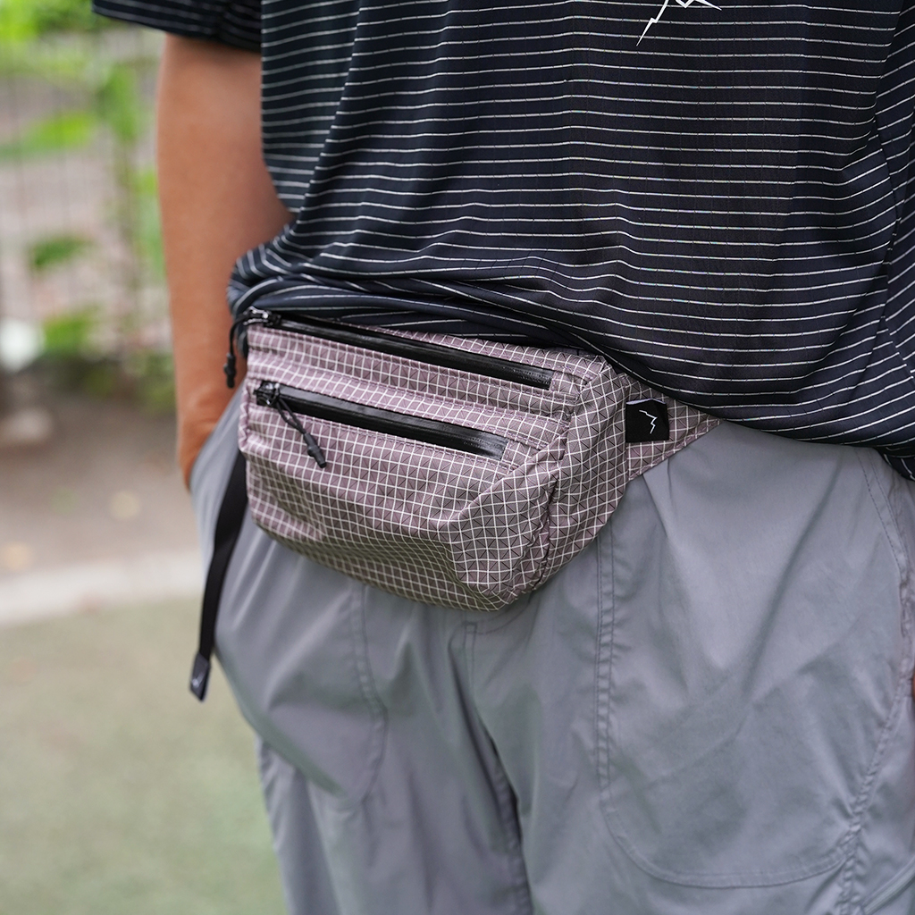 CAYL『Grid Fanny』は、動きに干渉しにくいコンパクトなファニーパック。 コンパクトながら2気室に分かれているので整理しやすいのがうれしいところ。止水ジッパー式なので、ちょっとした雨でも安心です。 絶妙なサイズ感は、ウエストはもちろん、ヒップや肩に掛けたり、気軽にバックパックの外ポケットにも入れておける薄さで使い勝手よし。 スマホや財布、行動食、日焼け止め、サングラスなど、必要な時にすぐ取り出したいものを手元におきながら、快適に行動できます。 絶妙なカラー展開も魅力的。 カラー:Grid Black カラー:Grid Grey カラー:Grid Khaki カラー:Grid Yellow Green カラー:Grid Red Bean 背面。 コンパクトながら2気室に分かれているので整理しやすい。
