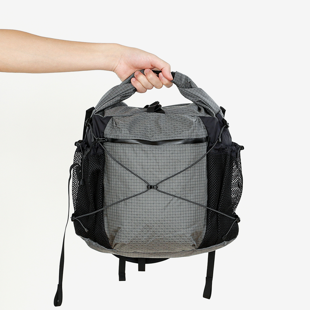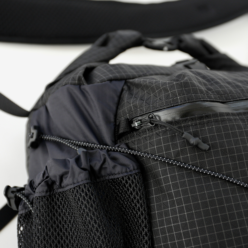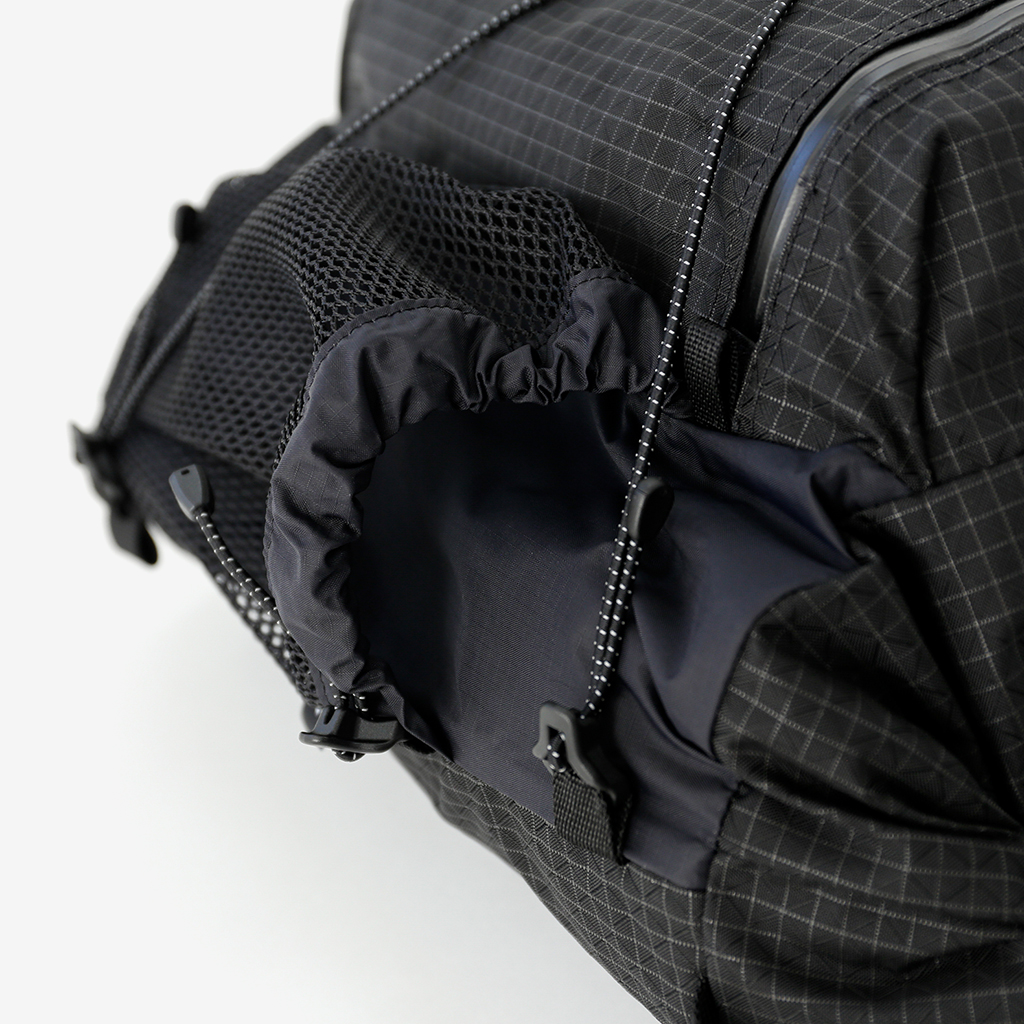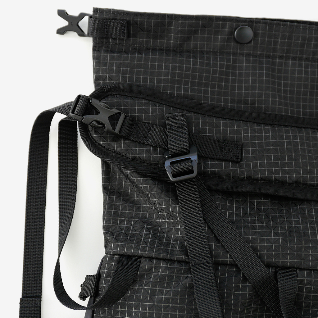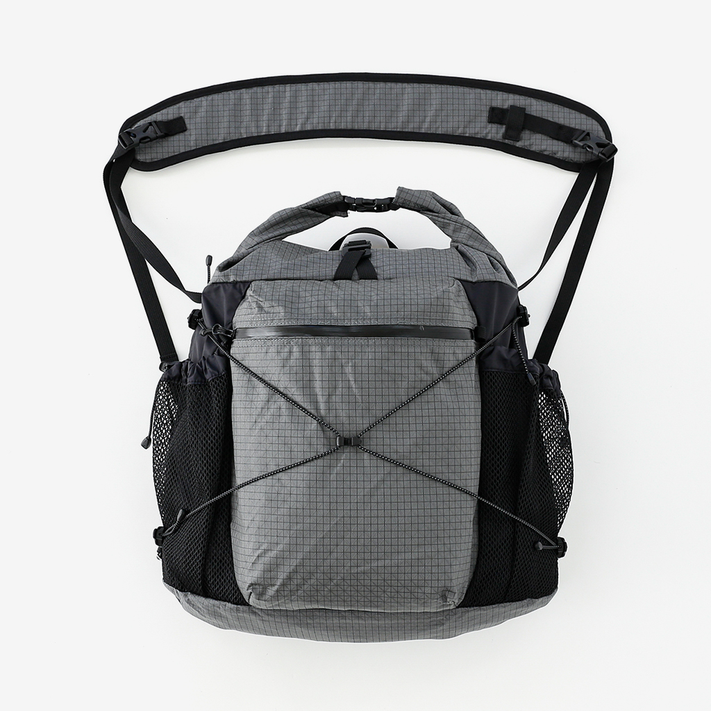 ハイキングバッグのノウハウを生かしたCAYLが提案するあらたなライフスタイルバッグ『Rolltop Cross Bag』 容量10Lでデイリーユースに最適なショルダーバッグは、ロールトップで荷物量に合わせて調整できます。 メインコンパートメントの内部には、PCも収納可能なクッション付きジッパーポケットを備え、外側にもメッシュポケットと、ジッパーポケットで整理しやすい設計になっています。 ショルダーベルトは取り外しも可能で、手持ちスタイルでも使用可能。 メイン部分には、タフで耐久性の高いグリッドファブリックを。サイドには軽量でしなやかな70D リップストップナイロンを配置。 異なる素材をCAYLらしいデザインでまとめ上げています。 カラー:B-Grid Black カラー:B-Grid Grey ロールトップ入口はスナップボタン式。 お好みでウエストベルトをショルダーベルトに接続することで、より安定して背負えます。 ウエストベルトは簡単に取り外しも可能です。 ハイキングバッグのノウハウを生かしたCAYLが提案するあらたなライフスタイルバッグです。