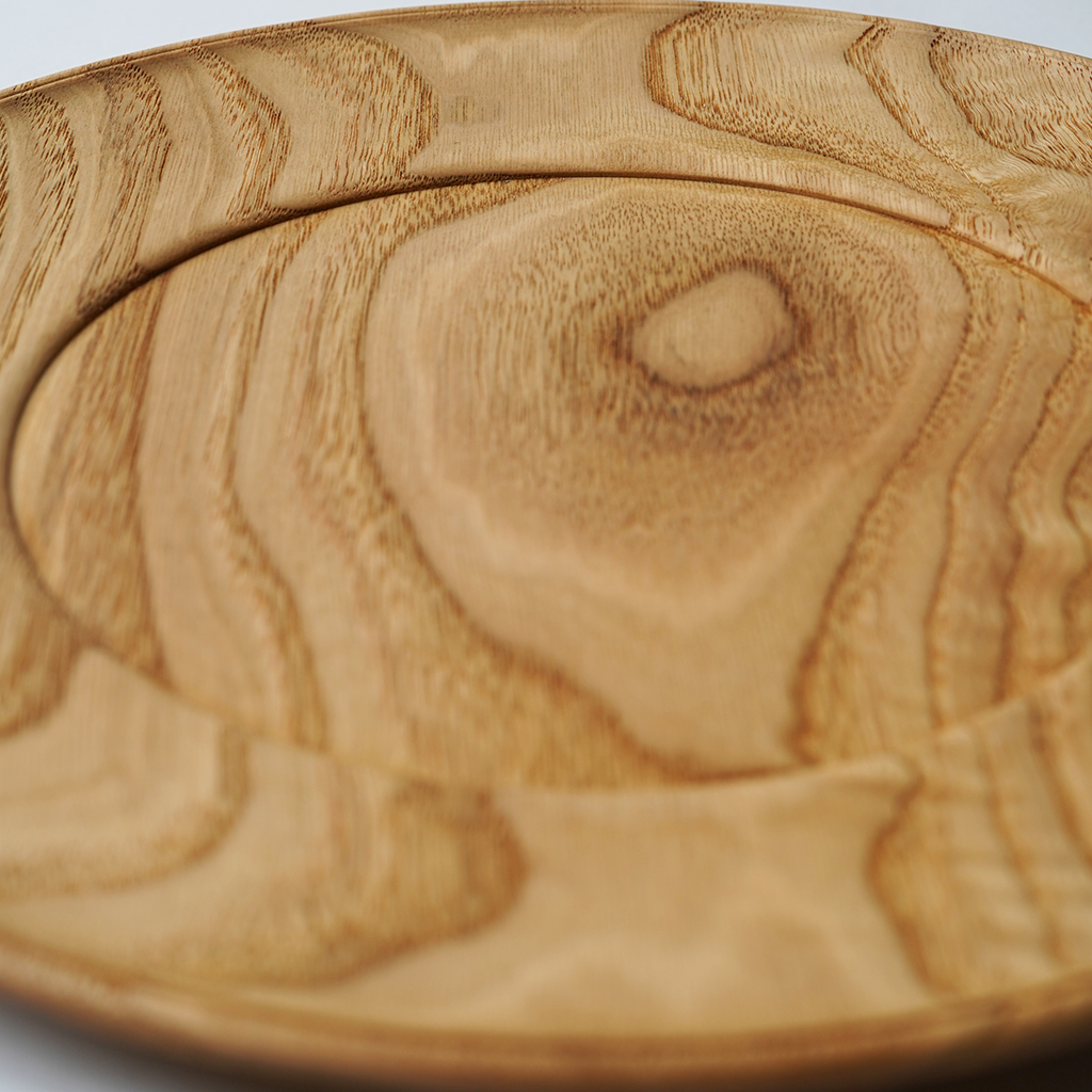 立山連峰を望む富山の地で、自分の愛する登山と料理のための木の器などを製作する木工作家、中西健太氏による【foot of the mountain】 ザックに掛けて外でも楽しめる器でありながら、暮らしにも馴染むものを手掛けています。 シンプルながら美しいリム皿。 ひとかたまりの木材から削り出して、ハンドメイドで一点一点丁寧に作られています。 こちらは水に強く耐久性の高い栗材で作られた作品。 天然の木目を活かした素材感は上品さと温かみがあり、食卓やキャンプサイトにもぴったり。パスタ皿やパン皿、大きめの取り皿や1人分のおかずに。 特別な一皿になること間違いありません。 一点一点丁寧に作られた、佇まいも美しい器です。