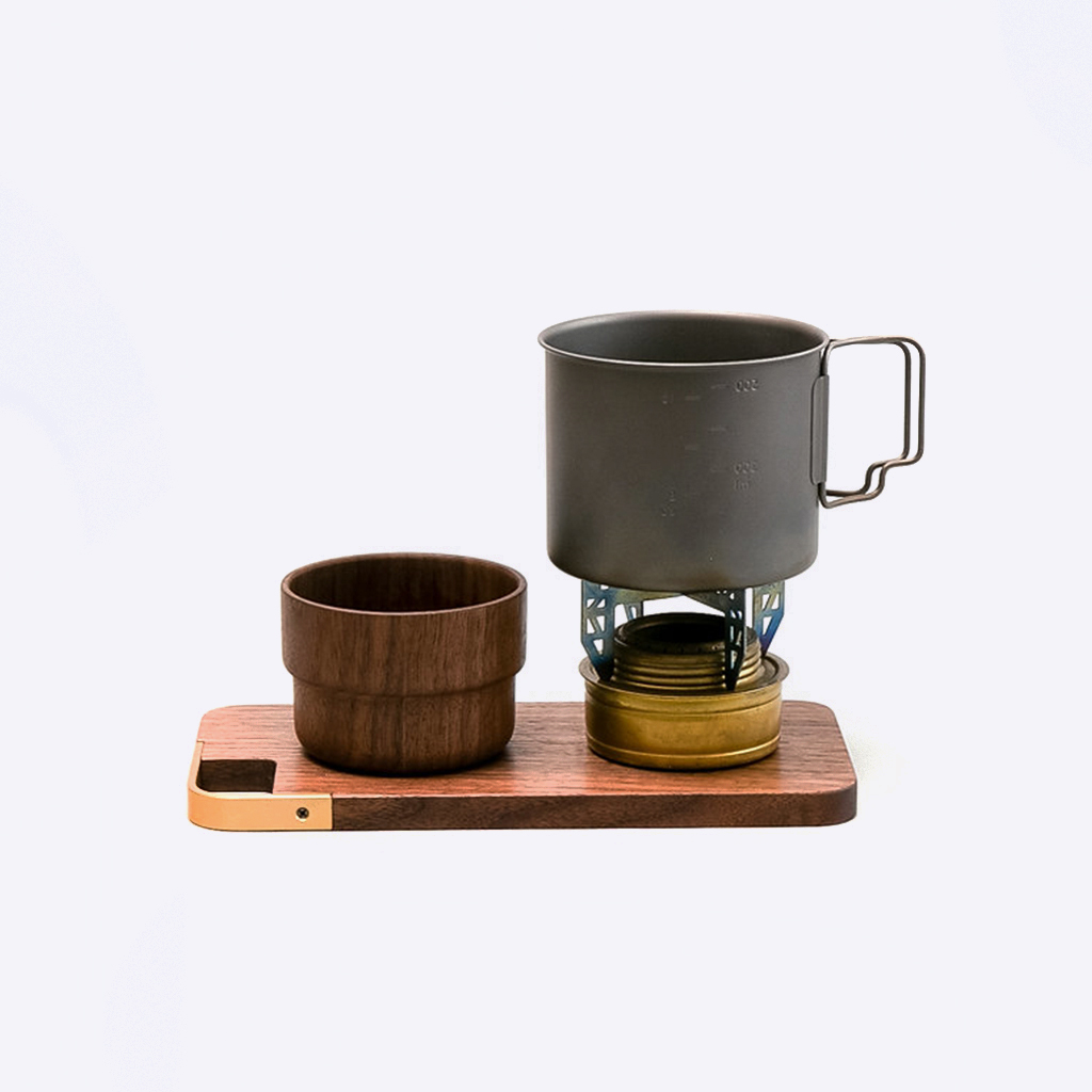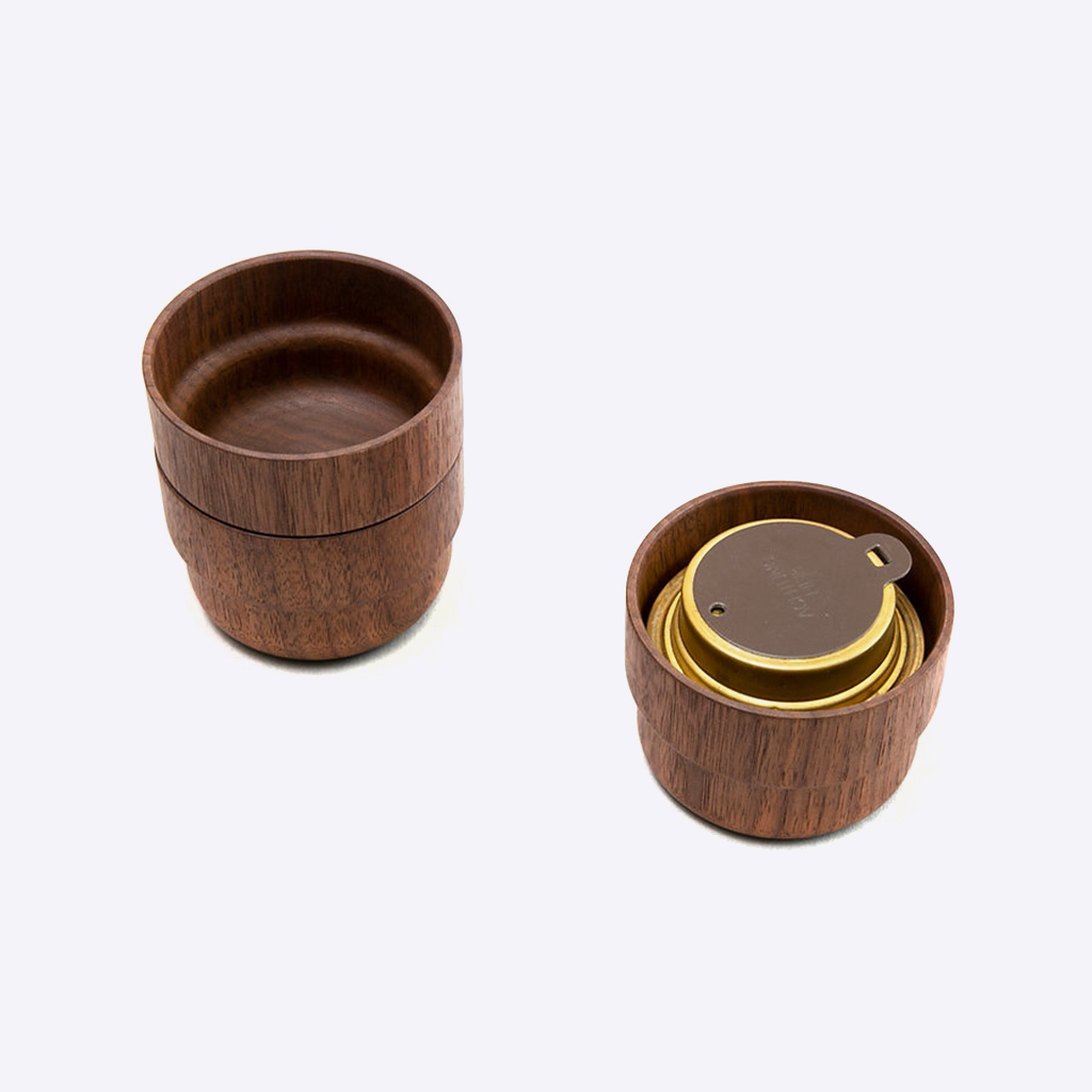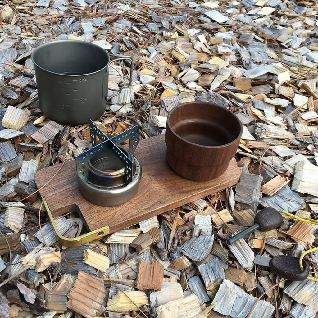 Atelier Yocto(アトリエヨクト)のAS-cupは、屋外でゆっくりお湯を沸かしてコーヒーを楽しむことを想定して生まれた木製のコーヒーカップ。 EVERNEW チタンアルコールストーブやトランギアのアルコールストーブなどがぴたりと中に収まり、直径86mm以上のクッカーにもすっぽり入るデザイン。 カップ同士もスタッキングできますので、携帯性や収納性に優れています。 ウォールナット材をくり抜いたその形は手にもよく馴染み、熱いコーヒーを入れても熱くて持てないと言ったことがありません。口当たりが柔らかく、コーヒーとも相性の良いウォールナット独特の薫りが、コーヒーの時間をまた更に豊かにしてくれます。 使い始めはウォールナット独特の香りが強く出ることがあります(個人差あり)。使い込むうちに、コーヒーの香りと脂分が染み込み和らいできます。 ロゴ エバニュークッカーとMINI-boardの組み合わせ クッカーの中にすっぽり収まります MINI-boardオークとの組み合わせ MINI-boardウォルナットとの組み合わせ