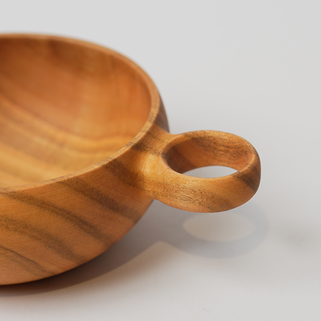 立山連峰を望む富山の地で、自分の愛する登山と料理のための木の器などを製作する木工作家、中西健太氏による【foot of the mountain】 ザックに掛けて外でも楽しめる器でありながら、暮らしにも馴染むものを手掛けています。 ひとかたまりの木材から削り出して、ハンドメイドで一点一点丁寧に作られています。