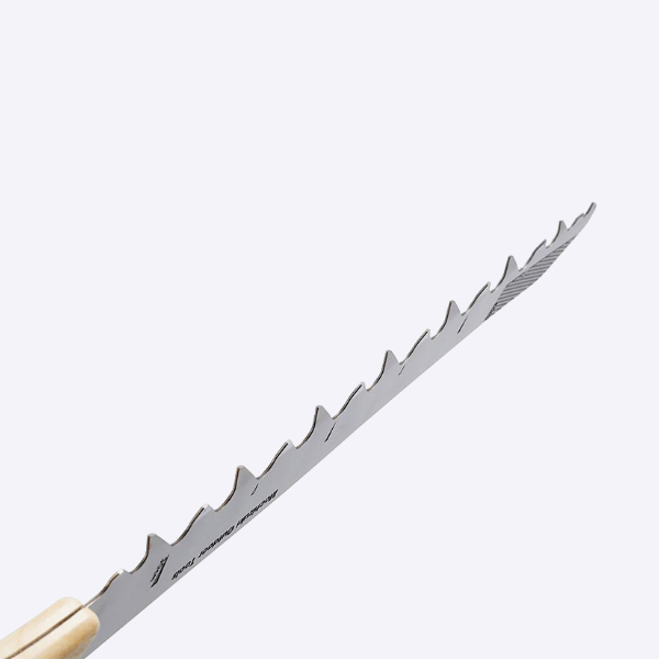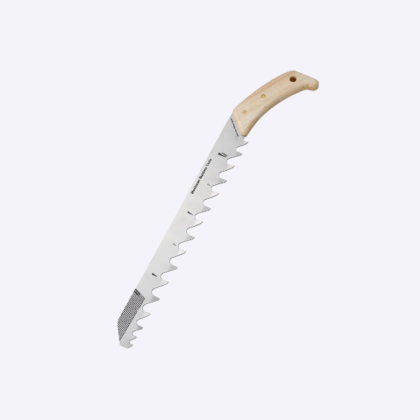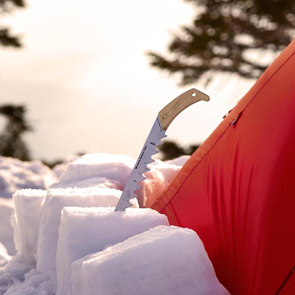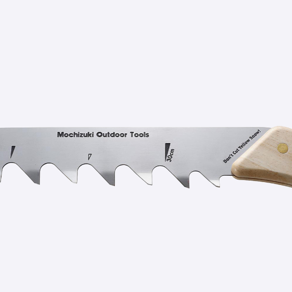 のこぎり職人の高齢化と後継者不足により、2012年にこの世から消えてしまった、モチヅキスノーソーが進化して帰ってきました。 1983年の発売以来、数々の登山隊、冒険家、スキーヤーの雪上生活を支えてきた日本製の雪用のこぎり、モチヅキスノーソー。金物の街、新潟県燕三条ののこぎり職人によって丹精込めて手づくりされた刃は、日本だけにとどまらず海外のアウトドアズマンの間で高い評価を得てきました。 一度はこの世から消えてしまったモチヅキのスノーソーが、多くの復活を望む声に応えるべく、ヘビーユーザーであったビッグマウンテンスキーヤーであり国際山岳ガイドの佐々木大輔さん監修のもと、新生・モチヅキスノーソーとして復活。 元祖モチヅキスノーソーよりも5cm短くして、全長47cmに。雪洞内でも取り回しやすく、バックパックの背面に挿入できるサイズに設計されています。 持ち運びしやすい専用ケースが付属します。 刃先には雪の結晶を測定することができる、2mmのクリスタルグリッドあります。 雪柱を切り出すときに目安になるスケールがついています。30cmスケールで使いやすい仕上がり。 交互に振れた刃“あさり”。刃先を順に逆にすることで、硬く締まった雪もスピーディーに切り割いてくれます。 しっかりと握りやすい柄のカーブ。 刃を守り、持ち運びに便利な専用ケース付き。