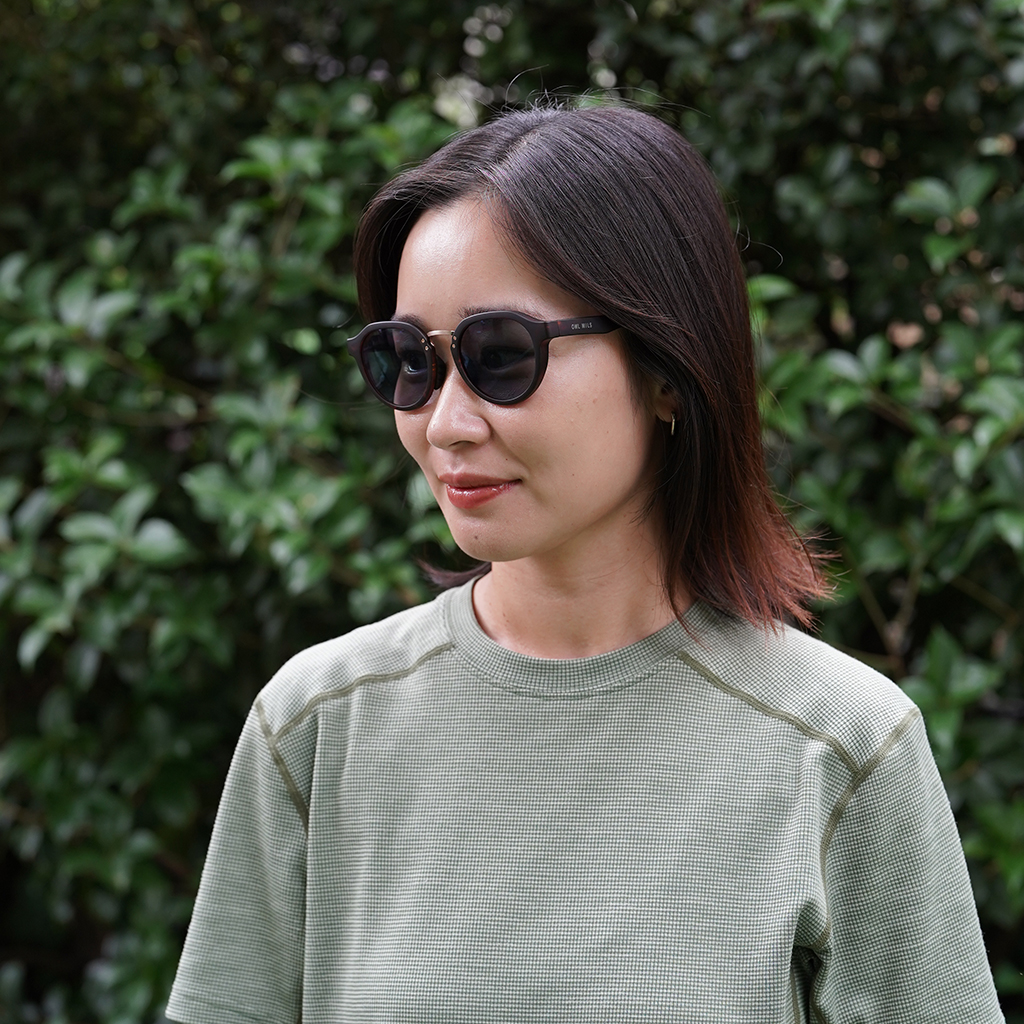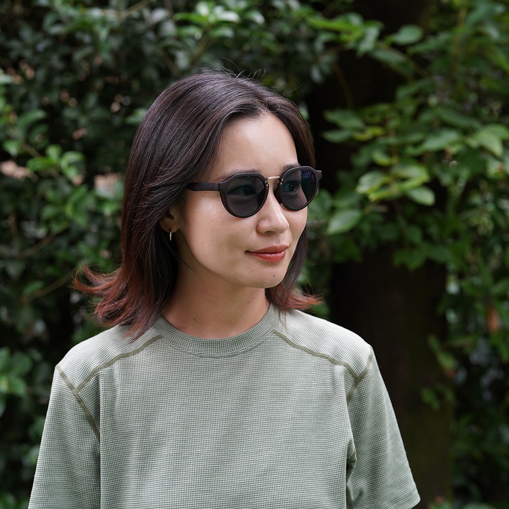 福井県鯖江市を拠点に、過酷な環境を想定して開発されたハイスペックな素材を使い、フィールドはもちろんタウンユースにも快適なサングラスを提案する【OWL MILS】(アウルミルズ) 採用する国産ハイスペックレンズ『MILS LENS』は、「偏光+ハイコントラスト」で、明るさを残しつつ、眩しさをカットすることで、朝から夕方、曇りや雪など、全天候に対応し、クリアな視界を確保します。 また、紫外線は99%カット、ブルーライトも約80%カットします。 “偏光レンズ”とは、ギラつきや乱反射を抑え、余分な光をカットして、目の健康を保つ上でも非常に優れたレンズ。 “ハイコントラストレンズ”とは、レンズカラーに応じた機能性により、特定の波長(色)をカットすることで色彩のコントラストを高め、より鮮明で視界がくっきり見えるレンズ。 『MILS LENS』の大きな特徴は、その高い透明度。一般的な偏光レンズの可視光線透過率は20%前後ですが、MILS LENSの可視光線透過率は31〜32%。 そのため、眩しさを抑えながらも従来のサングラスよりも視界が暗くなりすぎず、たとえば曇りの日や樹林帯を歩く時、トンネル内を運転するような時もサングラスを掛けたままで快適に過ごせます。 また、色の見え方も裸眼で見た時との差が少なく、カメラやスマホでの撮影時にも快適です。 『Kushinada』(クシナダ)は、ハイエンドモデル【RED LABEL】初となるメタルブリッジを採用。 RED LABELとしてのレギュレーションをクリアするべく、ブリッジ部分には軽量かつ高強度を誇るチタン素材を使用し、軽量さと耐久性を両立しています。 全体のサイズはRED LABELシリーズの中ではコンパクトに設計されており、女性でも掛けやすい小ぶりなシルエットながら、男性にも馴染む上品なデザイン。 トレイルやアウトドアシーンはもちろん、日常のスタイリングにも自然に溶け込む一本です。 『MILS LENS』にマルチコートを両面に施し、レンズの裏側からの光の反射光も防止することで、可視光線透過率が2〜3%あがり、より明るく、陰影もクリアに見えます。 レンズサイズを大きくとり、フレームの両サイドを少し厚めにすることで、より広範囲からの紫外線をカットしています。 フィッティングに関しては、金属の芯が入ったラバーパットを採用し、より細かな調整が可能。 また、フレームが非常にしなやかなため、全体的にテンプルを内側に設計し、顔に合わせてフィットする形状にしています。 さらに、テンプル(耳掛け)内側に、滑り止めのラバーパーツを配置することで、ズレを防止。 テンプル先はカラビナ形状になっていて、付属のグラスコードの取り付けが可能です。 ※『Kushinada』はカラビナ部分がアップデートされ、脱着時の髪の毛の引っ掛かりを軽減しています。 【RED LABEL】ハイエンドモデル マラソン、トレイルランニングなど激しい動きを有するアクティビティ向けのレーベル。 他のレーベルに比べ、最もフィッティングに優れ、レンズも最高スペックのものを搭載。 これ1本あれば、ほぼ全てのアクティビティに対応が可能です。 カラー:col.01 マットブラック カラー:col.02 マットデミブラウン カラー:col.03 クリアオリーブ col.04 クリアブラウングレー テンプル(耳掛け)内側に、滑り止めのラバーパーツを配置することで、汗をかいてもズレにくくなっています。 テンプル先はカラビナ形状になっていて、付属のグラスコードの取り付けが可能です。 メガネ拭きにもなる付属の巾着ケース。 カラー:col.03 クリアオリーブ カラー:col.03 クリアオリーブ カラー:col.02 マットデミブラウン カラー:col.02 マットデミブラウン