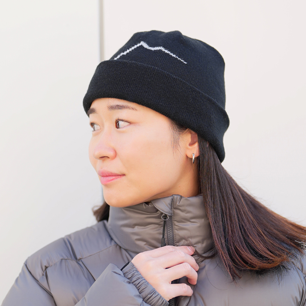 CAYLの大きな山ロゴが入った『Logo Beanie Long』 折り返し部分を調整することで深さやバランスを調整できます。 アクリル製のため、あたたかく、強度と耐久性があります。秋冬のアクティビティやデイリーユースに。 カラー:Black カラー:Blue カラー:Violet