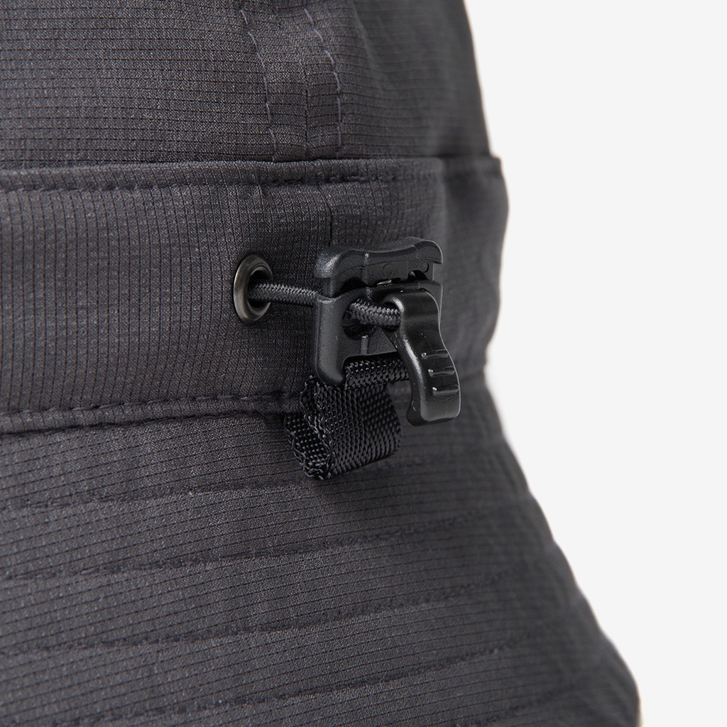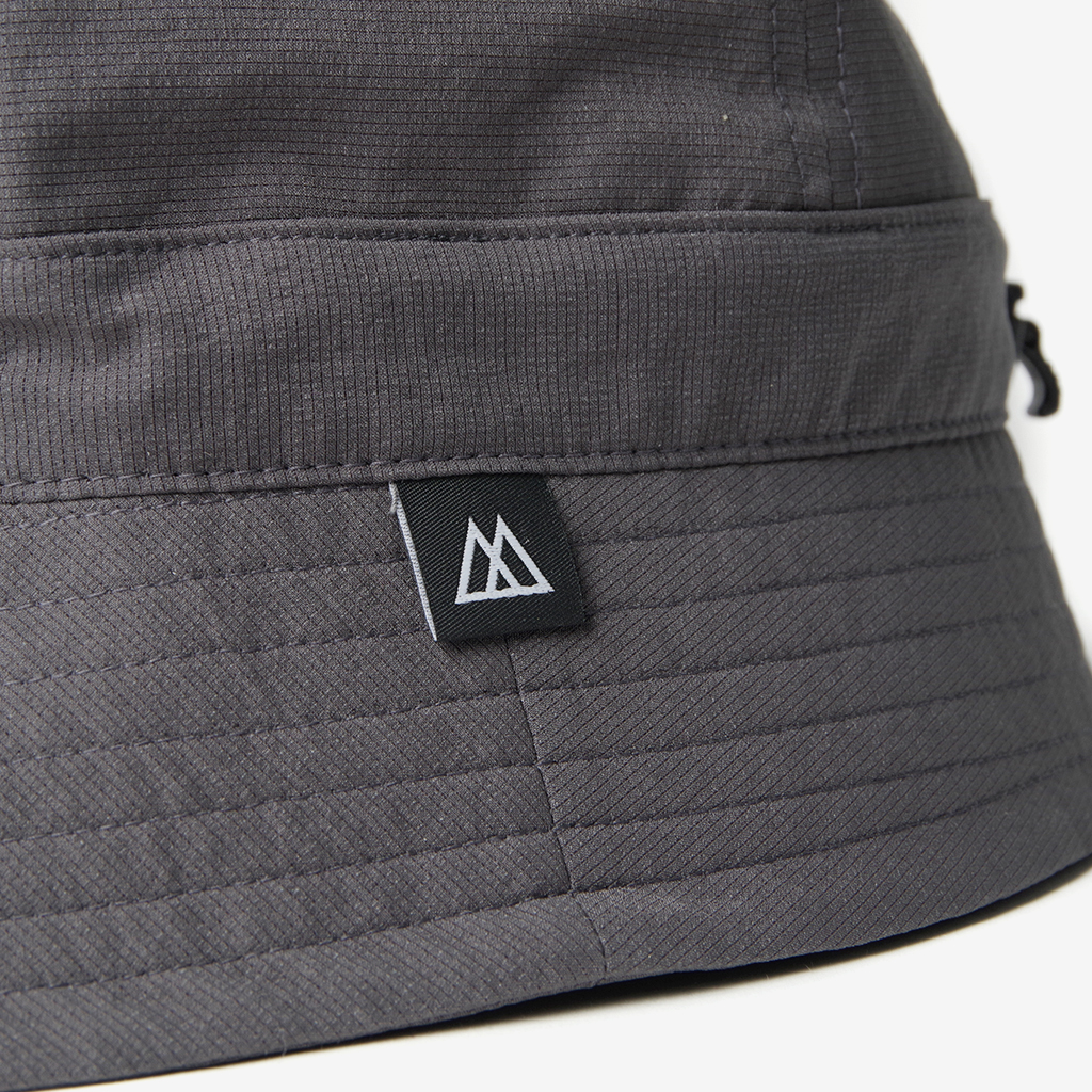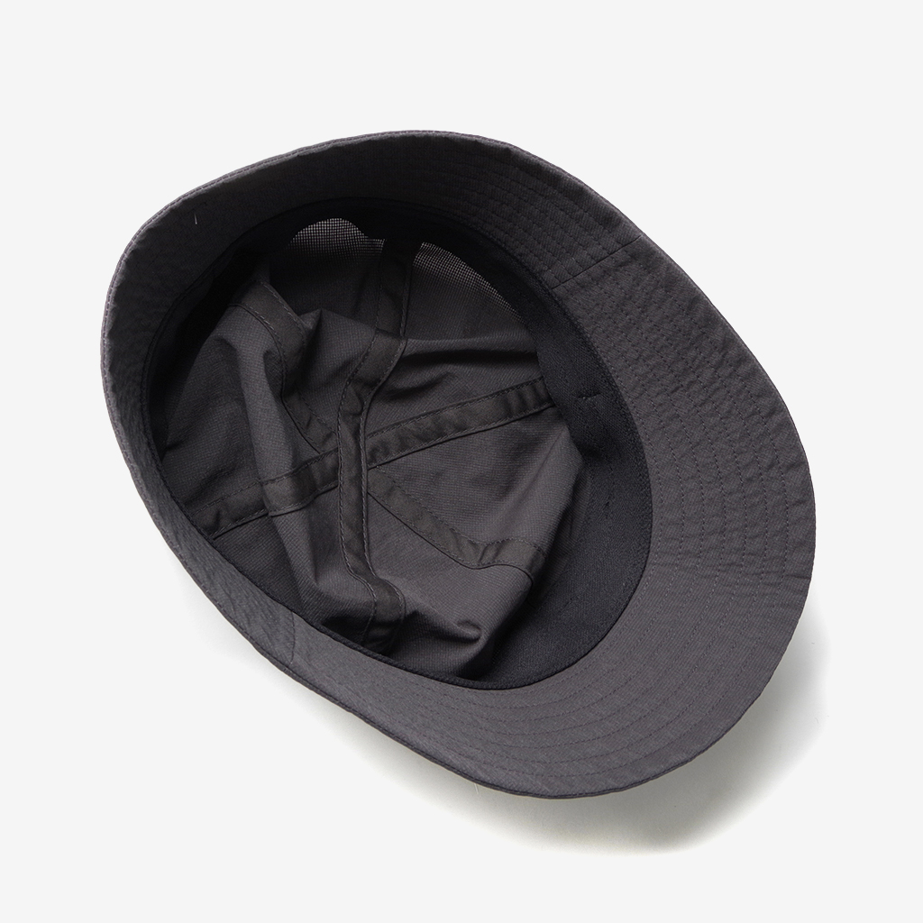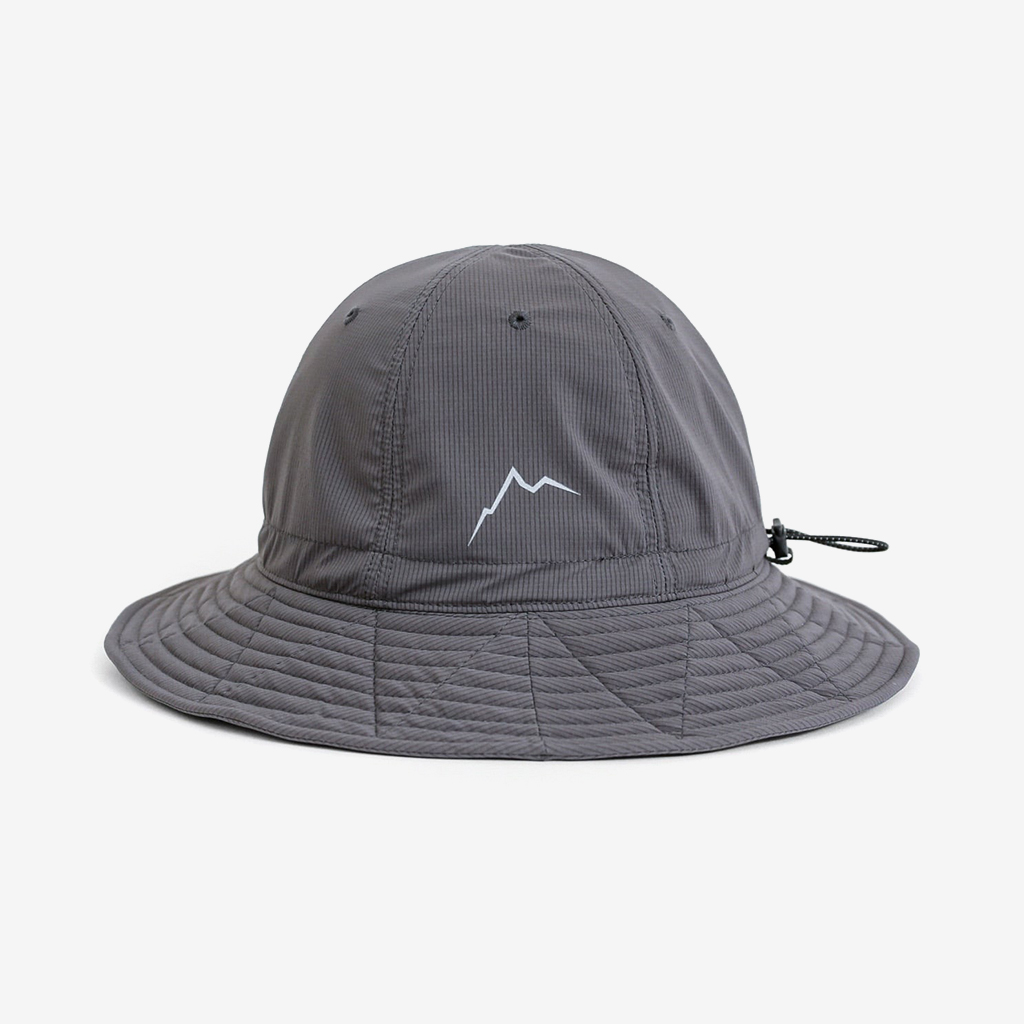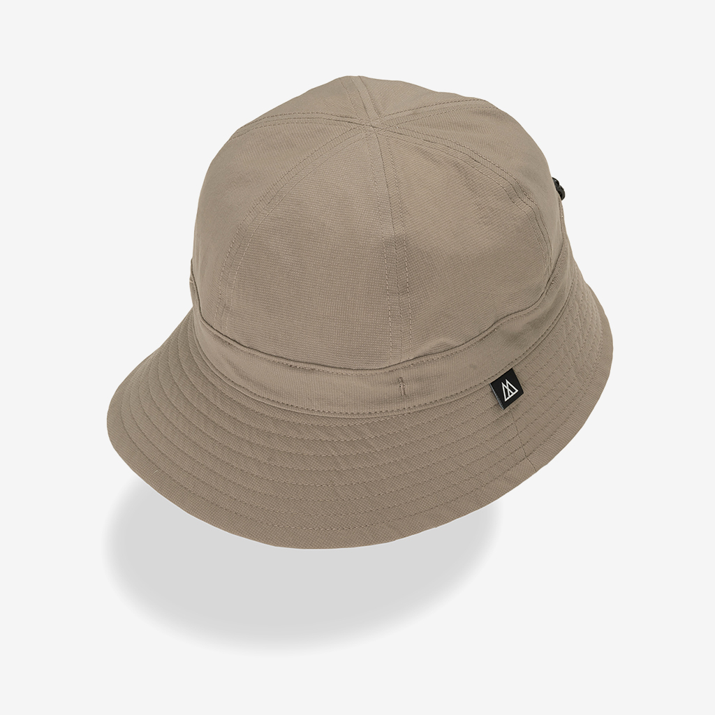 『Nicetime Mountain Gallery』の5周年を記念し、RIDGE MOUNTAIN GEARとコラボレーションしたスペシャルアイテム。 RIDGE MOUNTAIN GEARの代表的なアイテムのひとつ『Enough Hat』 代表の黒澤さんが、夏場の高地の稜線歩きなどで、キャップでは耳が丸出しになって日焼けして困っていたことから製作されました。 一番の特徴はブリムの形状。通常だと平均的に開いているブリムを、前、横、後ろそれぞれで開き具合を変えています。 前側はまるでキャップのヒサシのようなカーブを描いた形状に、横は耳を覆うギリギリの開き具合。後もあまり開きすぎず風の影響を受けないよう短めに設定しています。 シチュエーションや好みに応じて、形や被り方をアレンジできる、とても面白いハットです。 この名作を、より活動量の多いシチュエーションに適した素材で作りたい。黒澤さんにご提案したところ、さっそく試作品を作っていただけました。 出来上がったハットは、僕らも黒澤さんも思わずニヤッとする出来栄えで、まさに作りたかったものでした。 素材は、『Poly Basic Long Sleeve Shirt』で使用している「COOL DOTS」 小松マテーレ株式会社が開発した、無数の微細な空気孔を持つポリエステル100%で、4Wayストレッチ(縦、横方向にストレッチ)と通気性に優れた高機能素材は、着用時の透け感を抑えつつ、内側からの優れた通気性を保持しています。 撥水性、通気性、速乾性、紫外線防止機能など登山に必要な機能を兼ね備えながら、日常でも着用したくなる落ち着いた色味と質感。ザックにくしゃっと入れても、洗濯した後もすぐに形状を回復してくれます。 「日常と山を分け隔てなく」1年中被りたいと思えるハットが出来ました。 カラー:Coast Grey カラー:Black カラー:Sage Green カラー:Tawny Brown 104g/m2という軽さに、高い防シワ性を実現しています。バックパックのポケットなどに押し込んでくしゃくしゃなった状態でもすぐに形状を回復します。 前側はまるでキャップのヒサシの様なカーブを描いた形状をしています。 ピスネームタグもさりげないシンプルなものに。 サイズが大きい場合や風の影響を受けやすいシチュエーションでは、後ろのプラスチックタブを引きゴムを引き締める事によりサイズ調整が可能です。 横は耳を覆うギリギリの開き具合。 日差しが少なめの時や前方の視界を広く確保したい場合はブリムの前側を上げて。 ブリムの後ろ側を上げるとキャップの様な、チロリアンハットの様な雰囲気で被ることも出来ます。