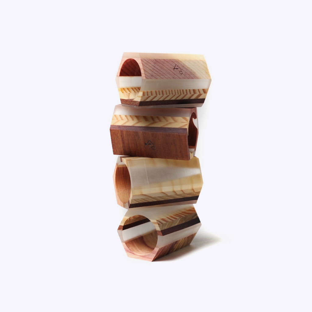 長野県松本市を拠点に、杣人が守ってきた命を伐り、デザイナーが構想したプロダクトを、数寄屋棟梁の技術、知識によって新しい命を創造し託す、インテリアプロダクトブランド【KI-no】 地産材をメイン素材として使い、通常のインテリア、プロダクトに使われる木材だけでなく、KI-noではデザイナー、職人が山を守る杣人と共に山に入り、普段は見向きもされない木、動物に食べられた木など、プロダクトには不向きと言われる木材も素材として選定。 新たな日本の美を持ったプロダクトに昇華させ、新たな木の価値の創造を目指しています。 こちらは、Goal Zero『LIGHTHOUSE micro』シリーズ用のカバー。下部はゴム製のリングで落下を防止。 様々な木材とレジンをストライプ状に組み合わせ、柔らかな灯りが拡がります。 単品での使用はもちろんのこと、KI-noのシェードと組み合わせることで、さらなるプロダクトに昇華します。 ※手作業での削り出しのため個体差があります 下部はゴム製のリングで落下を防止します。