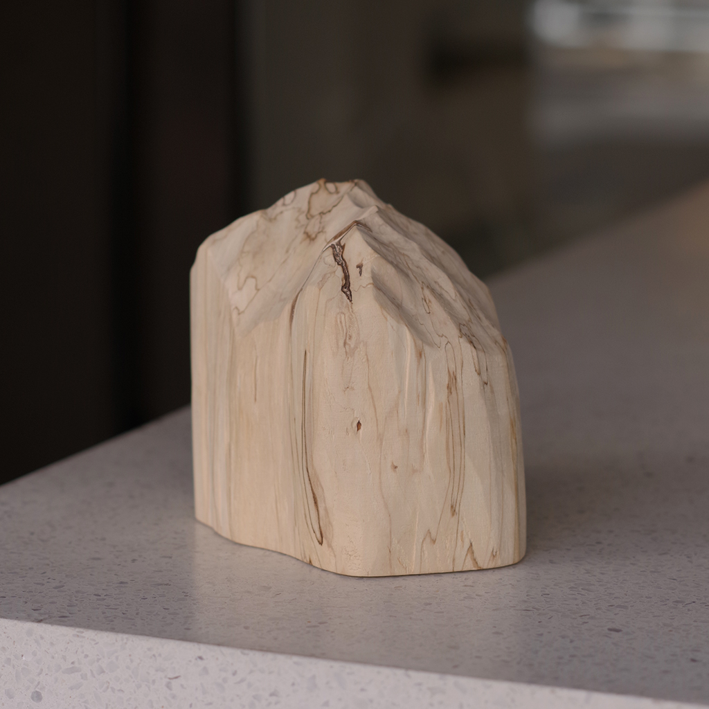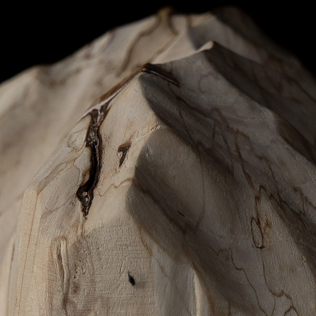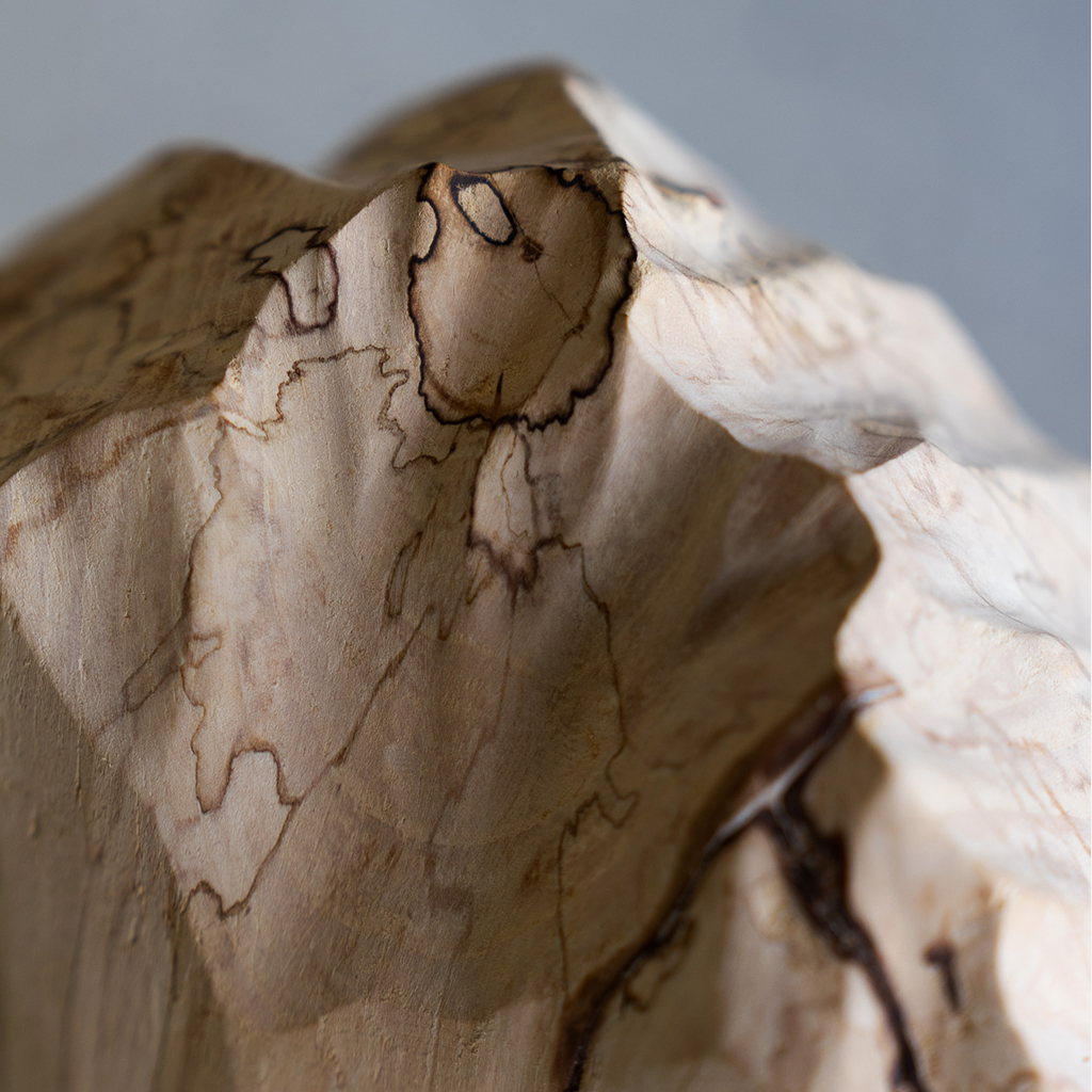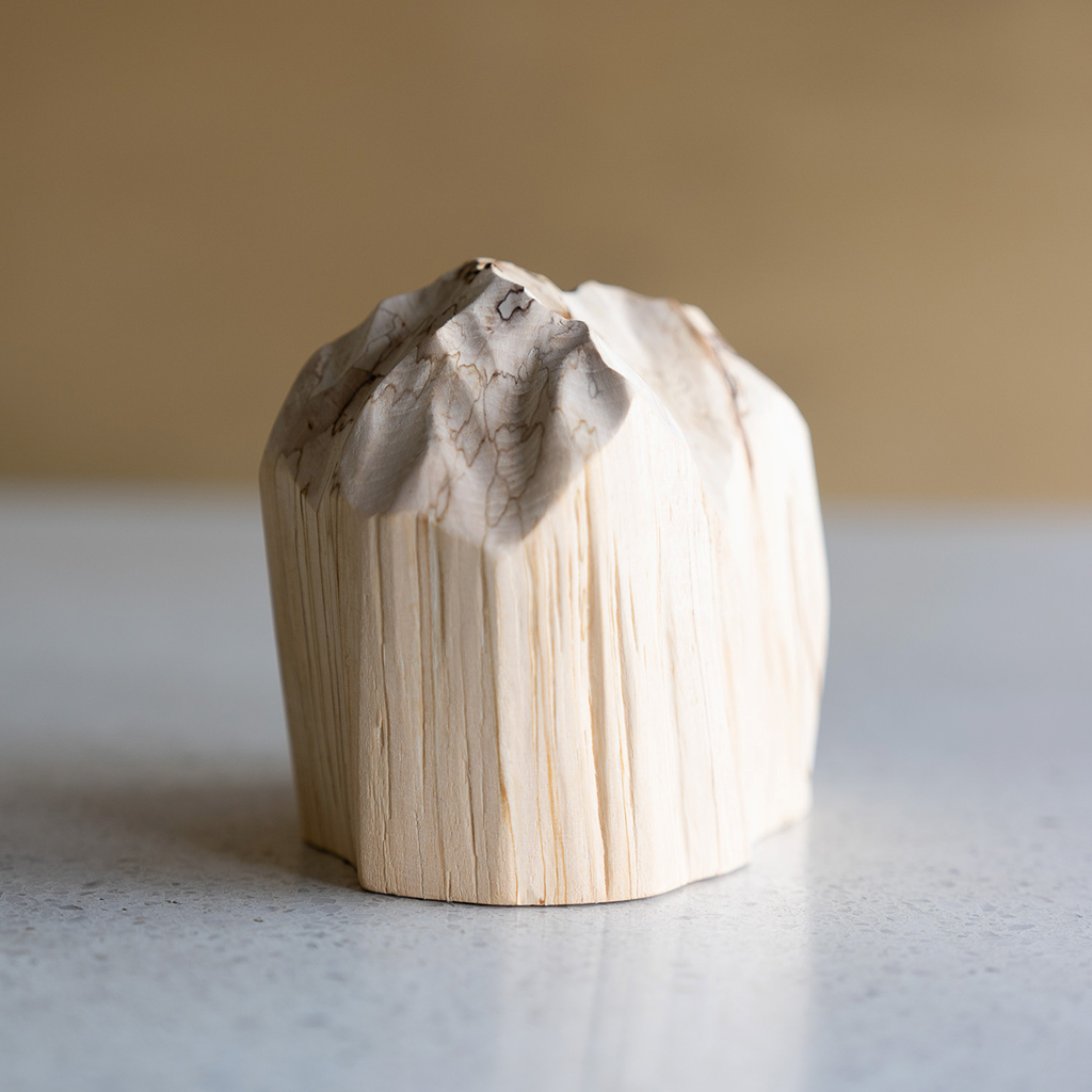 山梨県北杜市を拠点に創作活動をおこなう、木工作家である井出裕太氏(ikkaku mosaic)の作品。 私たちを魅了し様々なかたちでインスピレーションを与えてくれる雄大な自然。 井出裕太氏もまた、見てきた山麓からの景色や、稜線を歩くことで目にする大地のシワのような沢筋や尾根、氷河地形の痕跡など、作家自身の記憶や体験を通し、雄大な自然が移植されたかのような名もなき山の作品群を精力的に制作しています。 2022年10月にNicetime Mountain Galleryで開催された初となる個展【The unknown mountain】が大盛況に終わり、以降、驚くばかりのスピードで活躍の場を広げています。 その作品もどんどん深化を続けており、僕らも今後の活動を本当に楽しみにしています。 ※こちらは、珍しいスポルテッドの入った作品になります。 Spalted (スポルテッド)とは、木材の表面の傷から侵入した雨や菌が、材の中で網目や帯状の黒い模様となった部分を指します。独特の雰囲気を醸し出し、唯一無二の模様となるのが特徴。 ■井出 裕太 1982年 長野県南佐久出身。 山梨県北杜市在住。 2002年頃より登山、バックカントリースノーボードをはじめ、山を中心とした生活を送る。 2010年、北アルプスに魅了され、松本市内の登山用品店に勤務。 2017年、北杜市へ移住し、木工をはじめる。 自作したアトリエで創作活動をおこない、アウトドブランドとのコラボやワークショップを開催。 現在は、見てきた山、歩いた稜線、滑った地形から受けたイメージを表現するべく、山の造形作品を展開している。