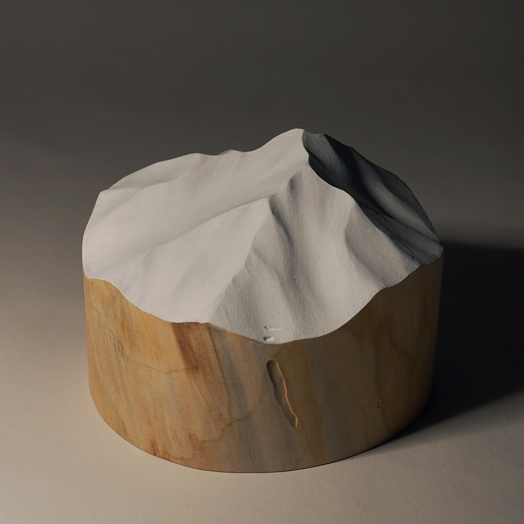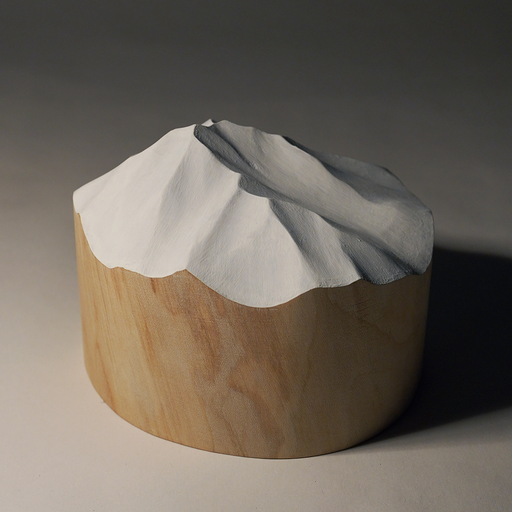 山梨県北杜市を拠点に創作活動をおこなう、木工作家である井出裕太氏(ikkaku mosaic)の作品。 私たちを魅了し様々なかたちでインスピレーションを与えてくれる雄大な自然。 井出裕太氏もまた、見てきた山麓からの景色や、稜線を歩くことで目にする大地のシワのような沢筋や尾根、氷河地形の痕跡など、作家自身の記憶や体験を通し、雄大な自然が移植されたかのような名もなき山の作品群を精力的に制作しています。 2025年1月にNicetime Mountain Galleryで開催された最新の個展【La Ni_a】も大盛況に終わり、僕らも今後の活動を本当に楽しみにしています。 ※こちらの作品は厳冬季限定モデル【snowy】バージョンになります。 ■井出 裕太 1982年 長野県南佐久出身。 山梨県北杜市在住。 2002年頃より登山、バックカントリースノーボードをはじめ、山を中心とした生活を送る。 2010年、北アルプスに魅了され、松本市内の登山用品店に勤務。 2017年、北杜市へ移住し、木工をはじめる。 自作したアトリエで創作活動をおこない、アウトドブランドとのコラボやワークショップを開催。 現在は、見てきた山、歩いた稜線、滑った地形から受けたイメージを表現するべく、山の造形作品を展開している。 光の当たり方によって、豊かな陰影が現れます。