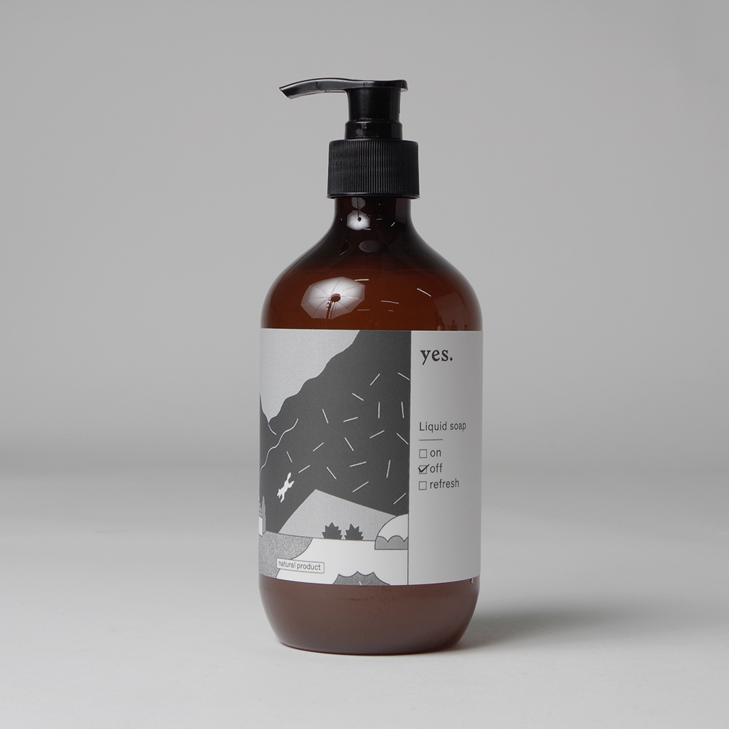 日々の暮らしに香りを添え、こころとからだを整える。やさしい香りは「こころ」を癒し、自然の素材は「からだ」を癒してくれる。 ナチュラル・オーガニック素材を丁寧に選び、子供や肌の敏感な方でも安心して使えるスキンケア・アロマ製品を研究開発する【fragrance yes】 代表の山野辺さんは、自身のアレルギー改善や、ご家族の病の経験を通して身につけた知識や技術、実体験を活かし、心身を癒すセラピストとして、また香りを用いた空間コーディネートもおこなっています。 純植物性原料(ヤシ油)がベースの石鹸に、天然由来エッセンシャルオイルの香りを添えたリキッドソープです。 <ご使用方法> 1回分(1-2プッシュが目安)を水またはぬるま湯で泡立てて洗い、その後よくすすいでください。 【off】 気持ちをリラックスさせ、心身を休息に導いてくれるようなブレンドです。 オレンジ ラベンダー シナモン ベルガモット ベンゾイン 【森へ行く日/呼吸】 ヒバやローズウッドの香りをベースに、目を閉じると森の中で深呼吸しているようなブレンドです。 ゼラニウム ローズウッド ラベンダー ベルガモット ヒバ 【森へ行く日/呼吸】 左:500ml 右:300ml