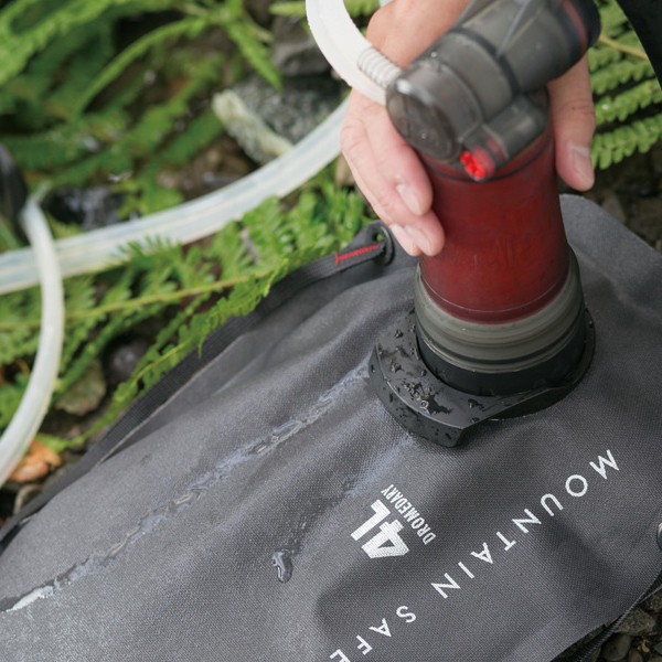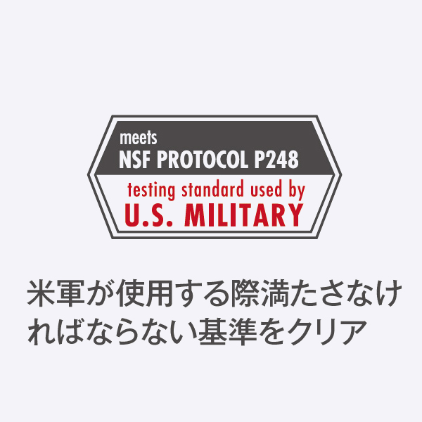 MSRが米軍と共同で開発した最も安全とも言われる浄水器です。 0.02ミクロンという超微細な中空糸膜のフィルターによって、原生生物やバクテリアはもちろん、ウィルスまで除去できます。 1分間に約2.5Lの浄水能力があり、ろ過した水の10%を逆戻りさせて、ポンピングするたびに自動でフィルター内の汚れを洗い流すセルフクリーニングシステム(特許出願中)を備えています。 スタッフサック付き 逆流させた水は、取水用とは別のホースから排水するためフィルターは常にきれいに保たれ、流量の低下や水質を気にせずに使用できます。 約10,000Lという格段に長いフィルター寿命を実現しました。