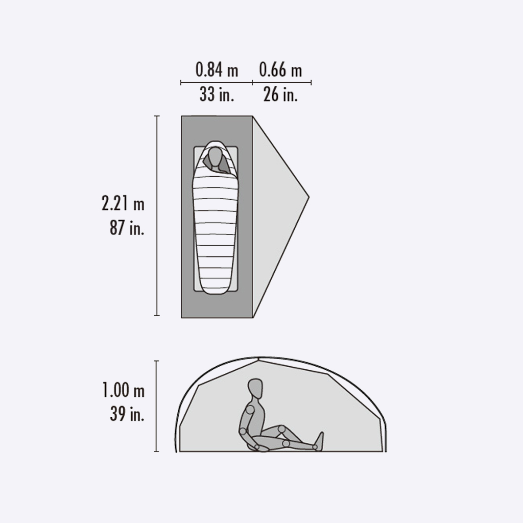 MSR『フリーライト 1』 は、半自立式ダブルウォールとしては最軽量クラスのテント。 強靭なDACアルミニウムポールと、デュラシールド防水コーティングにより、3シーズンにわたり信頼性の高いプロテクションを提供します。 インナーテントのマイクロメッシュが通気性を高め、結露を軽減します。 軽量性と快適性を両立させたい方にオススメのテントです。 インナーテント単体でも使用可能。 各部のサイズ。 ポケット下部が空いており、充電ケーブルなどを通すことができます。 天井にもポケット。 入口にはループが設けてあり、ライトなどを吊り下げできます。 アシンメトリーな設計にすることで、プロテクションを確保しつつ、大幅な軽量化を実現しています。