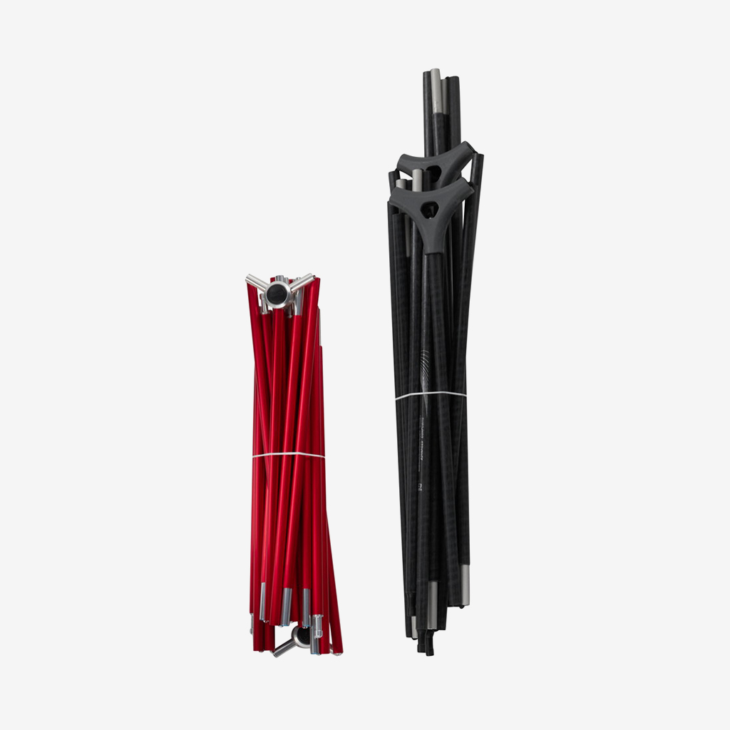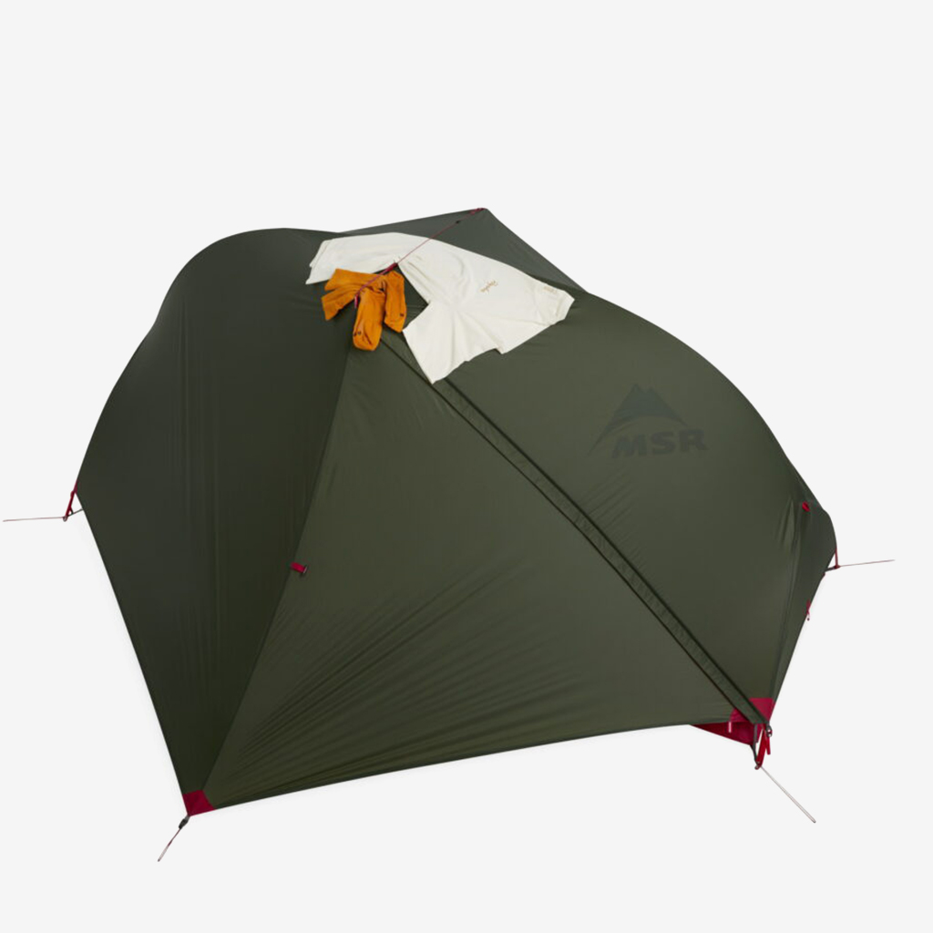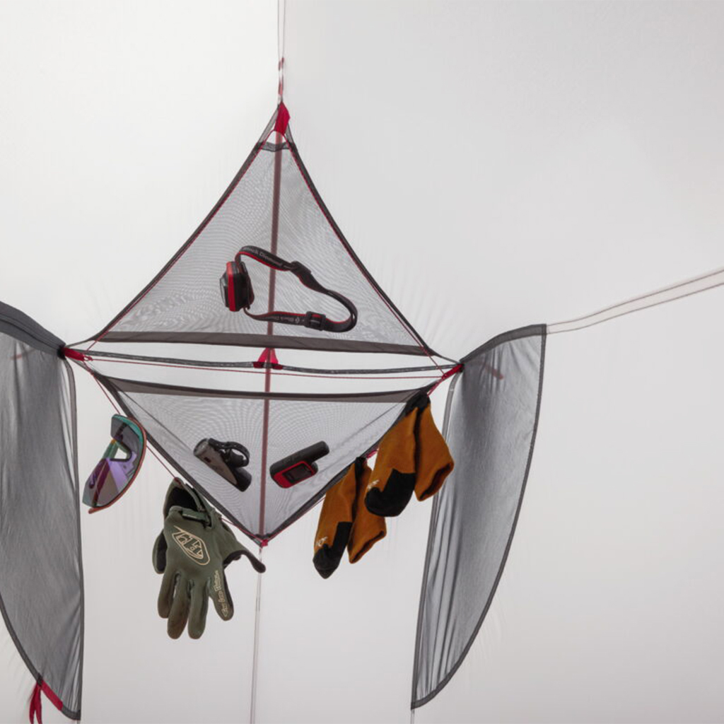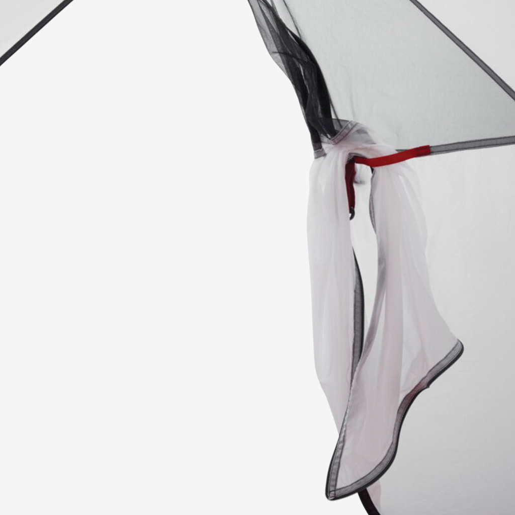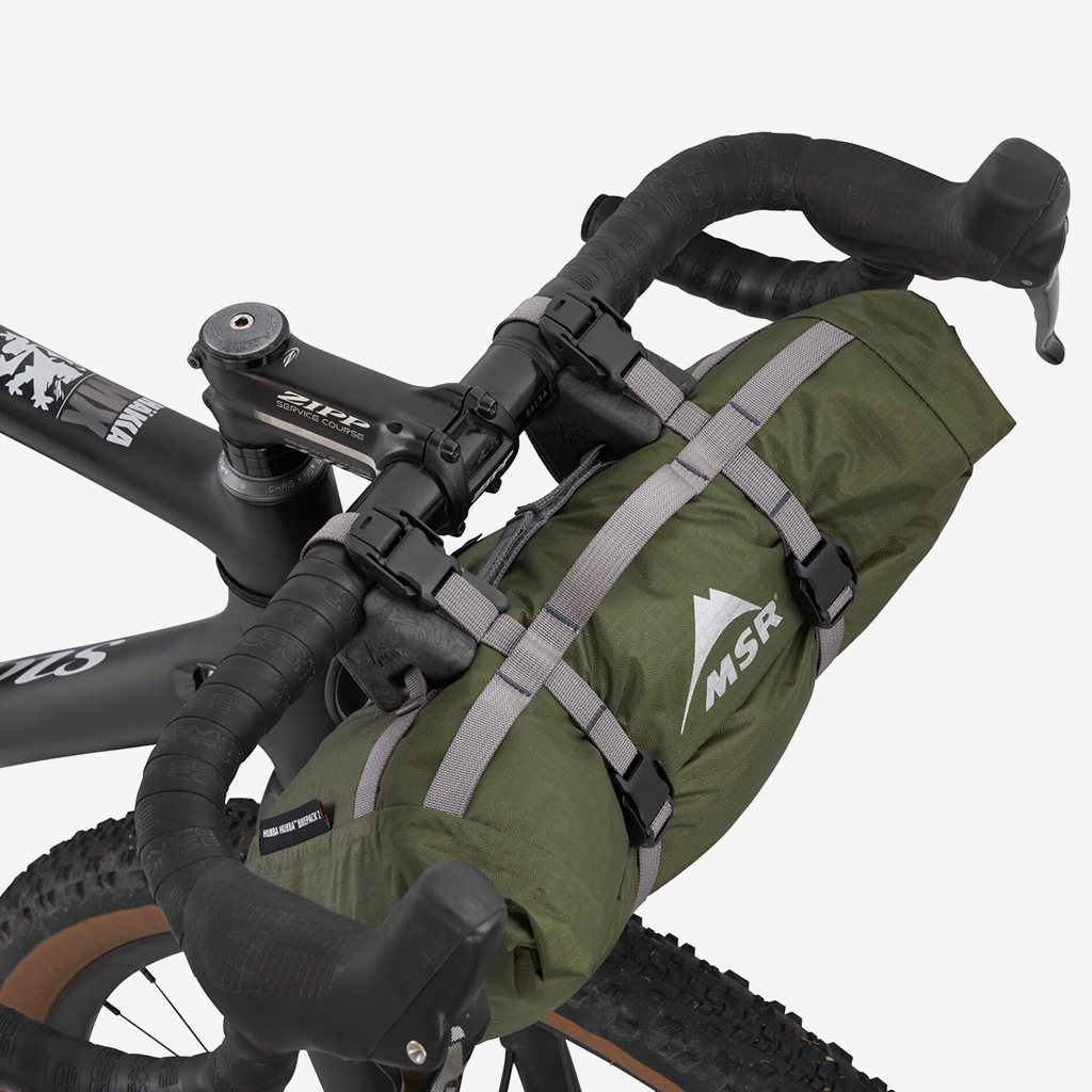 バイクパッキングを始めたい方にオススメなテント。 ハバハバシールドで定評のある機能はそのままに、さらに自転車専用の要素を加えてアップデート。 優れた居住性はそのままに、軽量にパッキングでき、機能的で安定したハンドルバッグも備えています。綿密に設計されたハンドルバー収納バッグは、フラットバー、ドロップバーを問わずほぼ全ての自転車にフィットします。 付属の取り外し可能なスペーサーは、バッグとハンドルバーを離してブレーキやシフトケーブルを通せるようになっており、 さらに付属のバンジーコードをヘッドチューブにまわして固定することで、悪路でもバッグを安定します。 ハンドルバーバッグは、シームテープで防水アップ。 ロゴデザインは、視認性を高めるリフレクターになっており、追加のギアを結び付ける為のユーティリティループも付属しいます。 1人用はわずか約930g。ハバハバシールドと同様、テント本体はメッシュと通常生地をバランスよく使用し、通気性、プライバシー、プロテクションを バランス良く確保しています。 多くのMSRテントの特徴である長方形のフロアは、テント内部の広さを確保し、丈夫で軽量なDACポールは、いつもより節の多いポールを使用し、収納性を向上させています。 短く折りたたみ可能で、ハンドルバーや狭いスペースの簡単に収納可能。 左右対象のポールデザインと、ロック機能付き。アルマイト加工グロメットにより、セットアップは初心者でも非常に簡単です。 曲線のないドアデザインは、重量を軽減し、耐久性を向上させ、ジッパーの場所を常に把握できる為、夜遅くでも簡単に出入りでき、 ステルスグリーンのレインフライは、出入りが容易なドアと雨水が侵入しにくい雨どいが特徴です。 前室はハバハバシールドよりも広くなっており、自転車ギアを収納するのに十分なスペースとなっています。 フライは防水のデュラシールドコーティングと、シームテープ処理がされており、雨の中でも快適に待つことができるような耐候性を備えています。 オーバーヘッドストレージ用の大型ギアロフトポケットと、ウェア類を一晩中乾かすための物干しロープが備わっています。また、オプションの外付け物干しローブは、天気の良い日にフライシートの上部に取り付け、物干しスペースを増やすことも可能。 あらゆるサイリングアドベンチャーに最適なテントです。 ヘッドランプやスマートフォンなど、大切な道具を収納しておくためのスリーブポケットが装備 オーバーヘッドストレージ用の大型ギアロフトポケット 外付け物干しローブはで、フライシート上部で乾燥可能 節部分を増やし収納性を向上 付属の取り外し可能なスペーサーしてケーブル類を通せます スペーサー フラットバー、ドロップバーを問わず使用可能