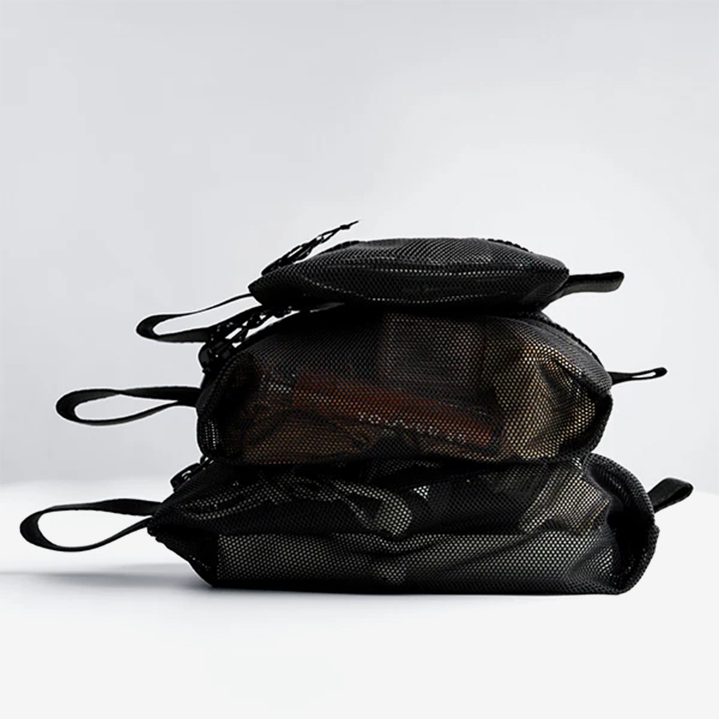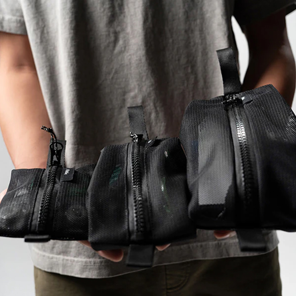マタドールのメッシュオーガナイザーバッグセットは、S、M、Lの3サイズが含まれたオーガナイザーバッグで、充電ケーブルや小型電子機器などの散らかりがちなアイテムを整理し、パッキングに秩序とスピードをもたらします。 中身が一目で確認できる視認性の良いNeoWeave?メッシュ素材は、非常に高い引き裂き強度と優れた摩擦耐性を持ち、頑丈なジッパーと合わせて長期的な耐久性を実現しています。 また、持ち運びやクリップ留めに便利な両端のハングループを備え、パッキングキューブやギアキューブとの併用も可能です。 (お手入れは冷水と中性洗剤で手洗いし、吊るして乾かすことをお勧めします。洗濯機で洗うと、製品の寿命が短くなる可能性があります。)。 NeoWeave?メッシュは、非常に引き裂き強度が高く、優れた摩擦耐性と安定した形状を保つ素材です。 中身が見えるように目が粗く織られていますが、小さなものが穴から滑り落ちないようにもなっています。 Sサイズ Mサイズ Lサイズ