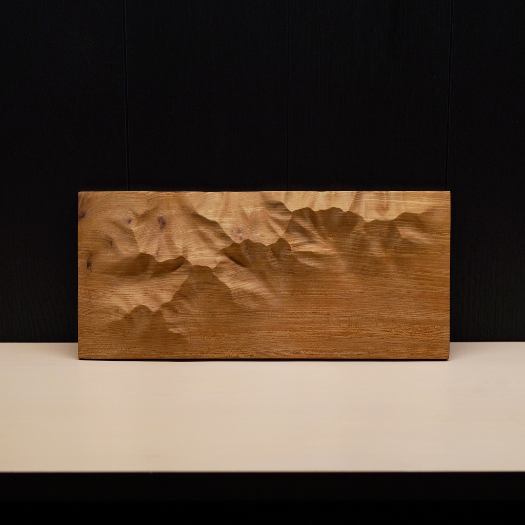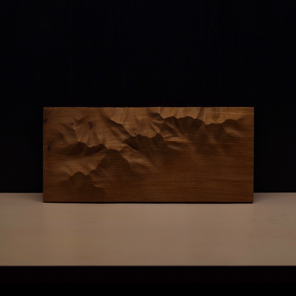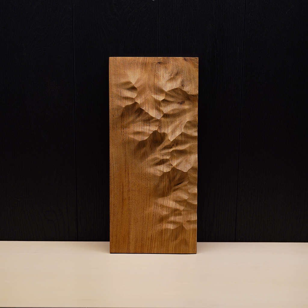 山梨県北杜市を拠点に創作活動をおこなう、井出裕太氏(ikkaku mosaic.)の作品。 私たちを魅了し様々なかたちでインスピレーションを与えてくれる雄大な自然。 井出裕太氏もまた、見てきた山麓からの景色や、稜線を歩くことで目にする大地のシワのような沢筋や尾根、氷河地形の痕跡など、作家自身の記憶や体験を通し、雄大な自然が移植されたかのような名もなき山の作品群を精力的に制作しています。 2025年の最新作は、井出さんが長く温めていたイメージがカタチとなった『THE WALL』シリーズ。 絵や写真のように掛ける立体のオブジェは、壁からぬっと浮き出たような山々から、絶妙な陰影が浮かび上がり、光の当たり具合によって変化する深みのある世界観に仕上がっています。 壁に掛ける。立てかける。縦でも横でも、眺める角度や距離によっても表情が異なりますので、ご自分のお好きなように楽しんでいただけたら。 ■井出 裕太 1982年 長野県南佐久出身。 山梨県北杜市在住。 2002年頃より登山、バックカントリースノーボードをはじめ、山を中心とした生活を送る。 2010年、北アルプスに魅了され、松本市内の登山用品店に勤務。 2017年、北杜市へ移住し、木工をはじめる。 自作したアトリエで創作活動をおこない、アウトドブランドとのコラボやワークショップを開催。 現在は、見てきた山、歩いた稜線、滑った地形から受けたイメージを表現するべく、山の造形作品を展開している。 光の当たり方によって、表情が変化する深みのある世界観がなんとも魅力的です。 縦にするとまた違った表情を見せてくれます。