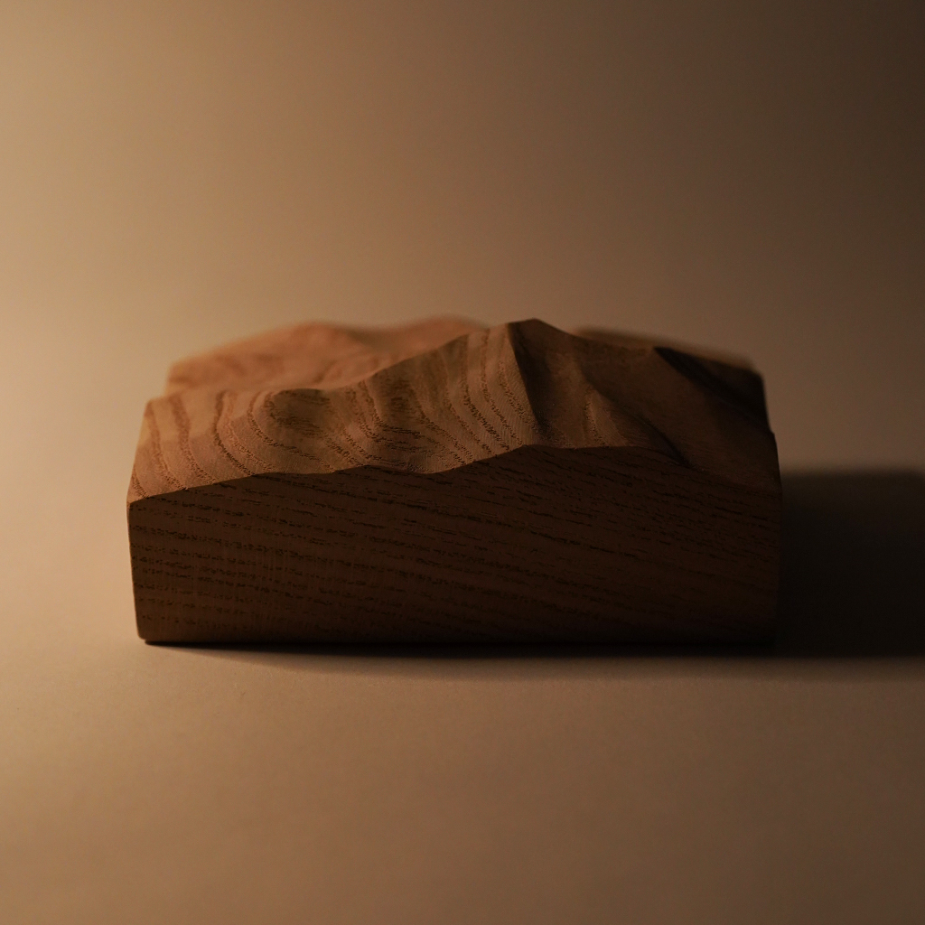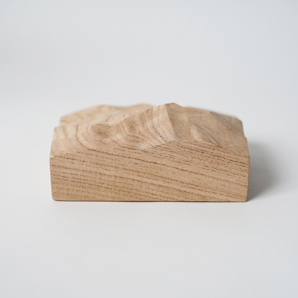 山梨県北杜市を拠点に創作活動をおこなう、井出裕太氏(ikkaku mosaic.)の作品。 私たちを魅了し様々なかたちでインスピレーションを与えてくれる雄大な自然。 井出裕太氏もまた、見てきた山麓からの景色や、稜線を歩くことで目にする大地のシワのような沢筋や尾根、氷河地形の痕跡など、作家自身の記憶や体験を通し、雄大な自然が移植されたかのような名もなき山の作品群を精力的に制作しています。 2025年初夏の最新作は、鳥が俯瞰しているような視点で山々の全体像を表現した『over view』シリーズ。 近くから、少し離れて、眺める距離や角度によっても立ち上がるイメージが変わってくる、広がりのある作品に仕上がっています。 ■井出 裕太 1982年 長野県南佐久出身。 山梨県北杜市在住。 2002年頃より登山、バックカントリースノーボードをはじめ、山を中心とした生活を送る。 2010年、北アルプスに魅了され、松本市内の登山用品店に勤務。 2017年、北杜市へ移住し、木工をはじめる。 自作したアトリエで創作活動をおこない、アウトドブランドとのコラボやワークショップを開催。 現在は、見てきた山、歩いた稜線、滑った地形から受けたイメージを表現するべく、山の造形作品を展開している。 光の当たり方や眺める角度によっても立ち上がるイメージが変わってくる、広がりのある作品です。