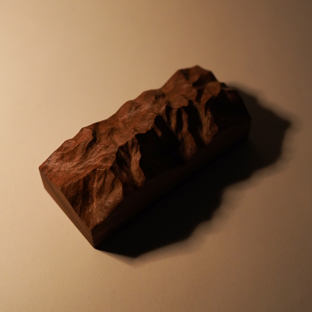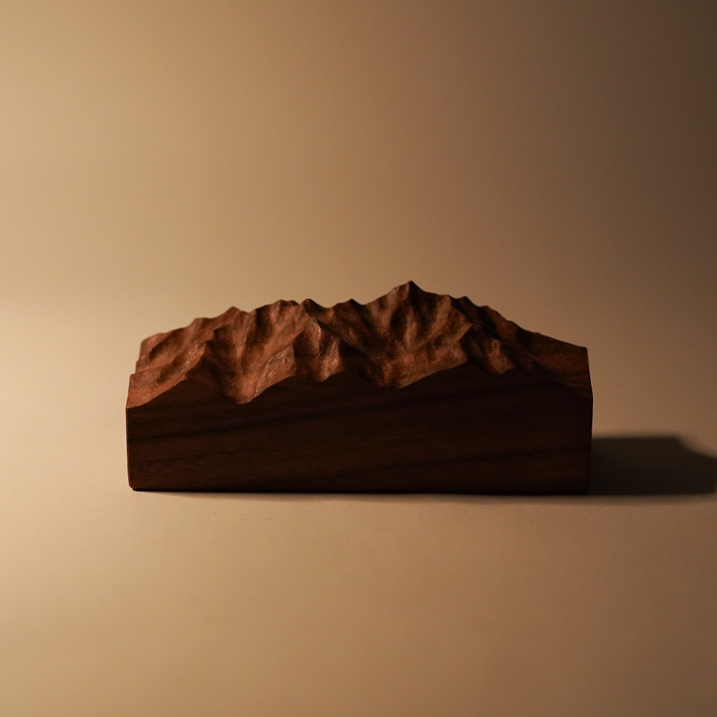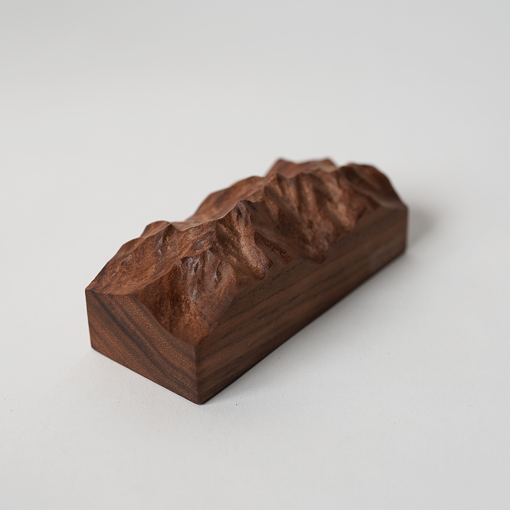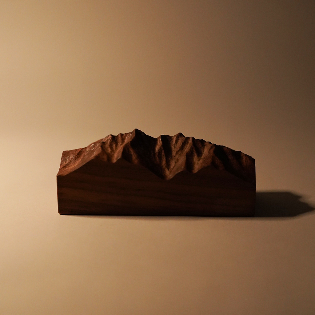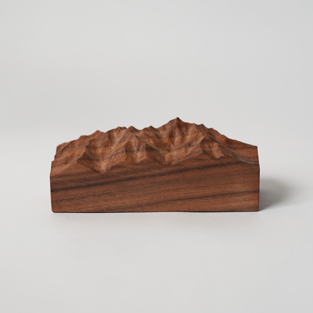 山梨県北杜市を拠点に創作活動をおこなう、井出裕太氏(ikkaku mosaic.)の作品。 私たちを魅了し様々なかたちでインスピレーションを与えてくれる雄大な自然。 井出裕太氏もまた、見てきた山麓からの景色や、稜線を歩くことで目にする大地のシワのような沢筋や尾根、氷河地形の痕跡など、作家自身の記憶や体験を通し、雄大な自然が移植されたかのような名もなき山の作品群を精力的に制作しています。 2025年初夏の最新作は、鳥が俯瞰しているような視点で山々の全体像を表現した『over view』シリーズ。 近くから、少し離れて、眺める距離や角度によっても立ち上がるイメージが変わってくる、広がりのある作品に仕上がっています。 ■井出 裕太 1982年 長野県南佐久出身。 山梨県北杜市在住。 2002年頃より登山、バックカントリースノーボードをはじめ、山を中心とした生活を送る。 2010年、北アルプスに魅了され、松本市内の登山用品店に勤務。 2017年、北杜市へ移住し、木工をはじめる。 自作したアトリエで創作活動をおこない、アウトドブランドとのコラボやワークショップを開催。 現在は、見てきた山、歩いた稜線、滑った地形から受けたイメージを表現するべく、山の造形作品を展開している。 光の当たり方や眺める角度によっても立ち上がるイメージが変わってくる、広がりのある作品です。