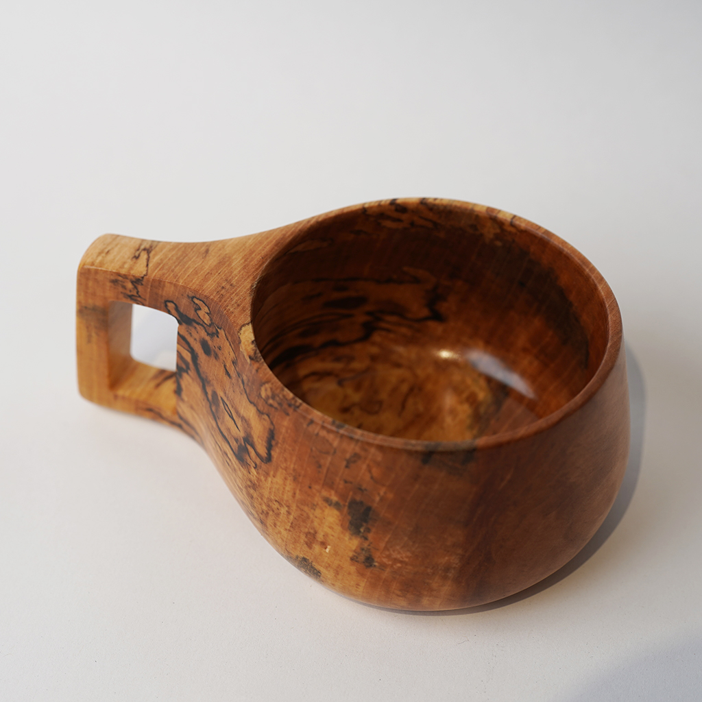【atelier dehors】(アトリエ・ドゥオル)による栃の木から削り出したカップ。 ガラス塗料で仕上げてあります。耐水性の高いコーティングですので、オイル仕上げの器のようなお手入れは必要ありません。 カップ部はあえて彫りは入れず、質感の個性を最大限に楽しめるように。シンプルなデザインの持ち手。 温かい飲み物、冷たい飲み物、アイスクリーム、ヨーグルトなど、様々な用途にお使いいただけます。 ※ハンドメイドによる1点ものになります。 【atelier dehors/アトリエ・ドゥオル】 長谷川 誠 千葉県で制作活動を行う木工作家。「dehors」は「外」を意味しており、活動拠点である外房の”外”という意味を込められています。 小さな端材でも、その材自体の木目や個性を生かす方法を考え、無駄の無い丁寧な作品作りが特徴。
