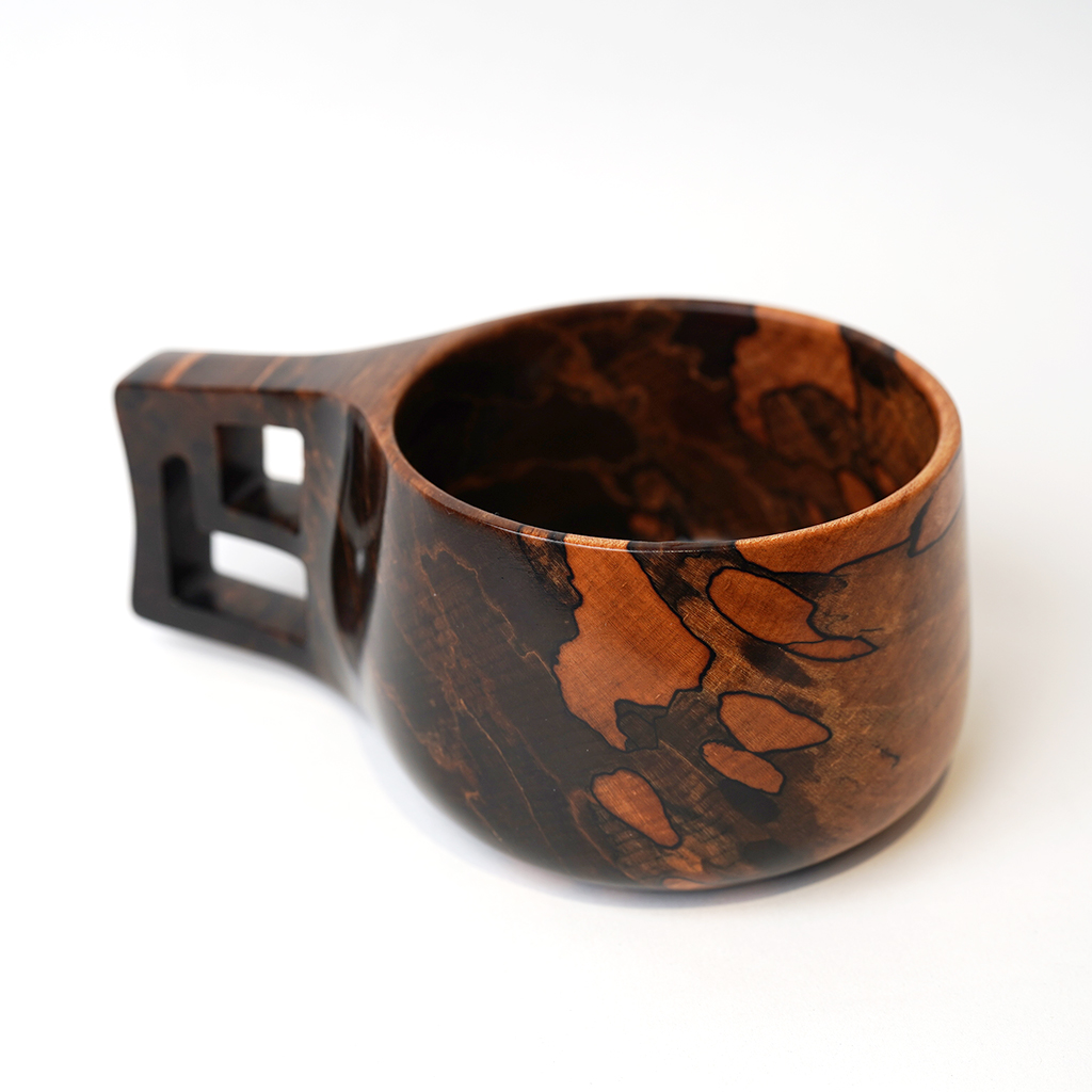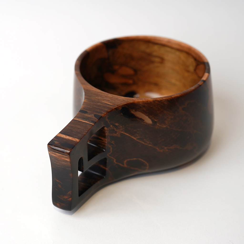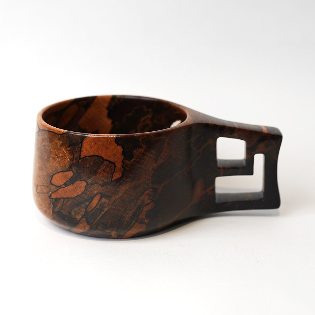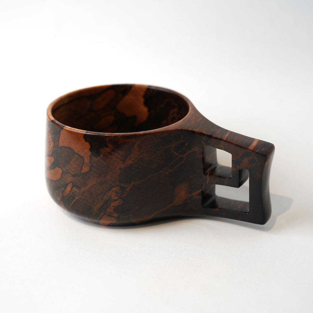 【atelier dehors】(アトリエ・ドゥオル)による楓のスポルテッド材とレジンを組み合わせたスペシャルな作品。 自然が生み出す唯一無二の模様が魅力のスポルテッド材を、レジンを使うことによって実用性のあるカップに仕上げています。 使用しているレジンは、日本の食品衛生法や米国のFDAの基準をクリアした安全なもので、安心してお使いいただけます。 ガラス塗料で仕上げてあります。耐水性の高いコーティングですので、オイル仕上げの器のようなお手入れは必要ありません。 カップ部はあえて彫りは入れず、質感の個性を最大限に楽しめるように。 温かい飲み物、冷たい飲み物、アイスクリーム、ヨーグルトなど、様々な用途にお使いいただけます。 ※ハンドメイドによる1点ものになります。 【atelier dehors/アトリエ・ドゥオル】 長谷川 誠 千葉県で制作活動を行う木工作家。「dehors」は「外」を意味しており、活動拠点である外房の”外”という意味を込められています。 小さな端材でも、その材自体の木目や個性を生かす方法を考え、無駄の無い丁寧な作品作りが特徴。