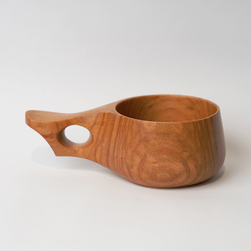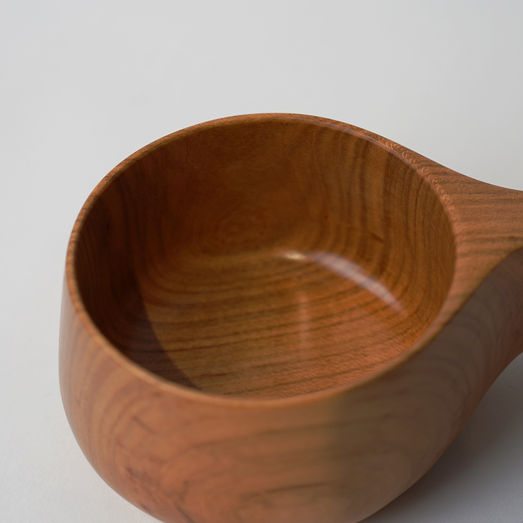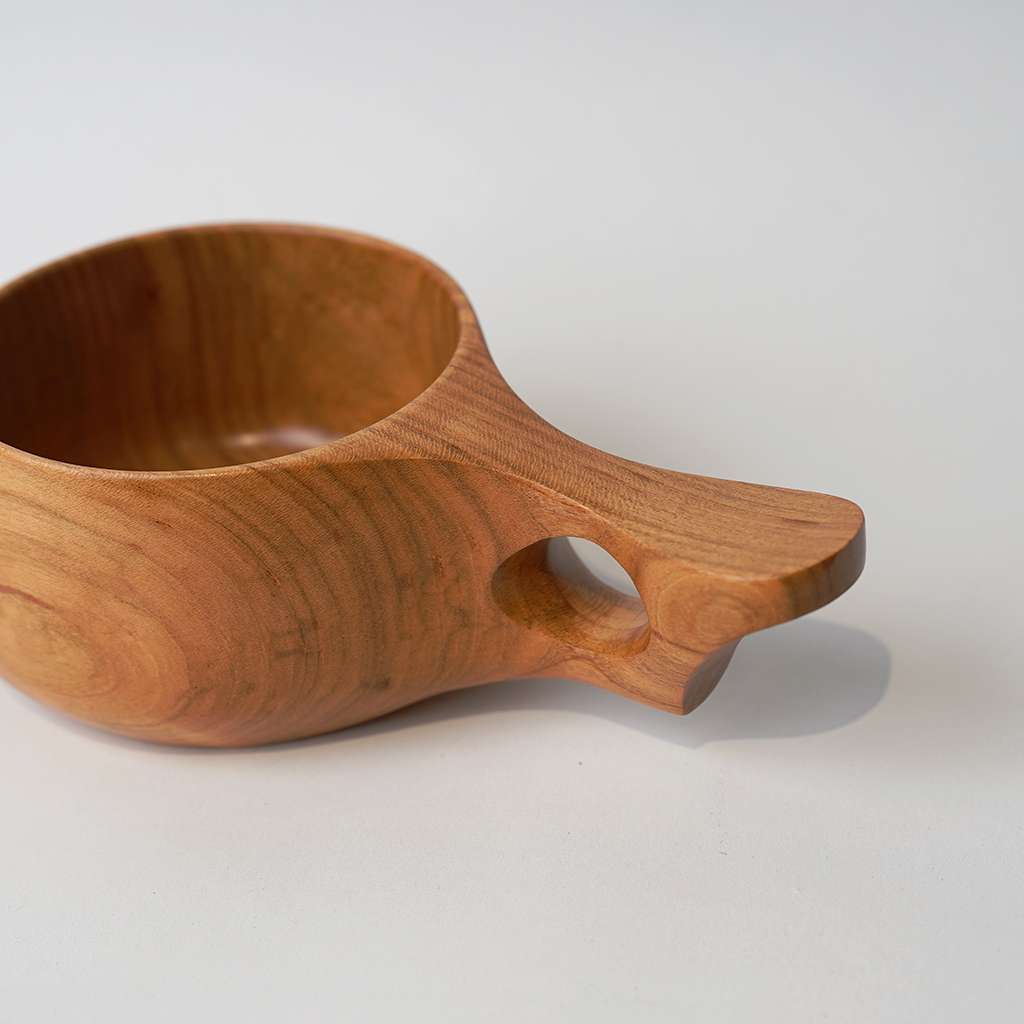 【atelier dehors】(アトリエ・ドゥオル)による山桜の木から削り出したカップ。 ガラス塗料で仕上げてあります。耐水性の高いコーティングですので、オイル仕上げの器のようなお手入れは必要ありません。 カップ部はあえて彫りは入れず、質感の個性を最大限に楽しめるように。シンプルながら握りやすく存在感のある持ち手。 温かい飲み物、冷たい飲み物、アイスクリーム、ヨーグルトなど、様々な用途にお使いいただけます。 ※ハンドメイドによる1点ものになります。 【atelier dehors/アトリエ・ドゥオル】 長谷川 誠 千葉県で制作活動を行う木工作家。「dehors」は「外」を意味しており、活動拠点である外房の”外”という意味を込められています。 小さな端材でも、その材自体の木目や個性を生かす方法を考え、無駄の無い丁寧な作品作りが特徴。