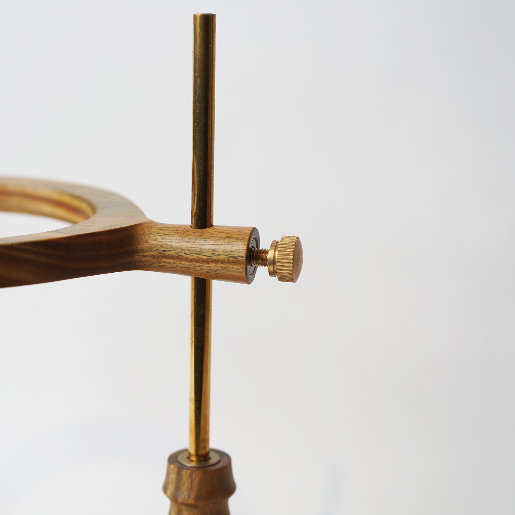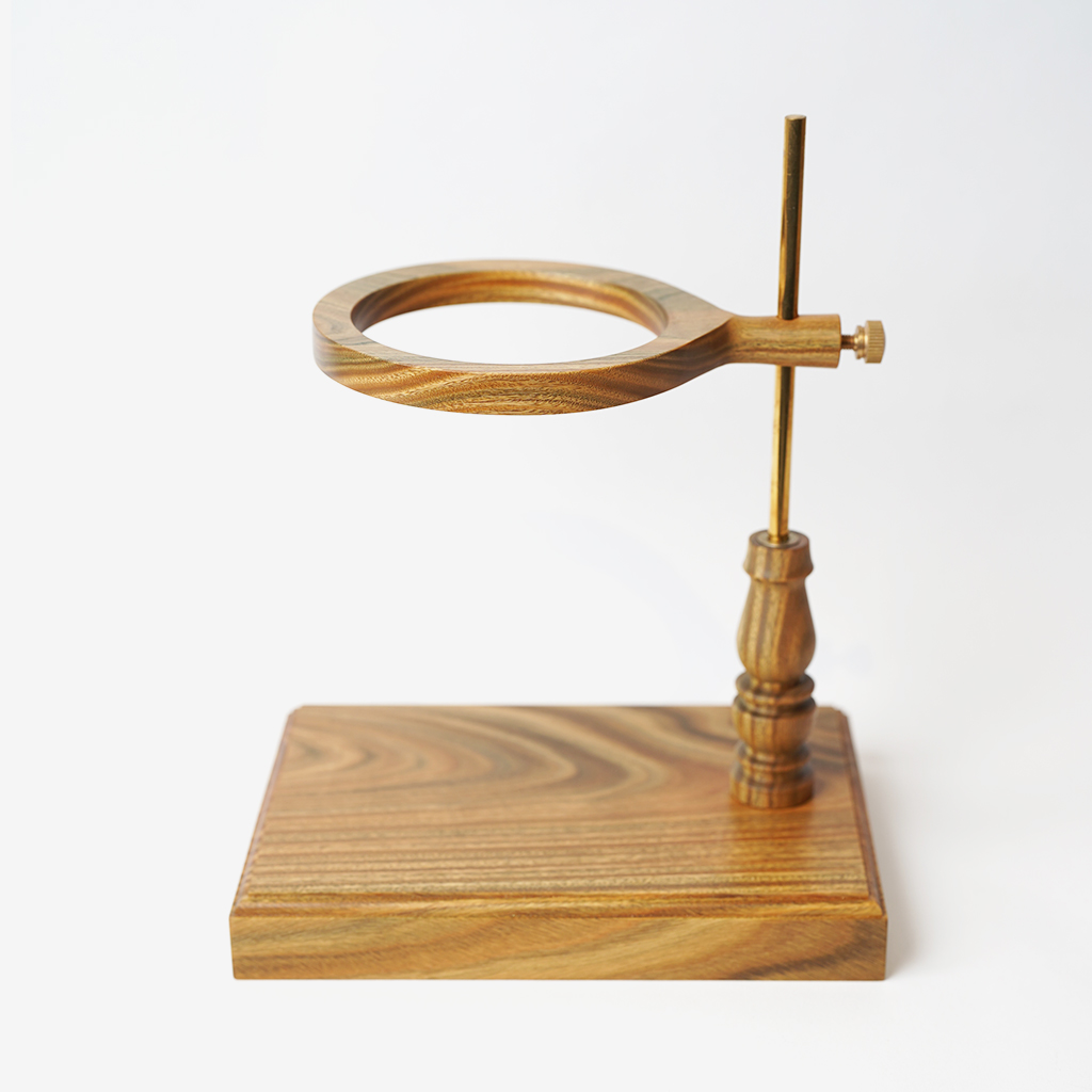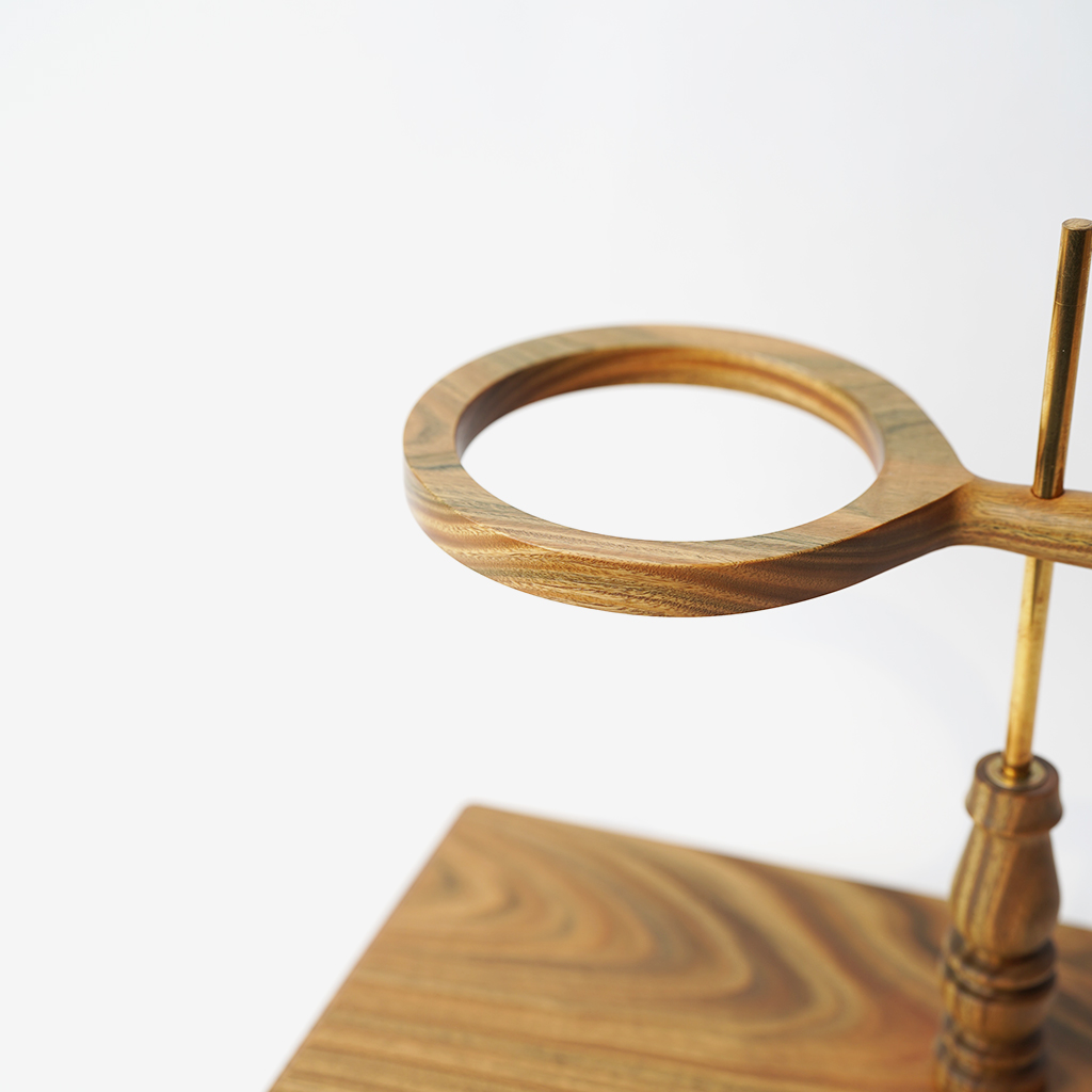 【atelier dehors】(アトリエ・ドゥオル)による希少なパロサント材から作られたコーヒードリッパースタンド。 パロサントは「聖なる樹」と呼ばれ、古くから幸福を呼び込む香木として大切にされてきました。 柔らかで心地よい、清められるような神秘的な香りが優しく漂います。 リング部分はスムーズに高さ調整可能で、組み立て式なので分解してコンパクトに外へ持ち出すこともできます。 家でも外でも、特別な1杯を楽しめるコーヒードリッパースタンドです。 ※ハンドメイドによる1点ものになります。 【atelier dehors/アトリエ・ドゥオル】 長谷川 誠 千葉県で制作活動を行う木工作家。「dehors」は「外」を意味しており、活動拠点である外房の”外”という意味を込められています。 小さな端材でも、その材自体の木目や個性を生かす方法を考え、無駄の無い丁寧な作品作りが特徴。 カップ:#05 楓 弁柄染色