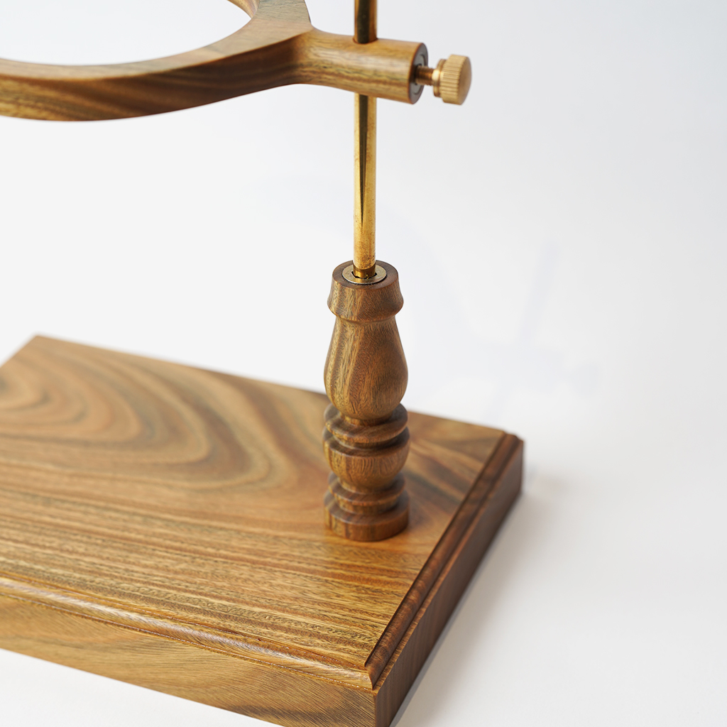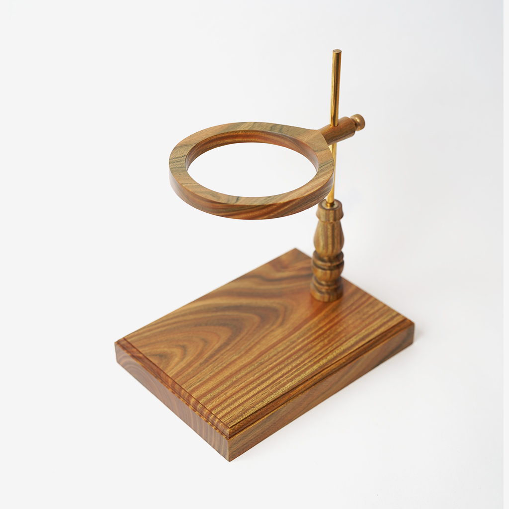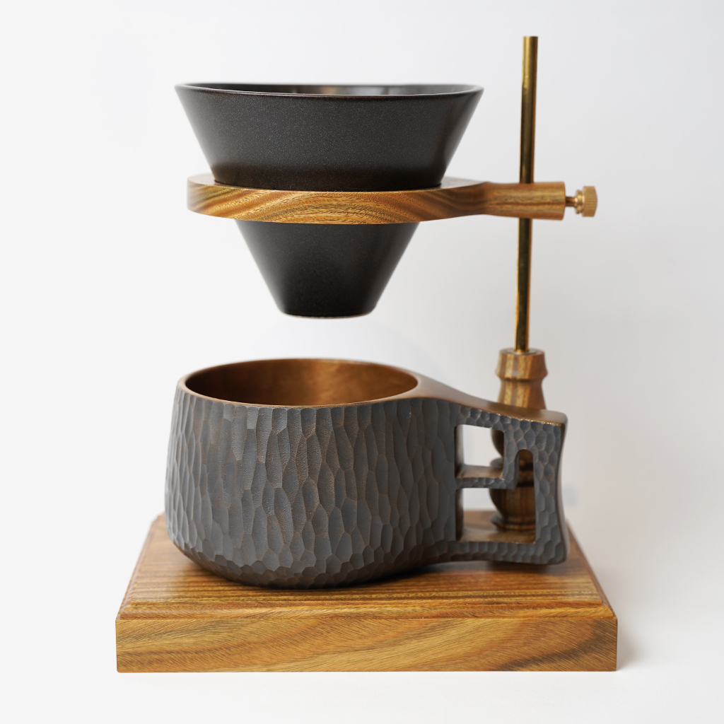【atelier dehors】(アトリエ・ドゥオル)による希少なパロサント材から作られたコーヒードリッパースタンド。 パロサントは「聖なる樹」と呼ばれ、古くから幸福を呼び込む香木として大切にされてきました。 柔らかで心地よい、清められるような神秘的な香りが優しく漂います。 リング部分はスムーズに高さ調整可能で、組み立て式なので分解してコンパクトに外へ持ち出すこともできます。 家でも外でも、特別な1杯を楽しめるコーヒードリッパースタンドです。 ※ハンドメイドによる1点ものになります。 【atelier dehors/アトリエ・ドゥオル】 長谷川 誠 千葉県で制作活動を行う木工作家。「dehors」は「外」を意味しており、活動拠点である外房の”外”という意味を込められています。 小さな端材でも、その材自体の木目や個性を生かす方法を考え、無駄の無い丁寧な作品作りが特徴。 カップ:#05 楓 弁柄染色