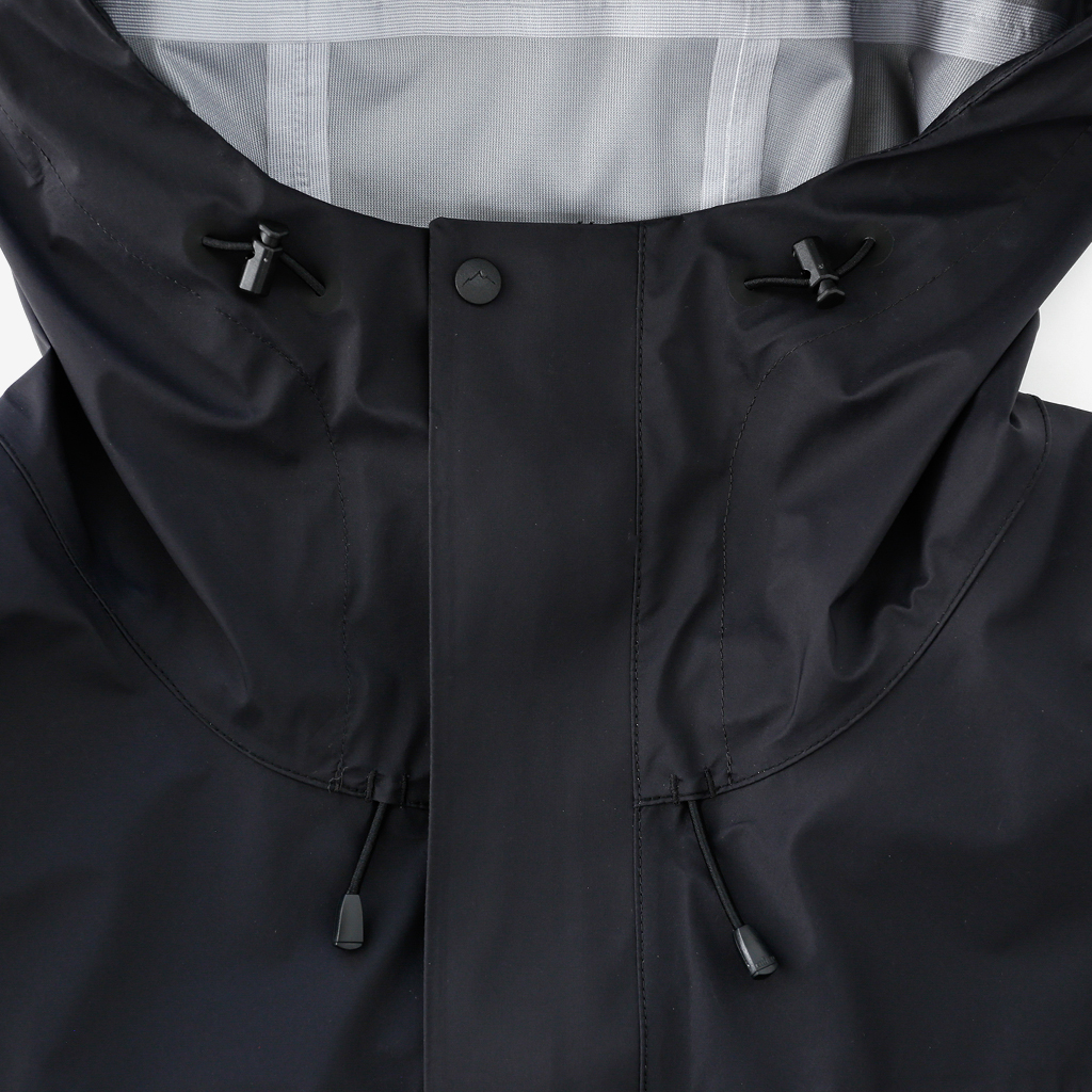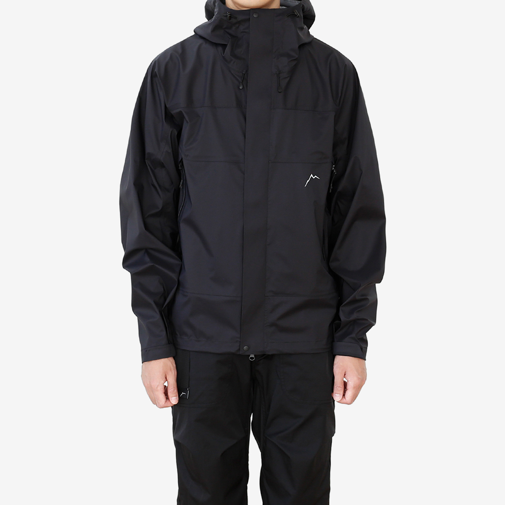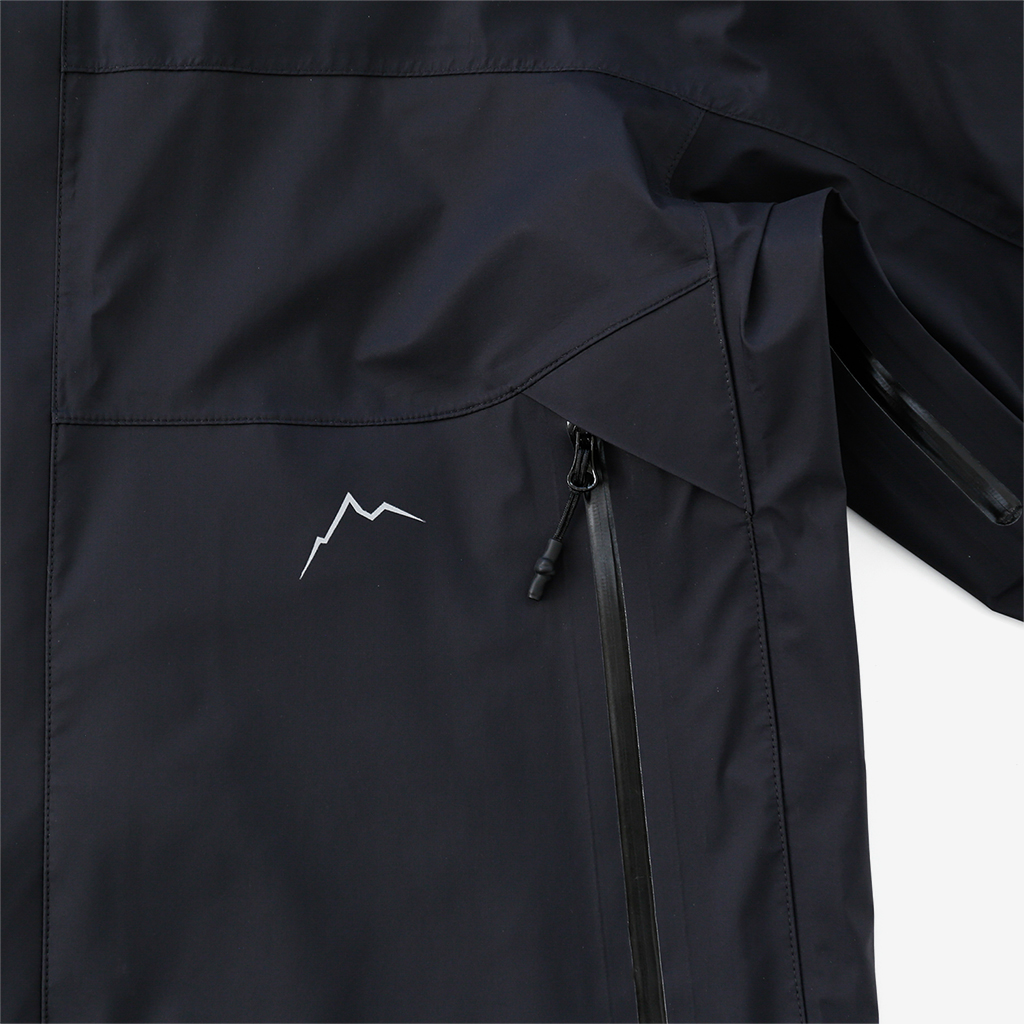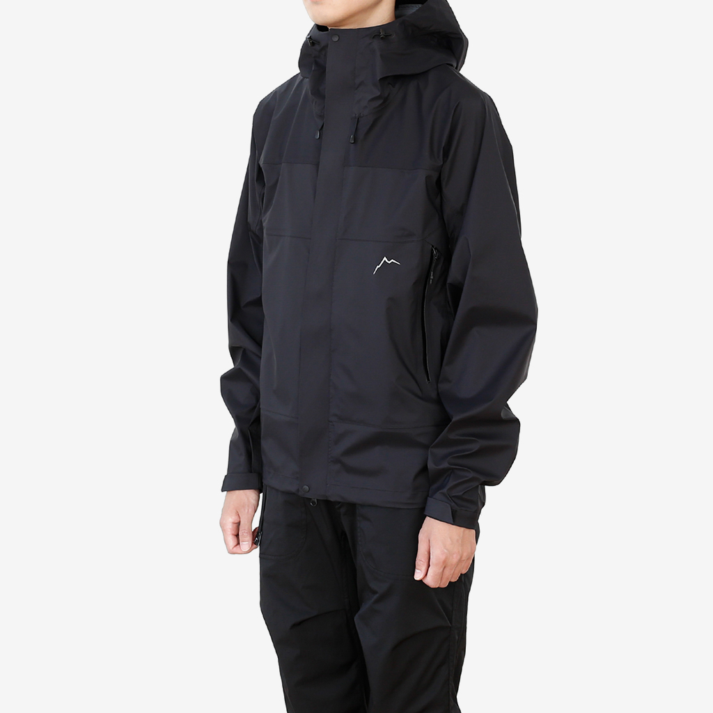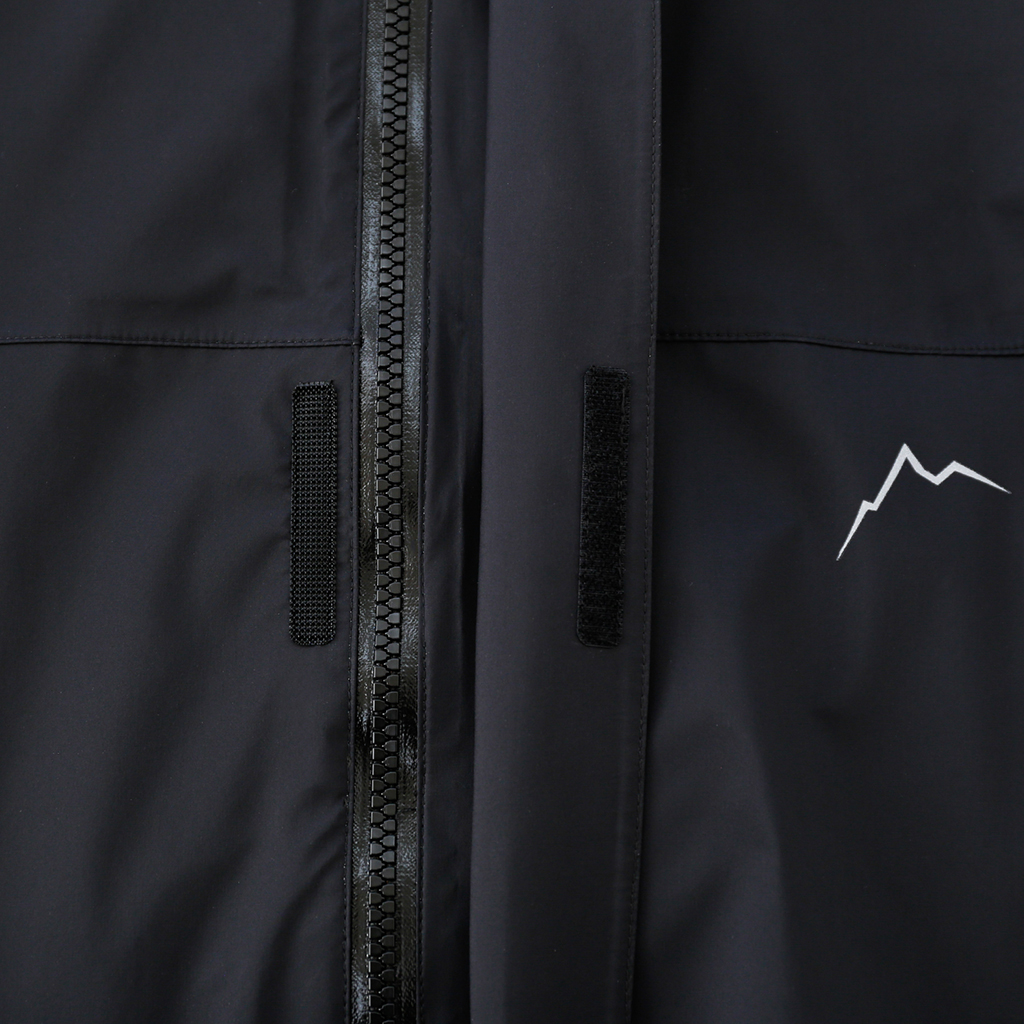 CAYL『3L Mountain Jacket』は、20Dのナイロン3レイヤー生地で作られたレインジャケット。 CAYLのレインジャケットシリーズの中では比較的厚手で、防風性、保温性の高いモデル。 両脇の下にはダブルジッパー式のベンチレーション、さらにフロントセンターもダブルジッパーなので、素早く換気できます。 フード部とウエスト部はストリングで絞れるようになっていて、手首はベルクロで調整できます。 アクティビティに適した十分なスペック、使い勝手を追求しながらも、タウンユースに馴染むデザイン性に優れた、CAYLらしいレインジャケットです。 Black、Grey、Creamの3カラー展開。 内側の左胸部にあるジッパーポケット。 モデル:184cm/Lサイズ