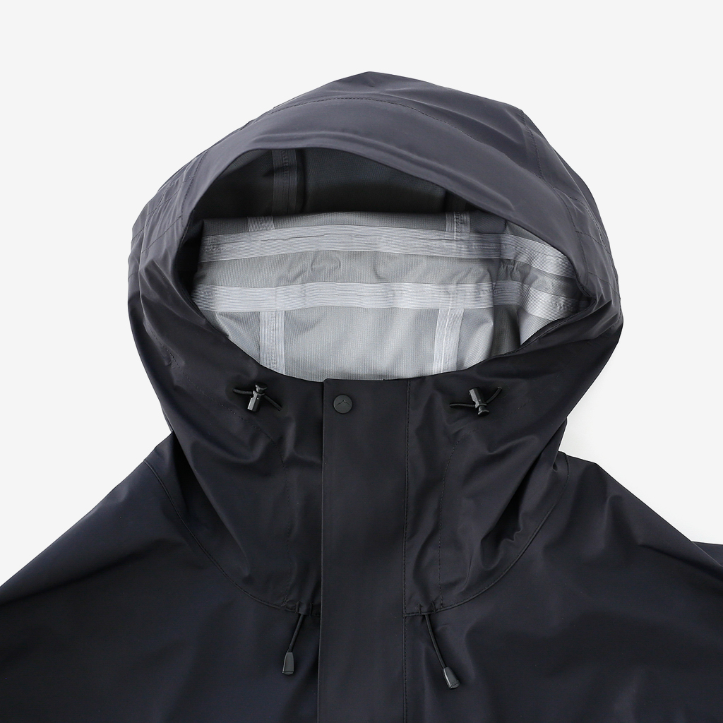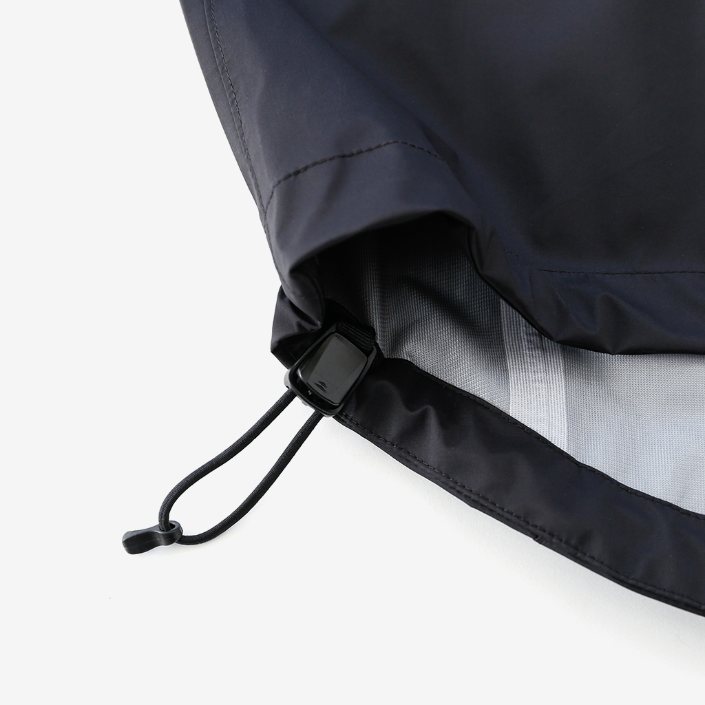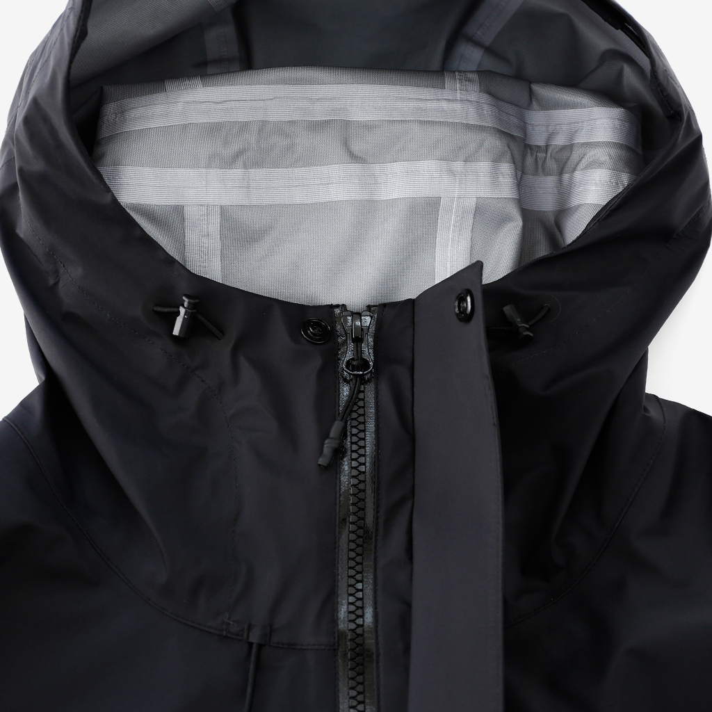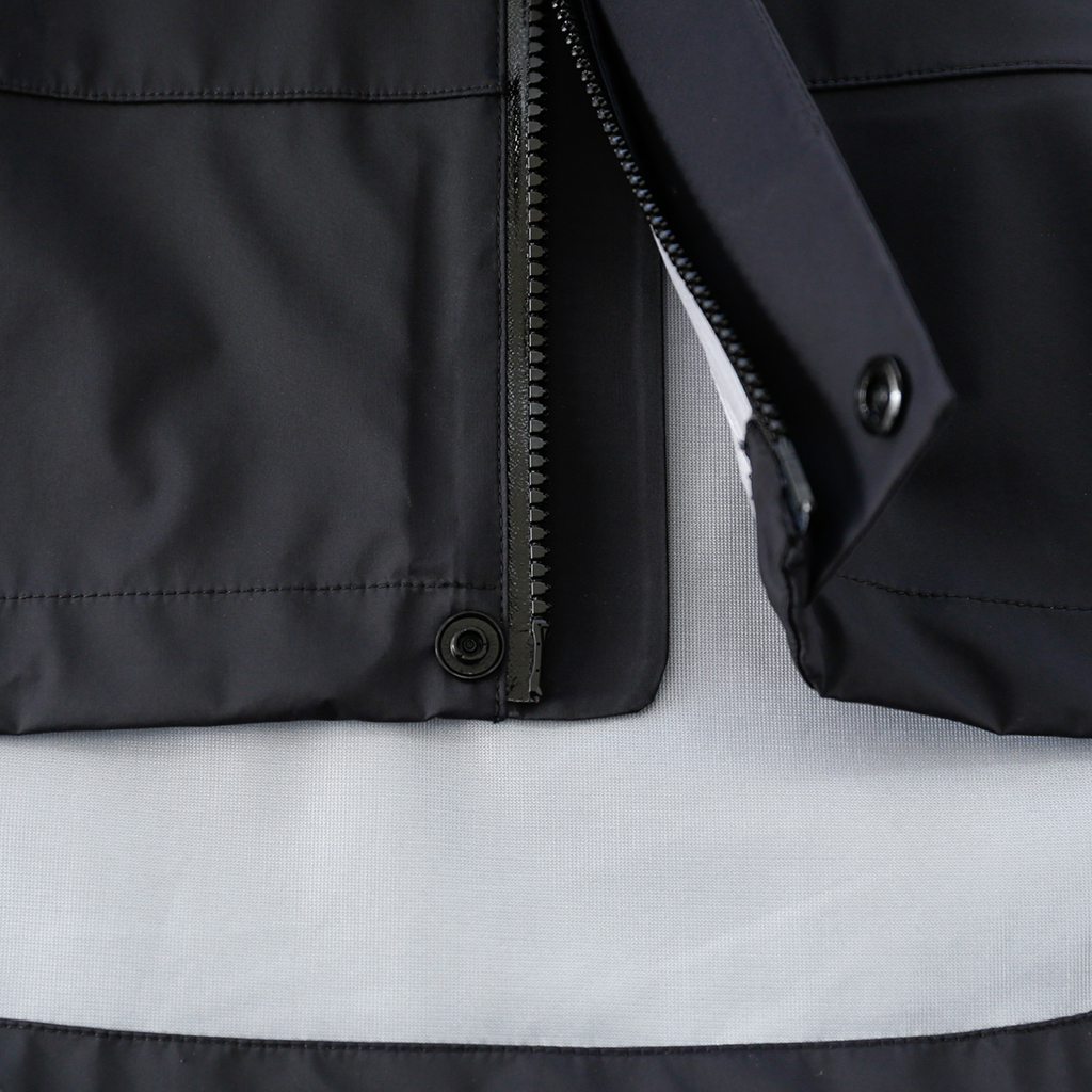 CAYL『3L Mountain Jacket』は、20Dのナイロン3レイヤー生地で作られたレインジャケット。 CAYLのレインジャケットシリーズの中では比較的厚手で、防風性、保温性の高いモデル。 両脇の下にはダブルジッパー式のベンチレーション、さらにフロントセンターもダブルジッパーなので、素早く換気できます。 フード部とウエスト部はストリングで絞れるようになっていて、手首はベルクロで調整できます。 アクティビティに適した十分なスペック、使い勝手を追求しながらも、タウンユースに馴染むデザイン性に優れた、CAYLらしいレインジャケットです。 Black、Grey、Creamの3カラー展開。 内側の左胸部にあるジッパーポケット。 モデル:184cm/Lサイズ