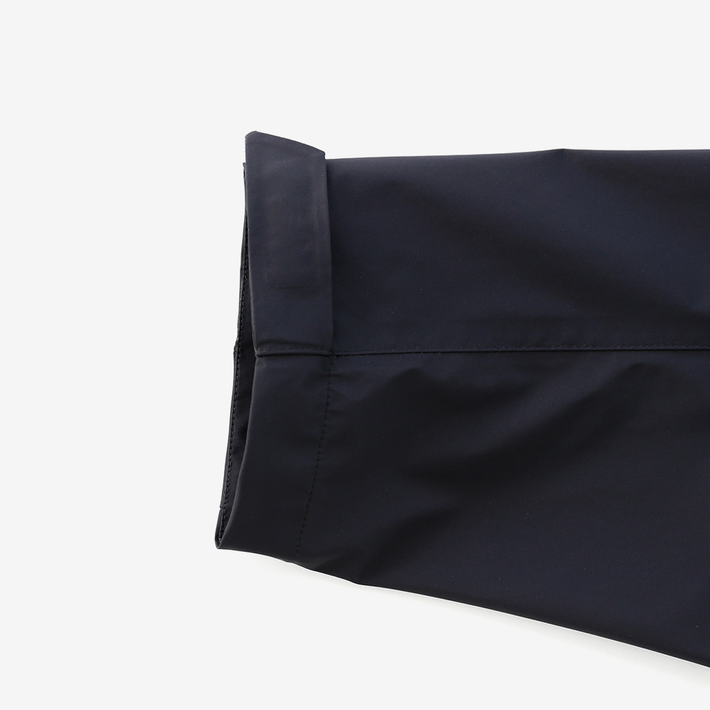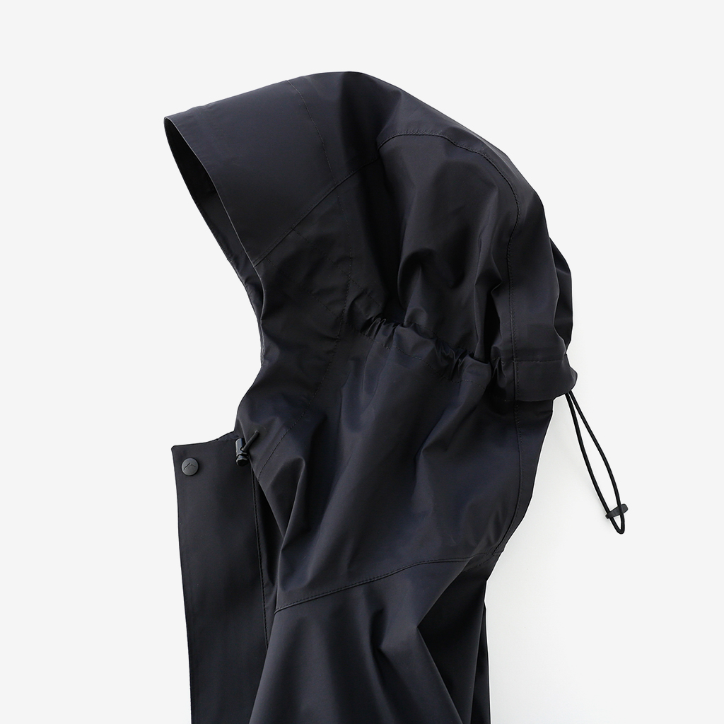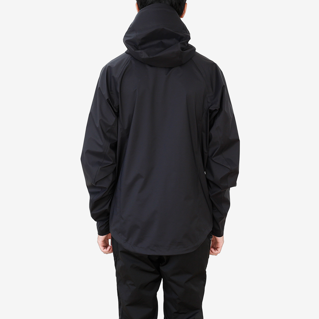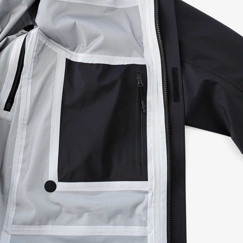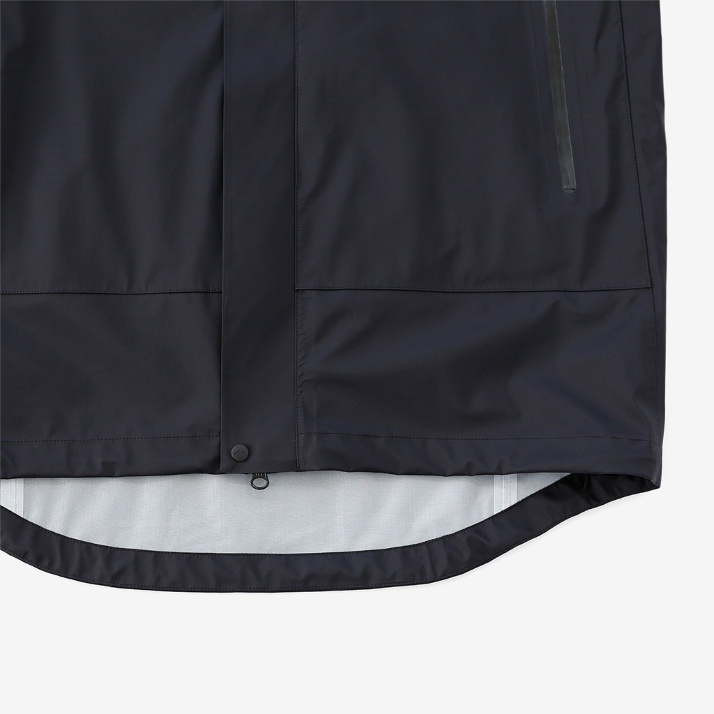 CAYL『3L Mountain Jacket』は、20Dのナイロン3レイヤー生地で作られたレインジャケット。 CAYLのレインジャケットシリーズの中では比較的厚手で、防風性、保温性の高いモデル。 両脇の下にはダブルジッパー式のベンチレーション、さらにフロントセンターもダブルジッパーなので、素早く換気できます。 フード部とウエスト部はストリングで絞れるようになっていて、手首はベルクロで調整できます。 アクティビティに適した十分なスペック、使い勝手を追求しながらも、タウンユースに馴染むデザイン性に優れた、CAYLらしいレインジャケットです。 Black、Grey、Creamの3カラー展開。 内側の左胸部にあるジッパーポケット。 モデル:184cm/Lサイズ