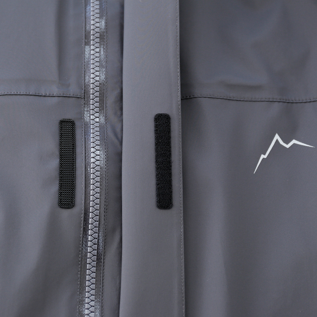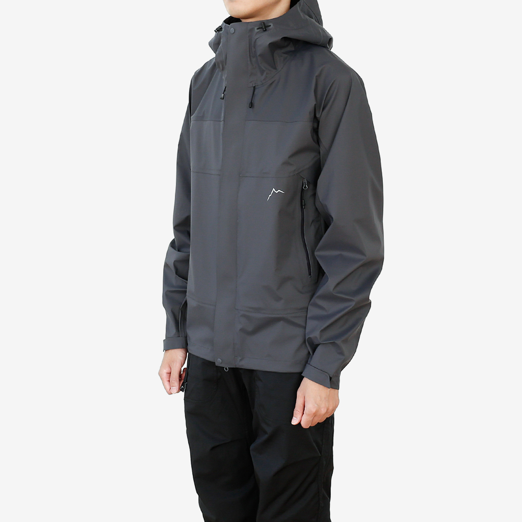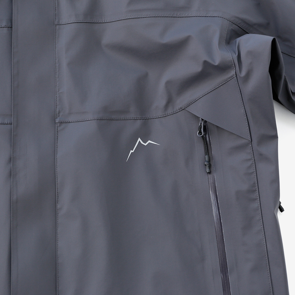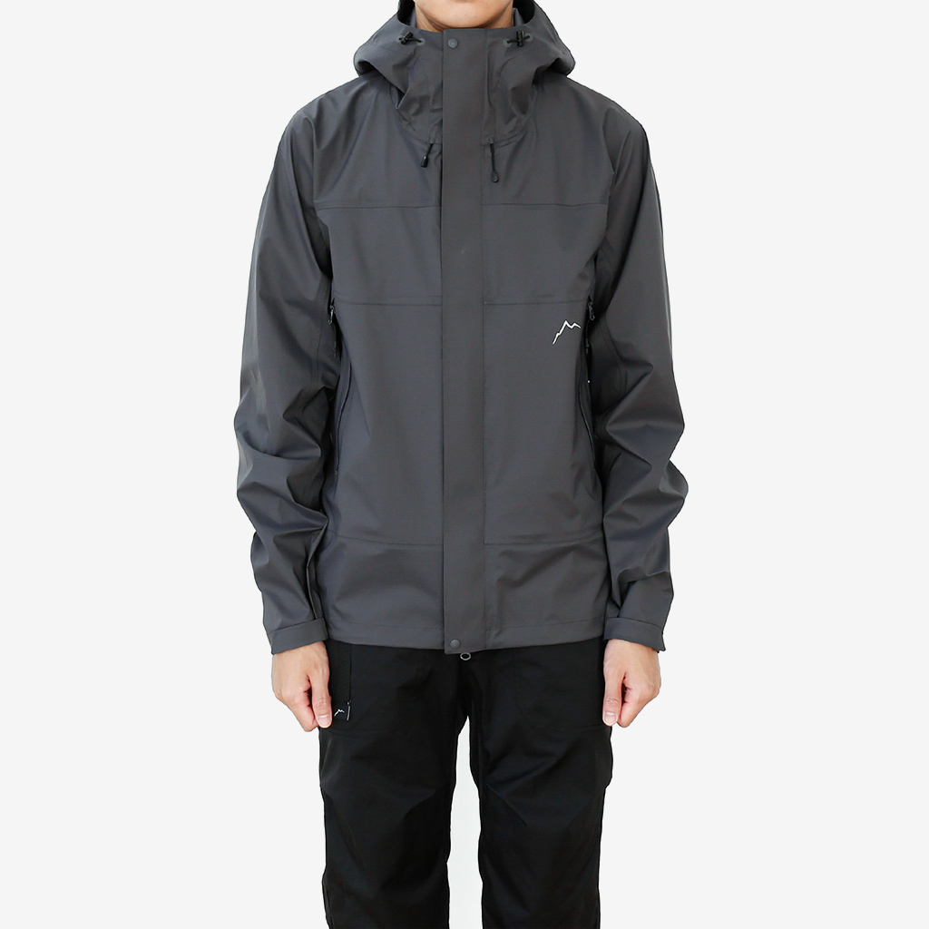 CAYL『3L Mountain Jacket』は、20Dのナイロン3レイヤー生地で作られたレインジャケット。 CAYLのレインジャケットシリーズの中では比較的厚手で、防風性、保温性の高いモデル。 両脇の下にはダブルジッパー式のベンチレーション、さらにフロントセンターもダブルジッパーなので、素早く換気できます。 フード部とウエスト部はストリングで絞れるようになっていて、手首はベルクロで調整できます。 アクティビティに適した十分なスペック、使い勝手を追求しながらも、タウンユースに馴染むデザイン性に優れた、CAYLらしいレインジャケットです。 Black、Grey、Creamの3カラー展開。 内側の左胸部にあるジッパーポケット。 モデル:184cm/Lサイズ