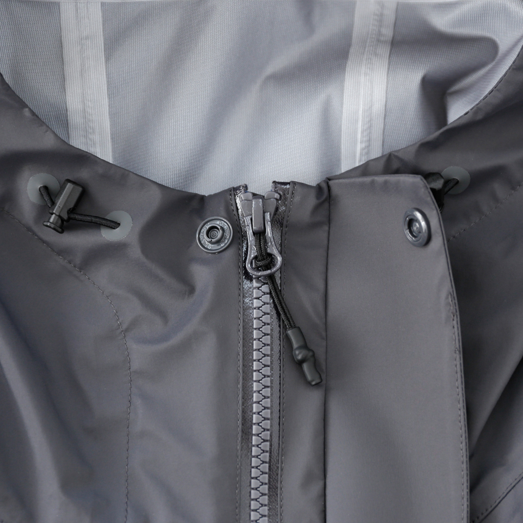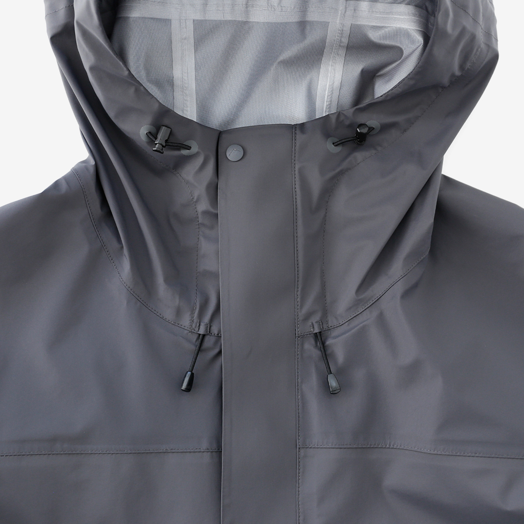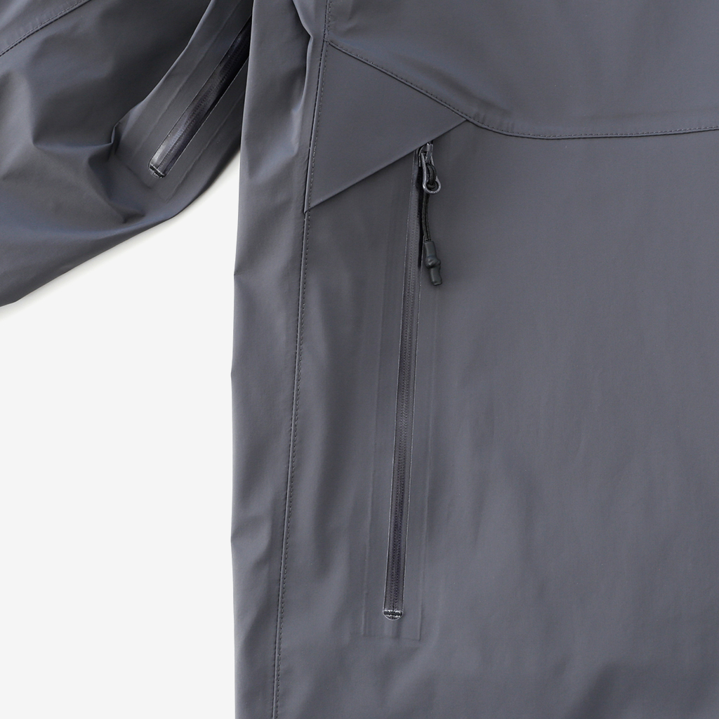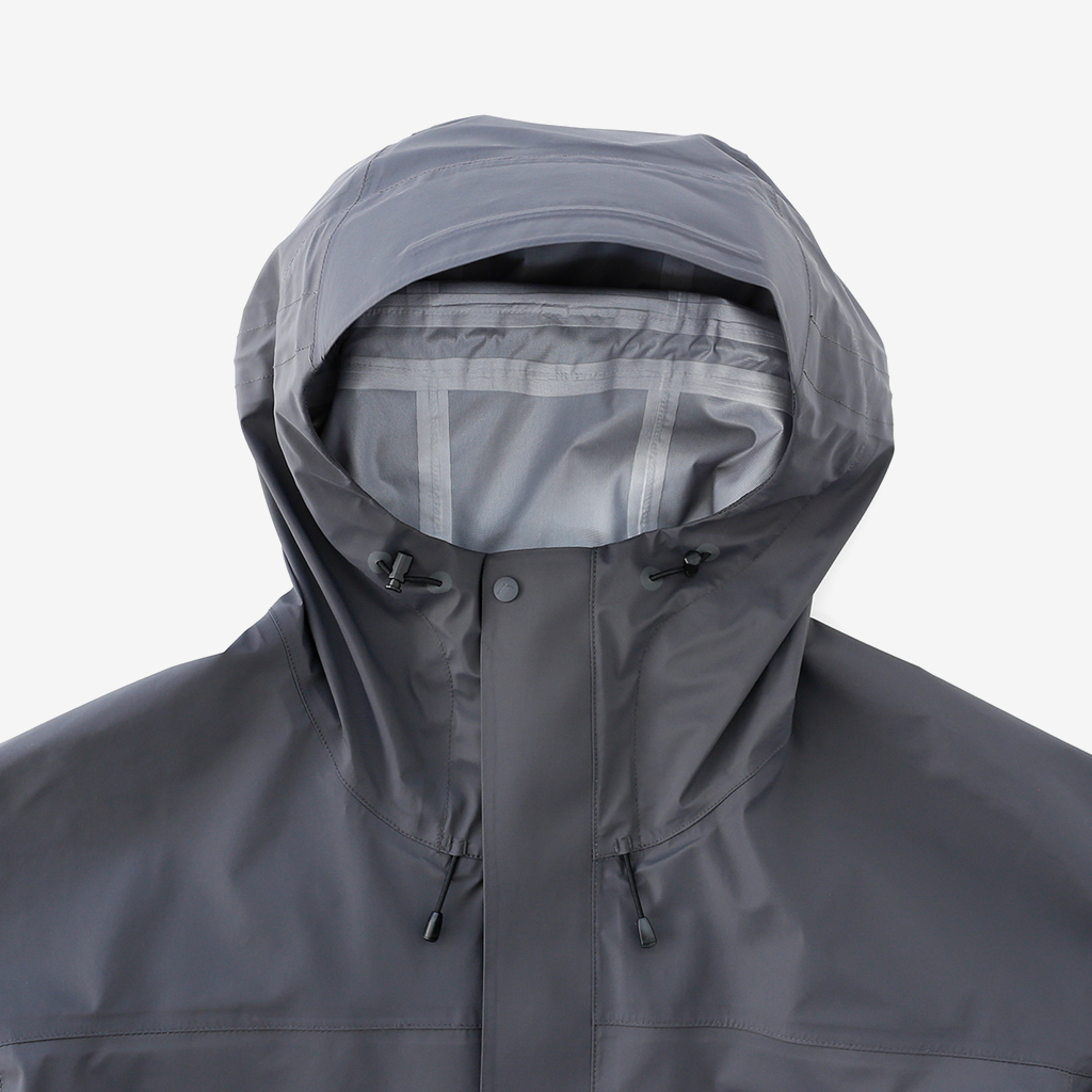 CAYL『3L Mountain Jacket』は、20Dのナイロン3レイヤー生地で作られたレインジャケット。 CAYLのレインジャケットシリーズの中では比較的厚手で、防風性、保温性の高いモデル。 両脇の下にはダブルジッパー式のベンチレーション、さらにフロントセンターもダブルジッパーなので、素早く換気できます。 フード部とウエスト部はストリングで絞れるようになっていて、手首はベルクロで調整できます。 アクティビティに適した十分なスペック、使い勝手を追求しながらも、タウンユースに馴染むデザイン性に優れた、CAYLらしいレインジャケットです。 Black、Grey、Creamの3カラー展開。 内側の左胸部にあるジッパーポケット。 モデル:184cm/Lサイズ