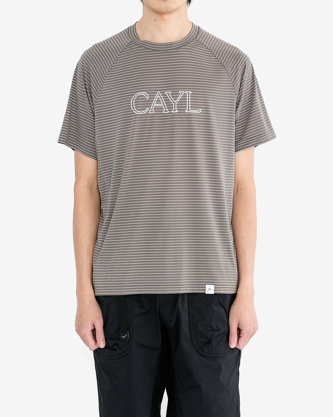 CAYL『Stripe Font Short Sleeve』は、ストライプ状の横メッシュ生地で作られた速乾ラグランTシャツ。 軽量で通気性が高く、吸汗速乾機能があり、ストレッチ性が高いので動きを妨げません。 多くの汗をかく夏山やランニングのベースレイヤーとしても最適です。 速乾ウェアではユニークなストライプパターンで、スタイリングのアクセントになってくれる1枚。 NMGでは、Black、Greyの2カラー展開になります。 モデル:184cm/Lサイズ
