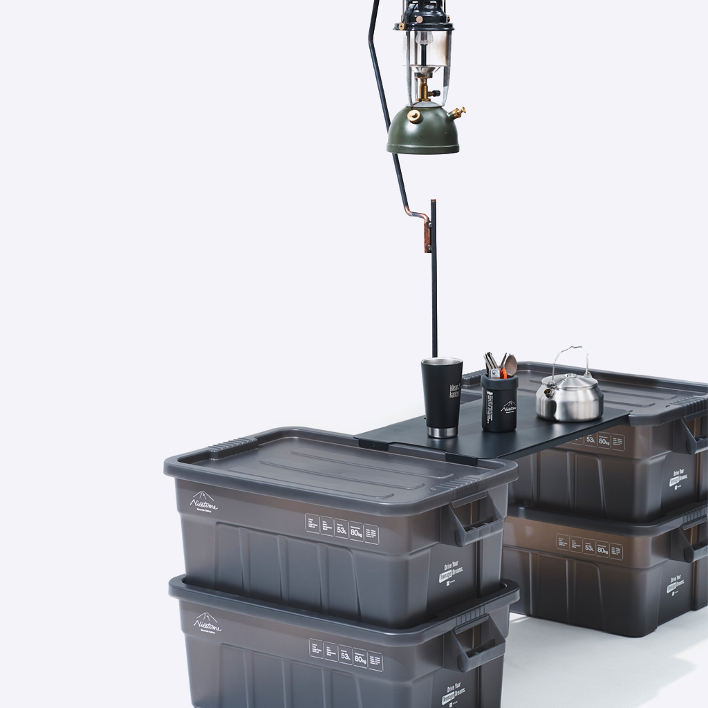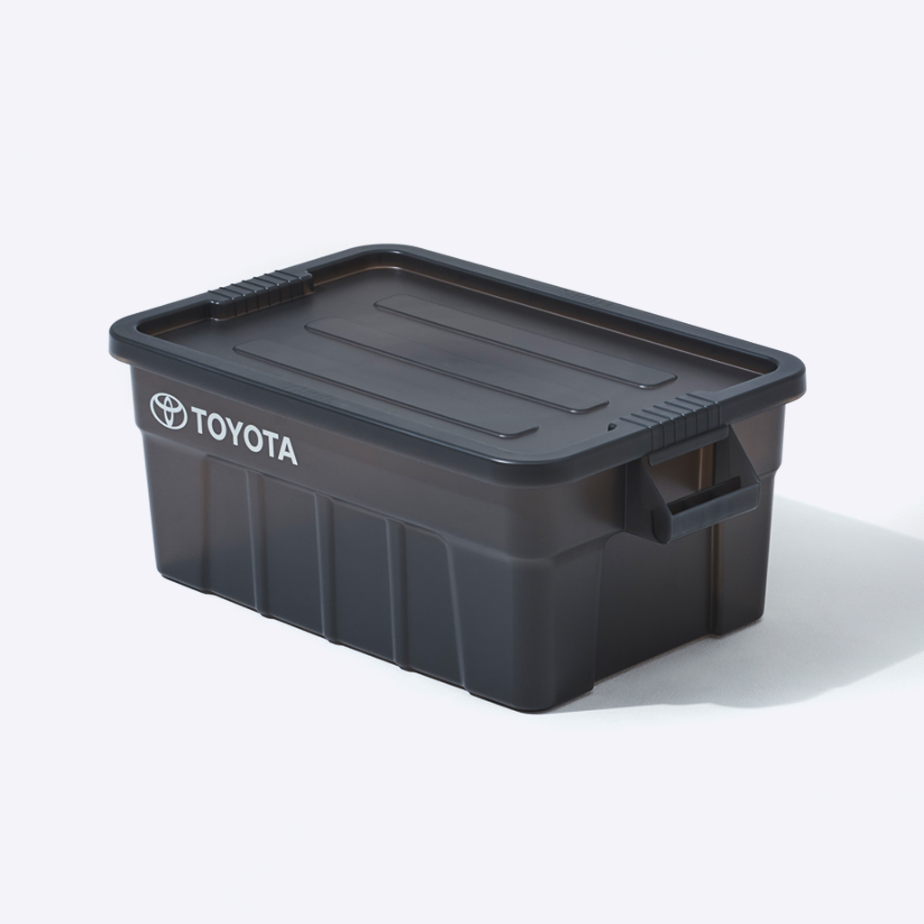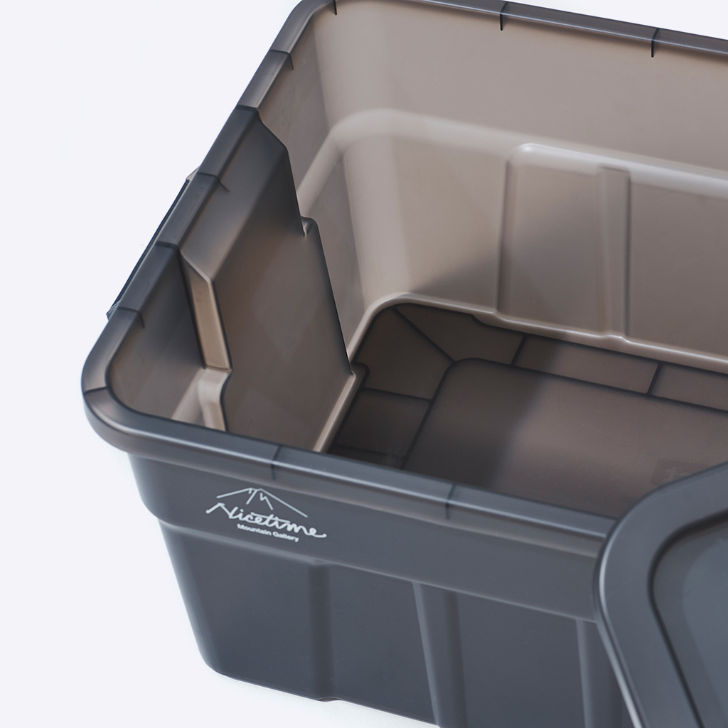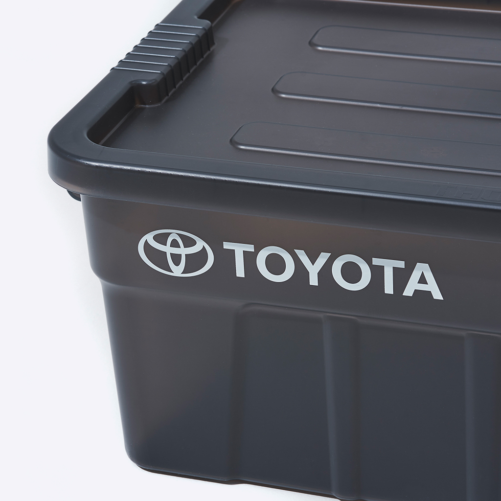 『Nicetime Mountain Gallery』×『トヨタ自動車株式会社』×『株式会社STARBASE』がコラボレーションした限定アイテム。 車の新たな魅力を次の世代に向けて発信する「Drive Your Teenage Dreams.」プロジェクト。 今回ナイスタイムでは、このプロジェクトの核となるマットブラックのハイエースをテーマに、フィールドワークをより一層快適にサポートする、機能やデザイン性に優れた4つの限定アイテムを制作いたしました。 TRUST社の高い耐性を誇るハンドル付きコンテナを、クリアブラックで別注したコラボレーションモデル。 スタッキングもでき、キャンプや登山ギア、衣類、ガレージのカー用品や工具の収納、キャンプサイトの整理整頓にも役立ちます。 中のものがギリギリ見えるか見えないか、絶妙なクリア具合にこだわりました。 ※本製品は業務用として作られているためラフな作りとなっており、本体に多少のキズやバリ、プリント擦れ、蓋に若干のゆがみなどがございます。予めご了承下さい。