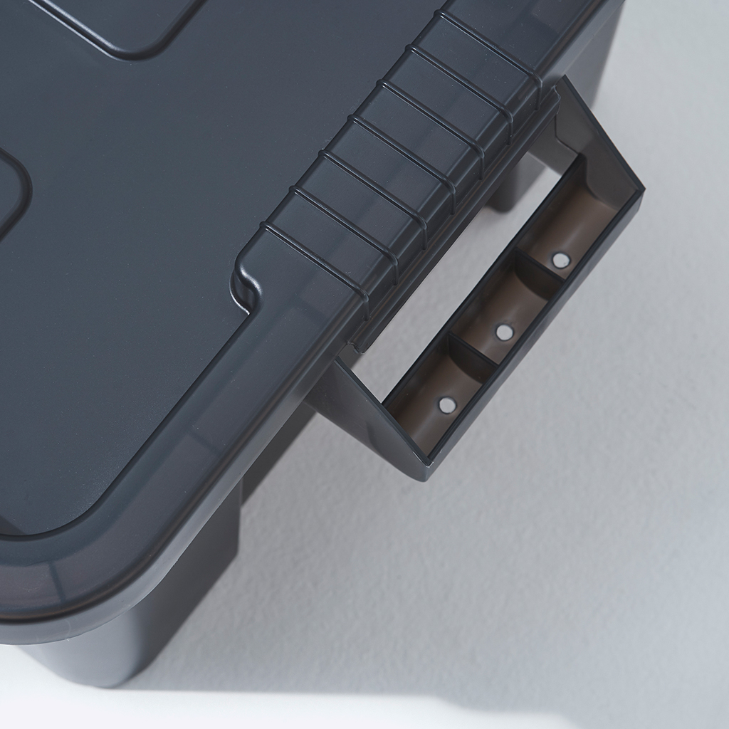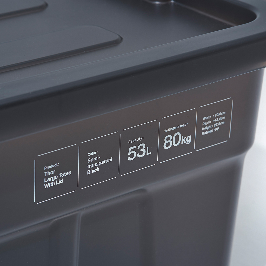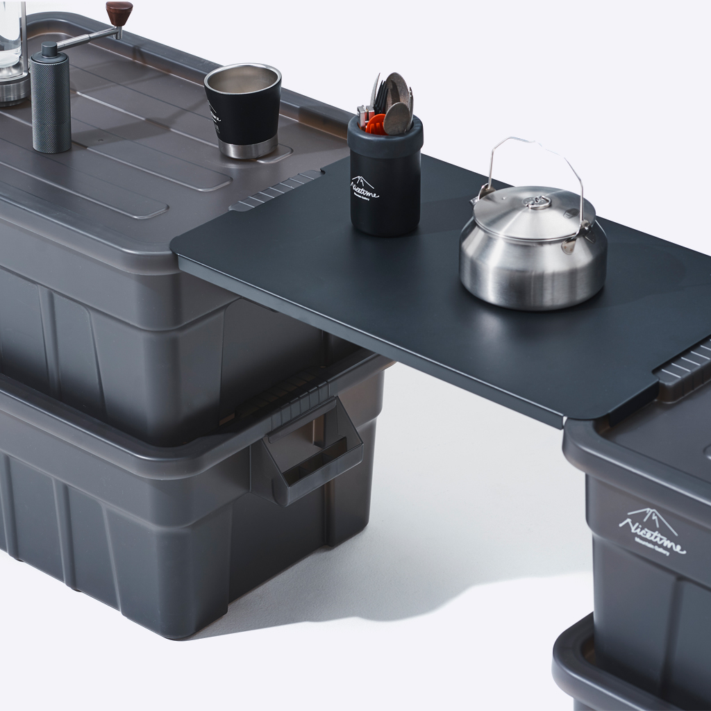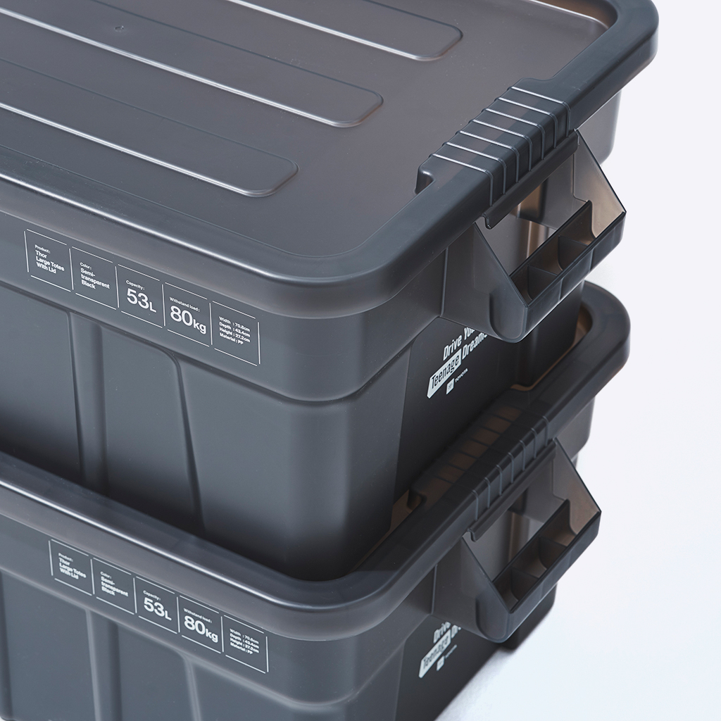 『Nicetime Mountain Gallery』×『トヨタ自動車株式会社』×『株式会社STARBASE』がコラボレーションした限定アイテム。 車の新たな魅力を次の世代に向けて発信する「Drive Your Teenage Dreams.」プロジェクト。 今回ナイスタイムでは、このプロジェクトの核となるマットブラックのハイエースをテーマに、フィールドワークをより一層快適にサポートする、機能やデザイン性に優れた4つの限定アイテムを制作いたしました。 TRUST社の高い耐性を誇るハンドル付きコンテナを、クリアブラックで別注したコラボレーションモデル。 スタッキングもでき、キャンプや登山ギア、衣類、ガレージのカー用品や工具の収納、キャンプサイトの整理整頓にも役立ちます。 中のものがギリギリ見えるか見えないか、絶妙なクリア具合にこだわりました。 ※本製品は業務用として作られているためラフな作りとなっており、本体に多少のキズやバリ、プリント擦れ、蓋に若干のゆがみなどがございます。予めご了承下さい。