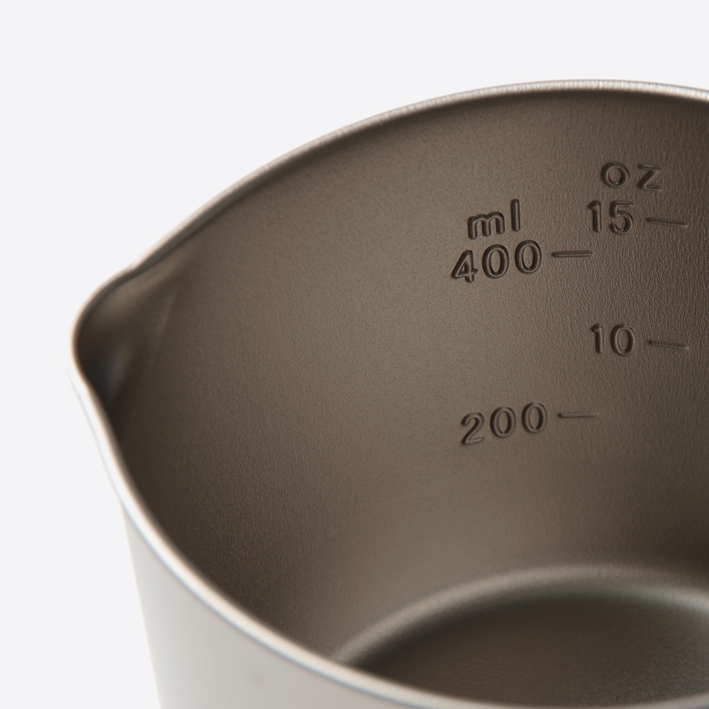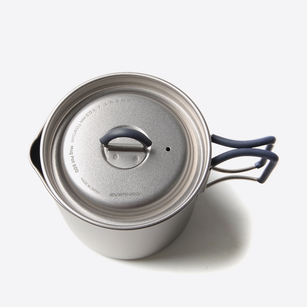 世界中のULハイカーを虜にしたEVERNEW(エバニュー)の名品チタンマグポット500。その底部をフラットにしたモデル『MP500 Flat』が登場。 細かいながら素晴らしいアップデートにより汎用性が向上、様々なアルコールストーブやゴトクとも使いやすくなりました。また、ガスストーブと使用する場合にも安定感が増しています。 なにより、風防の使用を想定し、干渉しないようハンドルが高めに設定されています。 使う頻度の多い200ccの内部目盛りに、使いやすい注ぎ口の形状。ユーザーにしっかりと目を向けた素晴らしい製品です。