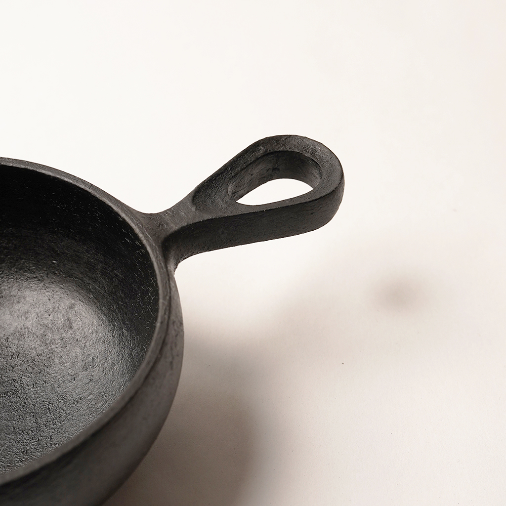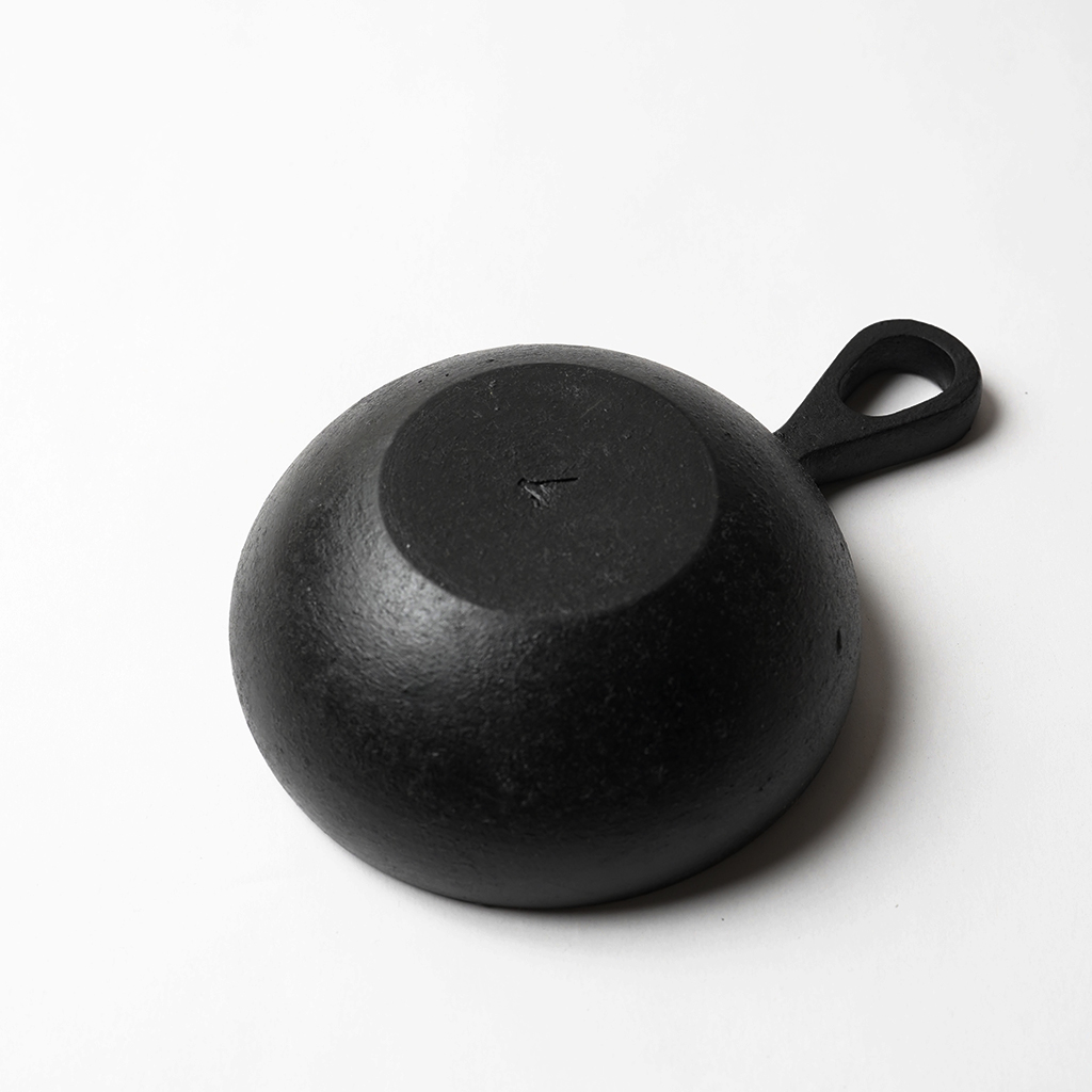 立山連峰を望む富山の地で、自分の愛する登山と料理のための木の器などを製作する木工作家、中西健太氏による【foot of the mountain】 ザックに掛けて外でも楽しめる器でありながら、暮らしにも馴染むものを手掛けています。 Nicetime Mountain Galleryからのリクエストによるシンプルなハンドルで仕上げられたボウル。 ひとかたまりの木材から削り出して、ハンドメイドで一点一点丁寧に作られています。これだけ厚みのあるかたまりを手に入れることもなかなか難しいサイズ。非常に贅沢な作りです。 変形が少なく丈夫なミズメザクラ材を、黒錆という漆芸を用いてマットな質感に仕上げた作品。 Mサイズはコーヒーやスープなどの飲み物や、シリアルなどの食事にも適した大きさで、手に収まりの良いサイズです。 天然の木目を活かした存在感は、乾き物のおつまみなどもこれに入れるだけで特別な一皿になってくれます。 一点一点丁寧に作られた、佇まいも美しい器です。 S、M、Lサイズは綺麗に重ねて収納できます。