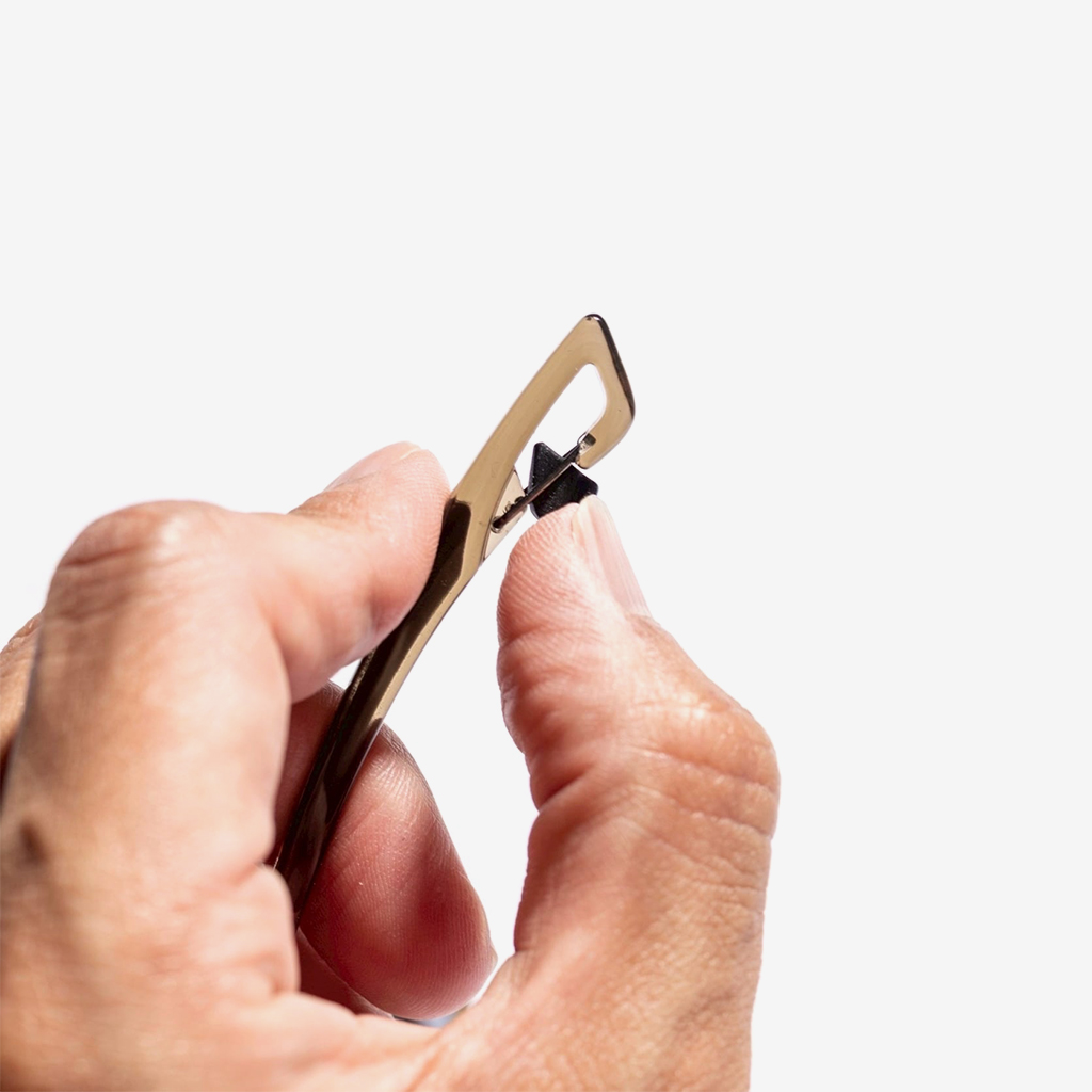 『カラビナキャップ』は、【OWL MILS】(アウルミルズ)の【RED LABEL】【BLACK LABEL】のテンプル先端のカラビナ部分に装着する専用キャップ。 カラビナの下から差し込むタイプで、カラビナ本来の利便性を損なうことなく、髪の毛の引っかかりも防止します。 ■対応モデル■※2025年7月末時点 本製品「カラビナキャップ」は、以下のモデルのカラビナ部(テンプル先端)に対応しております。 【RED LABEL】 Takehaya / Kushinada 【BLACK LABEL】 Vulcan 【WHITE LABEL】 Var - halo commodity edition - 上記以外のモデルへの取り付けについては、形状やサイズの違いによりフィッティングが合わず、外れやすくなる可能性がございます。 他モデルへの装着をご希望の場合は、あくまでお客様ご自身の責任のもとでのご使用をお願いいたします。 安全にご使用いただくためにも、対応モデルでのご使用をおすすめいたします。 以下の2025SS以前のモデルには、専用のカラビナソックスをご使用ください。 【WHITE LABEL】 Murakumo 【RED LABEL】 Izanagi / Izanami / Tsukuyomi 【BLACK LABEL】 Ares / Apollon / Kronos カラビナキャップのとがった部分を、テンプル先端の金属パーツに下方向から差し入れ、押し込みます。 ※カラビナキャップは左右共通です。 ※カラビナキャップのくぼみ部分が金属パーツに収まるまで押し込んでください。 取り外す際は、差し入れた場合と同様につまんで引き抜いてください。 グラスコードを併用される場合は、先にグラスコードを装着し、その後カラビナキャップを差し込んでください。