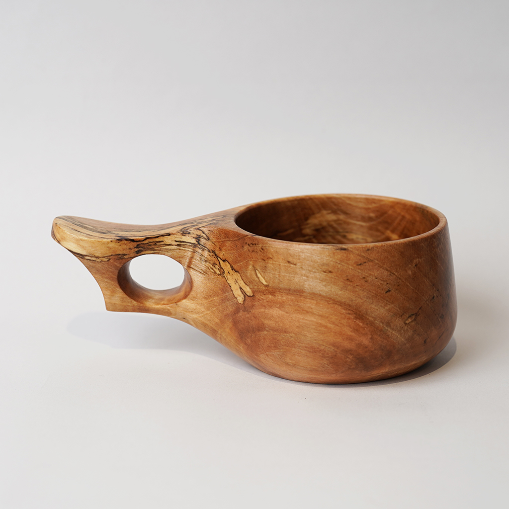 【atelier dehors】(アトリエ・ドゥオル)による栃の木から削り出したカップ。 ガラス塗料で仕上げてあります。耐水性の高いコーティングですので、オイル仕上げの器のようなお手入れは必要ありません。 カップ部はあえて彫りは入れず、質感の個性を最大限に楽しめるように。シンプルながら握りやすく存在感のある持ち手。 温かい飲み物、冷たい飲み物、アイスクリーム、ヨーグルトなど、様々な用途にお使いいただけます。 ※ハンドメイドによる1点ものになります。 【atelier dehors/アトリエ・ドゥオル】 長谷川 誠 千葉県で制作活動を行う木工作家。「dehors」は「外」を意味しており、活動拠点である外房の”外”という意味を込められています。 小さな端材でも、その材自体の木目や個性を生かす方法を考え、無駄の無い丁寧な作品作りが特徴。