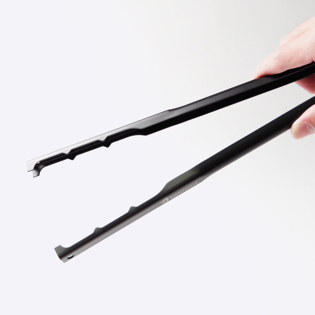 ベルモントが作る細身でシンプルデザインのUL火バサミ。 アルミニウムをコの字に成形しているため強度があり、大きな薪にも対応します。可動部にはバネ材を使用しているのでヘタれることなく長く使えます。 先端をズラして使えば細い枝もつかめる設計。荷物を減らしたいソロキャンパーやツーリングキャンプにもオススメです。 同ブランドの焚き火台TABIやTOKOBIの収納ケースに入る33cm仕様で、わずか70gです。 ケトルのハンドル部分なども持ち上げられる先端部のデザイン。 大きな薪にも対応します。