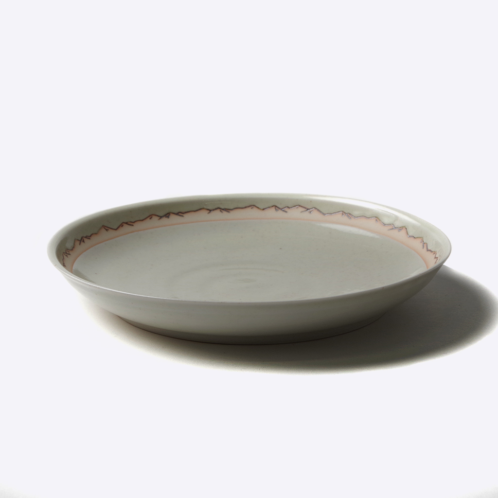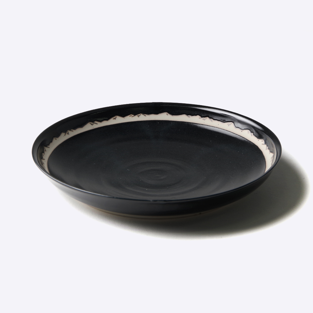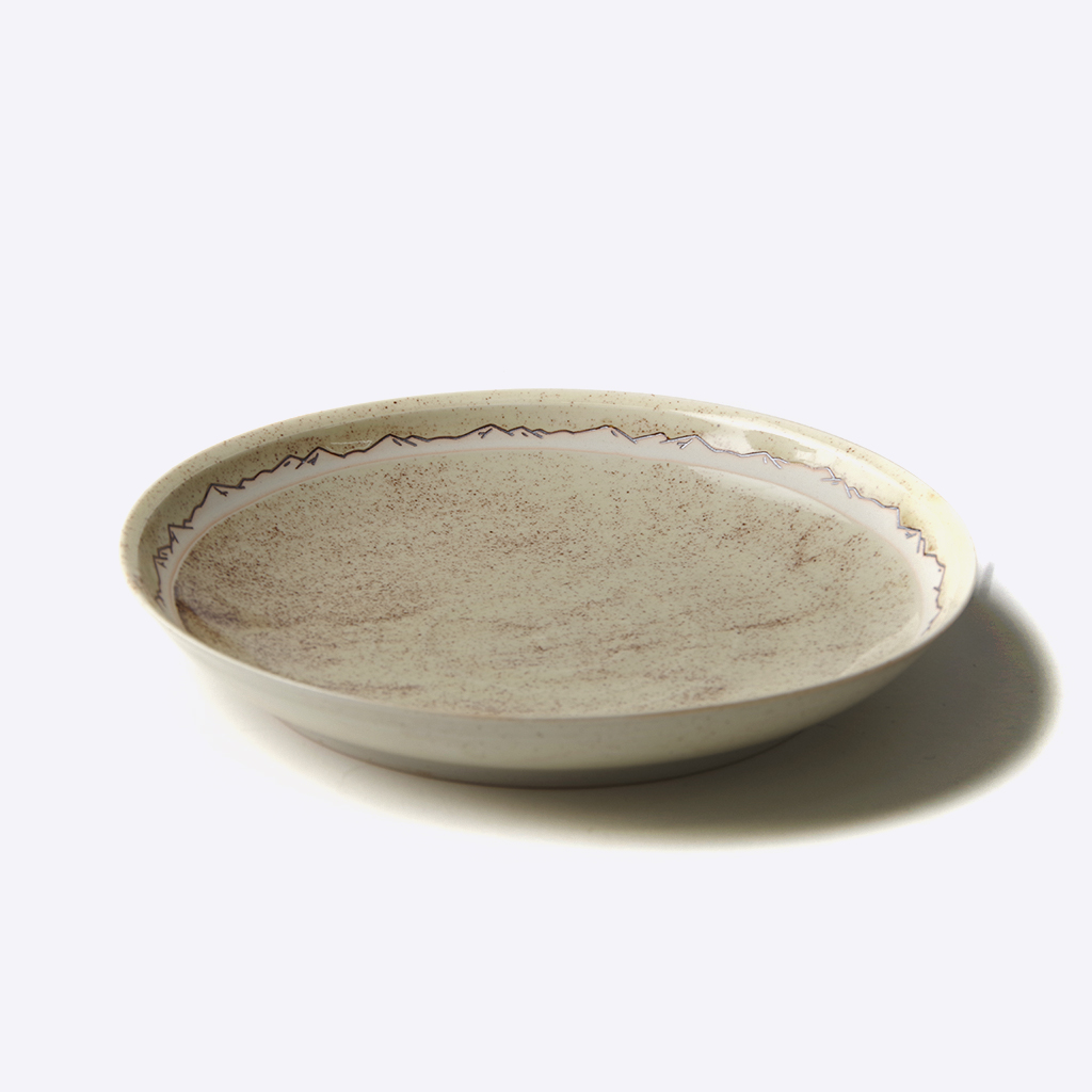 京都在住の陶磁器作家、芦田尚美さんの作品。 『AMETSUCHI 平 φ24cm皿』は、山並みの線刻で「そら」と「つち」を表現した平皿。ぐるっと一周、山の稜線が連なります。 カラー:マスタード ■芦田尚美(ashida naomi) 『AMETSUCHI』 京都在住の陶磁器作家。 2000年頃から「AMETSUCHIシリーズ」などの日常使いの器を中心に制作。 土をかたちづくり焼くという行為、その工程と結果をたのしみ、 気になるもの事をかき混ぜることで作品がうまれます。 AMETSUCHI=アメツチ=天地 山並みの線刻で「そら」と「つち」を表現した器のシリーズ。 天地の恵みを食卓に。 カラー:サンド カラー:黒 カラー:薄緑 底にはロゴマーク。