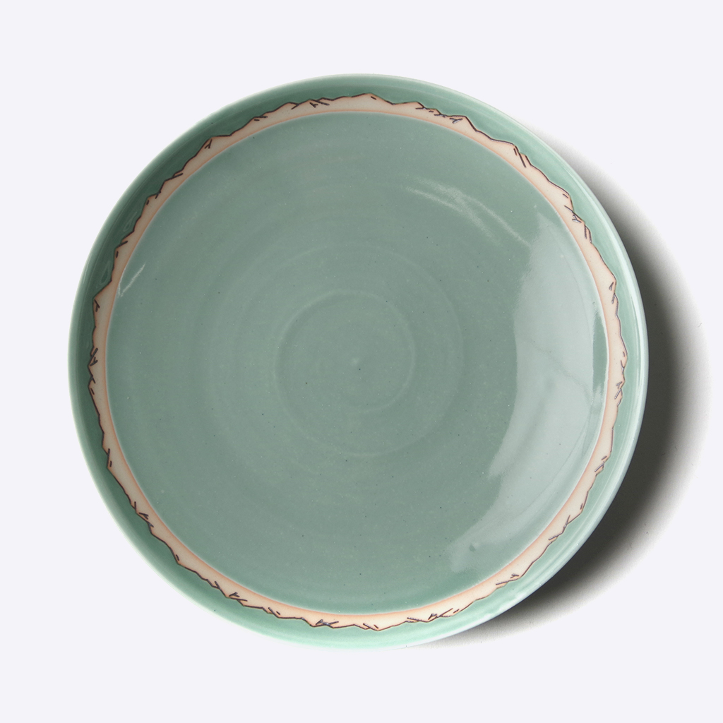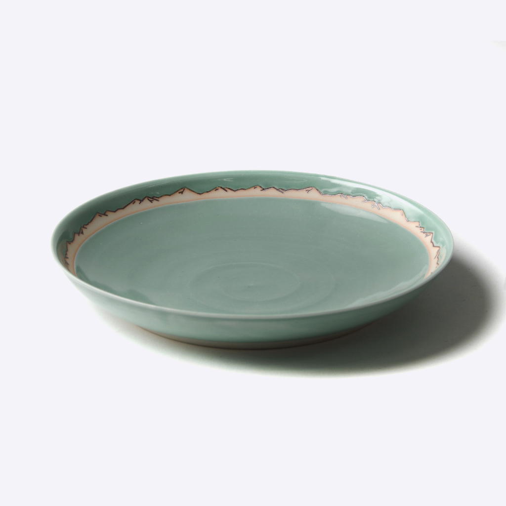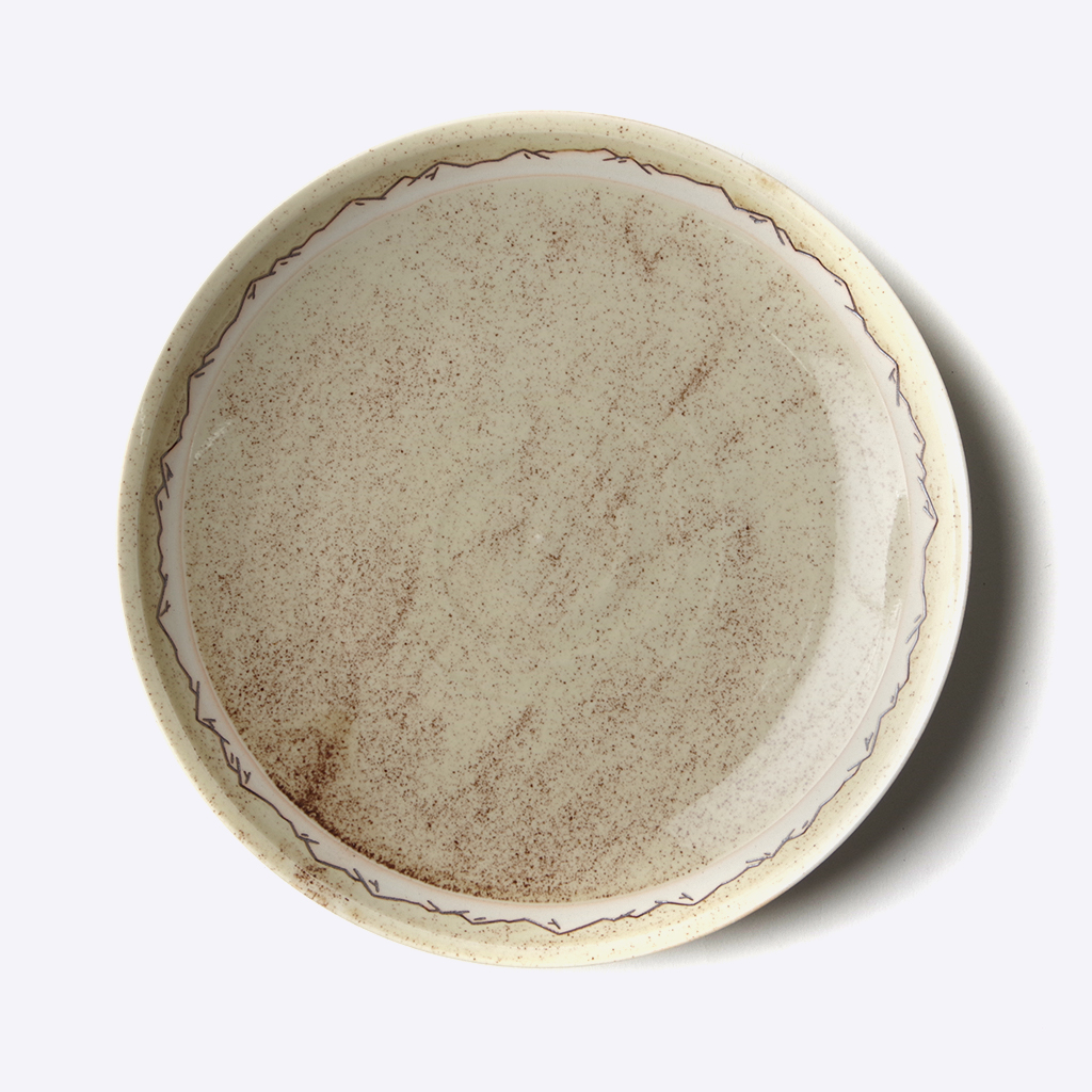 京都在住の陶磁器作家、芦田尚美さんの作品。 『AMETSUCHI 平 φ24cm皿』は、山並みの線刻で「そら」と「つち」を表現した平皿。ぐるっと一周、山の稜線が連なります。 カラー:マスタード ■芦田尚美(ashida naomi) 『AMETSUCHI』 京都在住の陶磁器作家。 2000年頃から「AMETSUCHIシリーズ」などの日常使いの器を中心に制作。 土をかたちづくり焼くという行為、その工程と結果をたのしみ、 気になるもの事をかき混ぜることで作品がうまれます。 AMETSUCHI=アメツチ=天地 山並みの線刻で「そら」と「つち」を表現した器のシリーズ。 天地の恵みを食卓に。 カラー:サンド カラー:黒 カラー:薄緑 底にはロゴマーク。