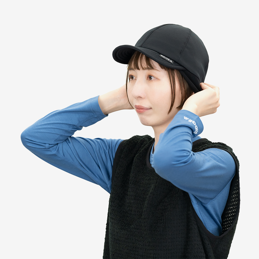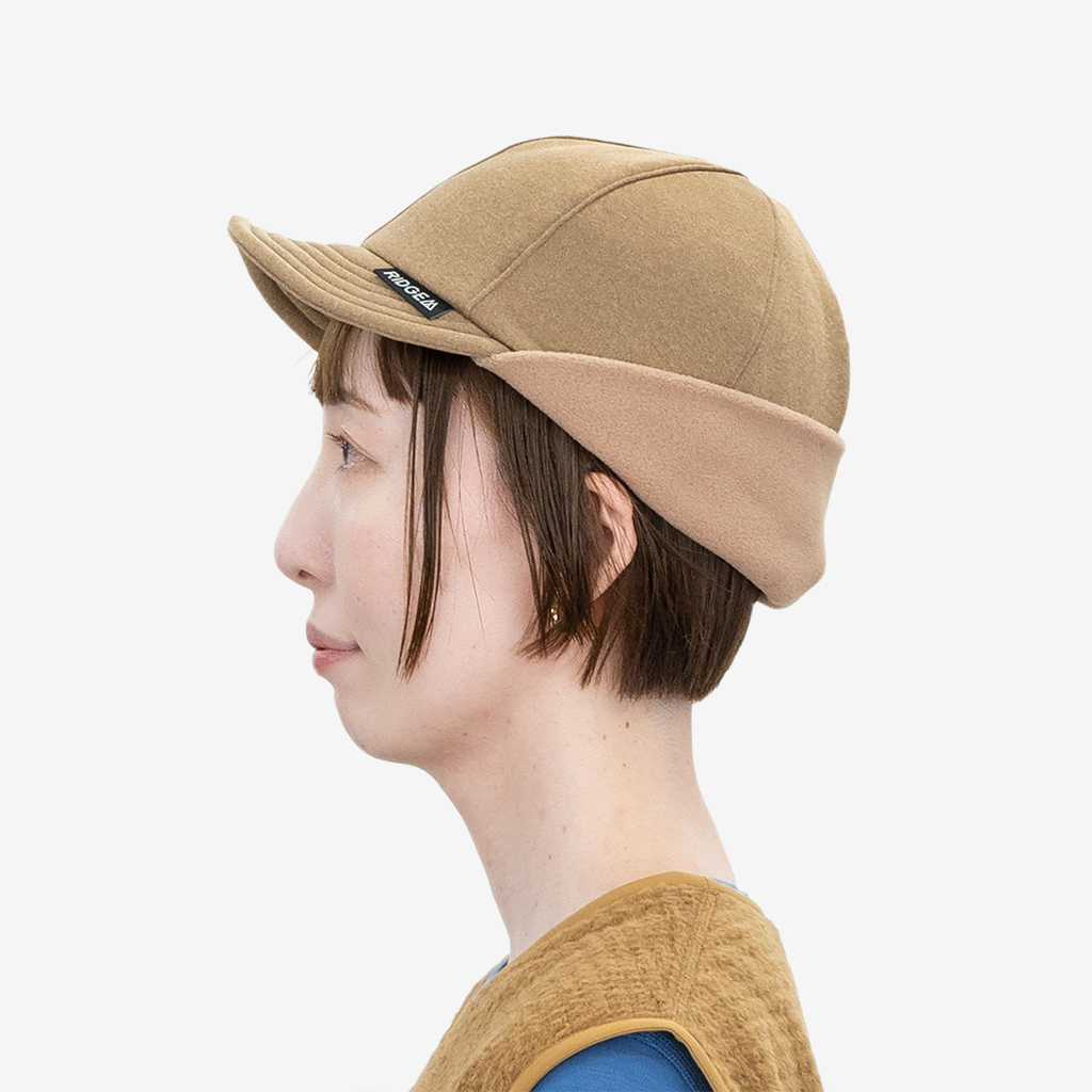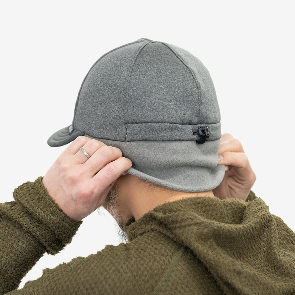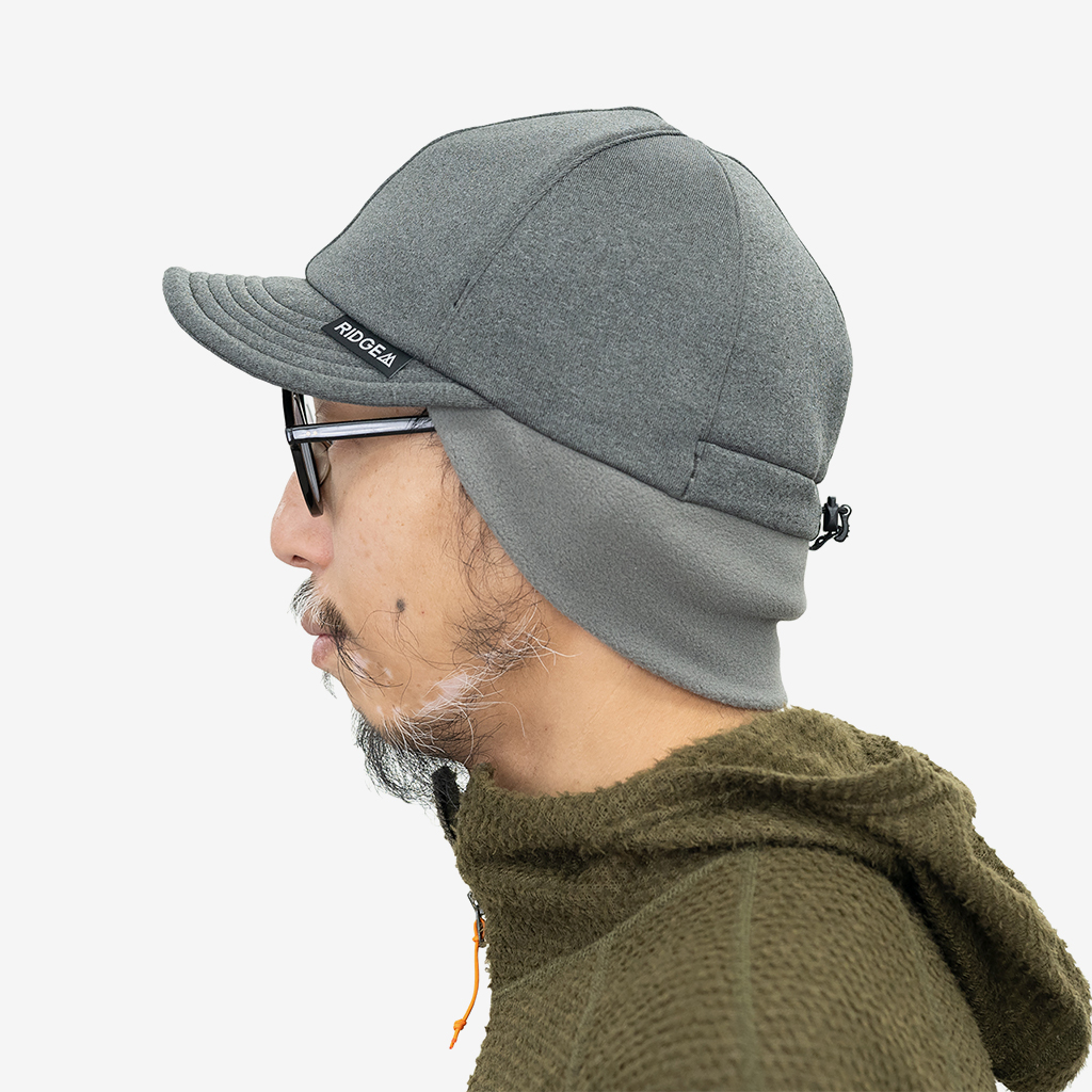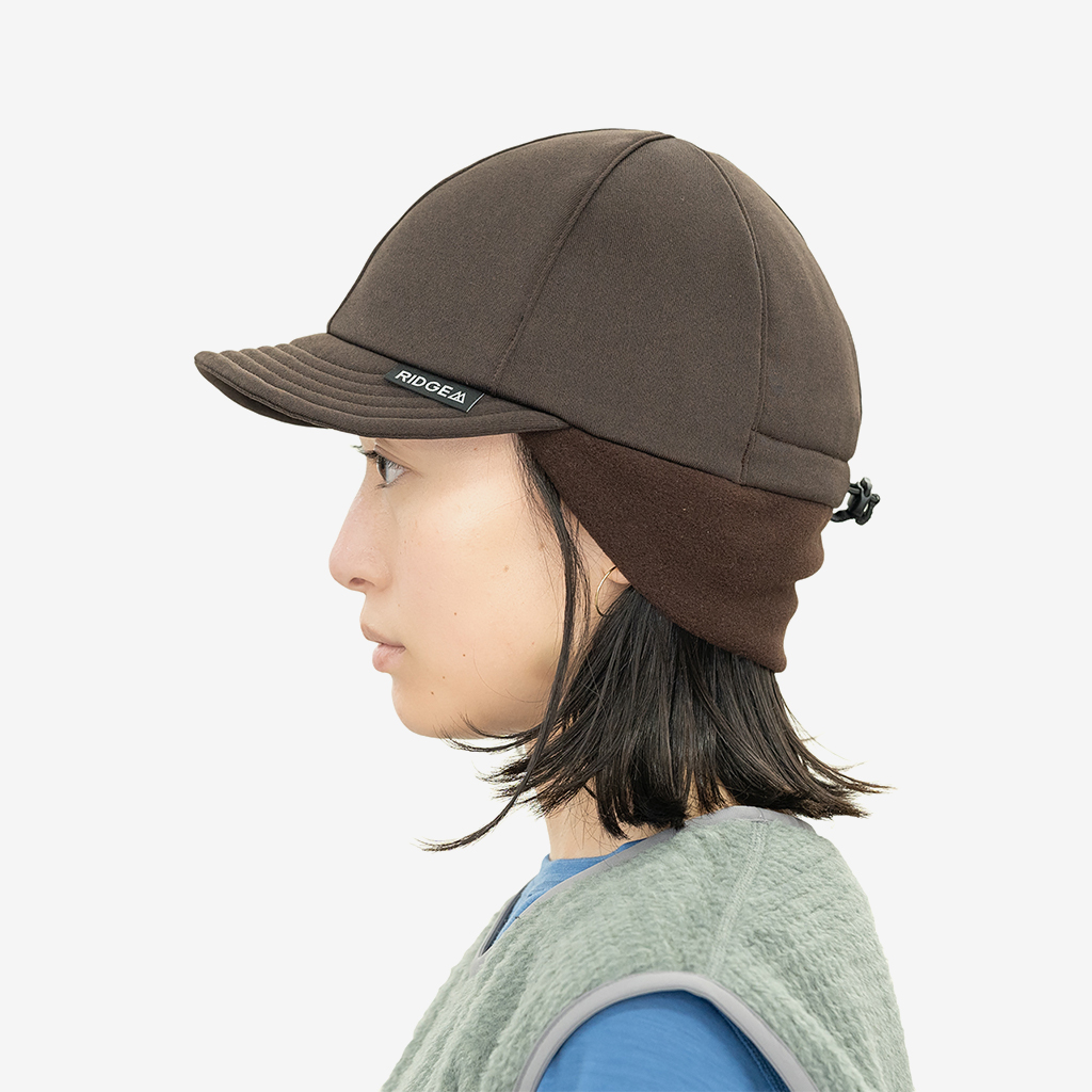 山で過ごす時間や、それにいたるまでの日々の生活をシンプルに過ごす為の道具を作るメーカー【RIDGE MOUNTAIN GEAR(リッジマウンテンギア)】 神奈川県逗子市にアトリエを構え、自分で使う為の山道具を自分自身で作ることを発想の起点にして、シンプルで長く付き合える道具を1点1点丁寧にものづくりをしています。 『Power Stretch Earmuff Cap』は、伸縮性、通気性、保温性、吸湿速乾性に優れたPolartec Power Stretchを使用。 特に肌触りとフィット感が素晴らしく、長時間の着用でも快適です。 ベーシックな6枚接ぎの本体はゆったりと深く、ヒサシ部分は風の影響を受けすぎず、日除けの効果も期待できる適度な長さ。 寒い時は耳当てを使って、必要ない時はサッと上に折り返せます。この手軽さがなんとも使いやすい。 耳当て部分は生地を裏使い2つ折にして2枚仕立てになっているため、1枚仕立ての頭部分よりも耳と後頭部を暖かく保てます。 通気性と保温性のバランスが良く、冬のアクティビティキャップとしてオススメです。 カラー:Smoky Granite カラー:Desert Dune カラー:Midnight Cocoa カラー:Deep Shadow 参考までに、同じでデザインで生地が異なる2モデルの比較。 『Grid Merino Earmuff Cap』 常に行動するアクティブな人向け。通気性に富み、蒸気を多く発散してくれます。 『Power Stretch Earmuff Cap』 ほどよく蒸気を逃し、保温性と速乾性に優れています。 『Grid Merino Earmuff Cap』ほどではありませんが通気性にも優れています。 通気性と保温性のバランスが取れたキャップです。 耳当て部分は、後頭部、うなじまですっぽりと包んでくれます。