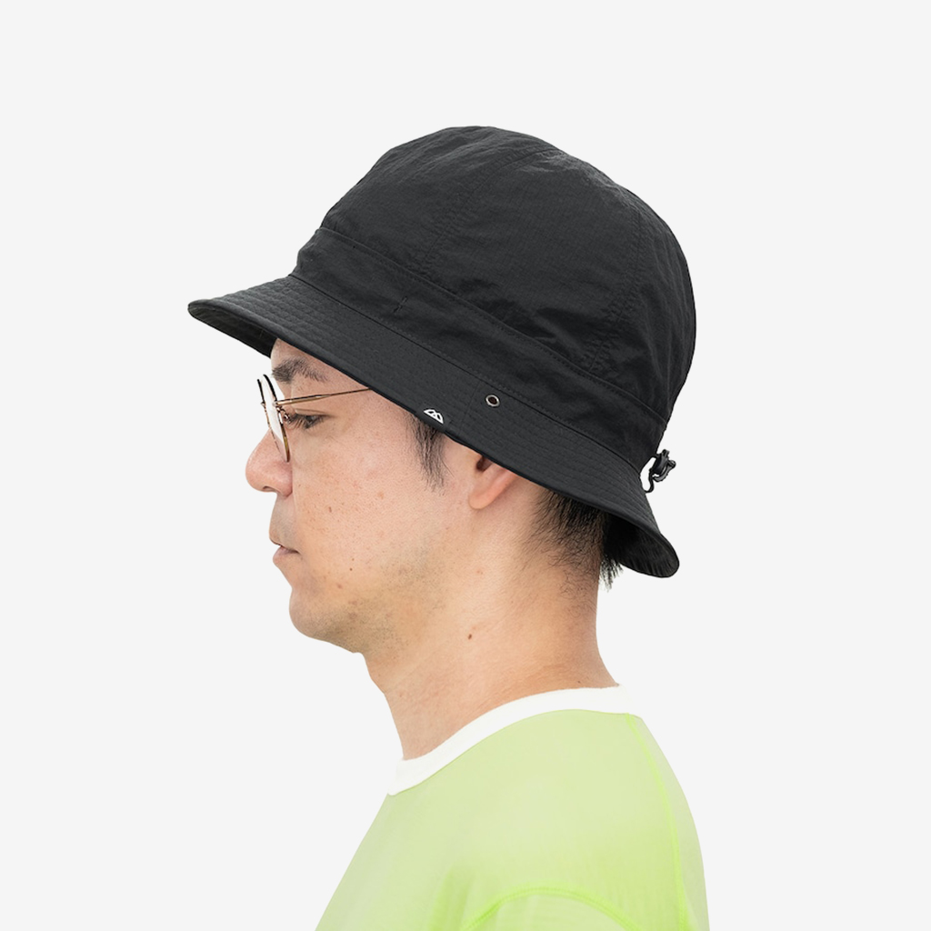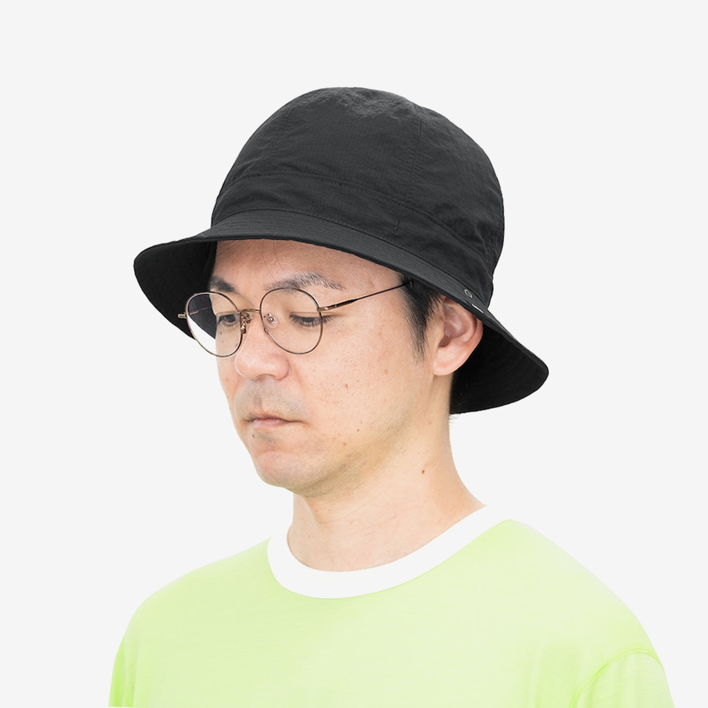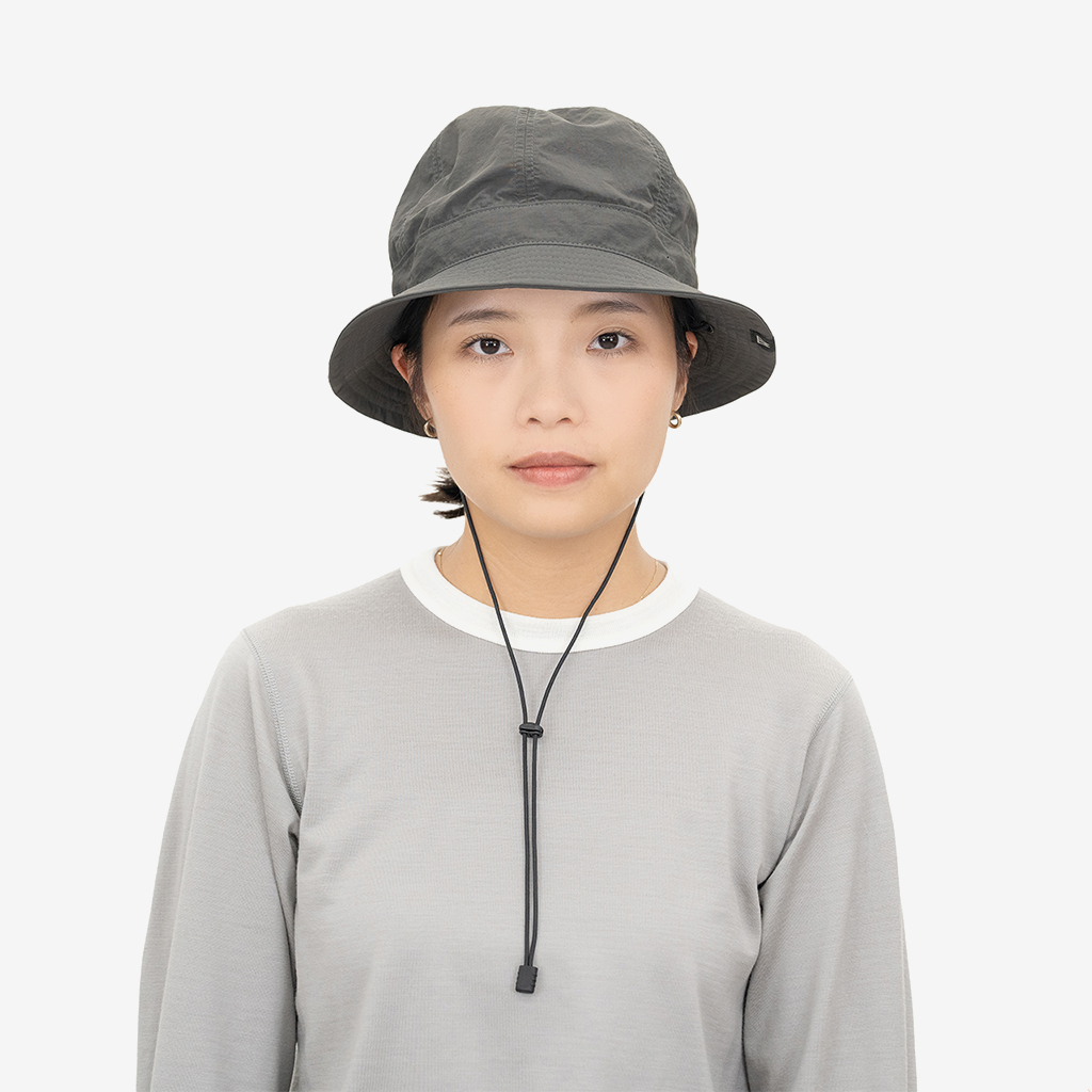 山で過ごす時間や、それにいたるまでの日々の生活をシンプルに過ごす為の道具を作るメーカー【RIDGE MOUNTAIN GEAR(リッジマウンテンギア)】 神奈川県逗子市にアトリエを構え、自分で使う為の山道具を自分自身で作ることを発想の起点にして、シンプルで長く付き合える道具を1点1点丁寧にものづくりをしています。 この『Field Hat』は、大きめのヒサシで十分な日除けの効果が期待できるハット。低山でのハイク、森の散策、日常の散歩、旅に。 頭周りが少々大きめという代表の黒澤さん自身が、ストレス無く安心して被れる『Basic Cap』をベースにしています。 本体部分には、繊維廃棄物から再生されたナイロンを使用。ナイロン特有のタフな強度はそのままに、ふわっと仕上がるタスラン糸によるコットンタッチとナイロンのソフトな風合いを兼ね備えた素材です。リップストップ組織の生地の表面には撥水加工が施されています。 汗止め部分にはCOOLMAXファブリックを使用。鹿の子状のポリエステル100%素材で吸水速乾性・UVカット(UPF 40+)の機能を兼ね備えています。 付属のロープは取り外しも可能。不要な場合は簡単に外せます。 ファンの多いRIDGE MOUNTAIN GEARの帽子の中でも、もっとも日除け効果の高いハットの登場です。 カラー:Deep Graphite カラー:Abyss Black ロープ先のプラパーツを上画像のように開くと、ロープが取り外しできます。隙間に爪を引っ掛けると簡単に外せます。 低山でのハイク、森の散策、日常の散歩、旅に。