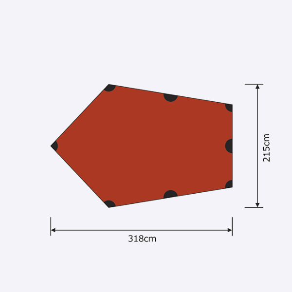 HILLEBERG ヒルバーグ タープ5 ウルトラライトはミニマリストの為のソロ用タープです。5角形の形でどんな天候下でも十分な居住空間と荷物をおける十分なスペースを作ることが可能です。雨の日は地面に直接タープをペグダウンすることで調理スペースを確保しつつ雨をしのぐことも可能な絶妙なサイズ感。またガイラインを長くすることで、開放感のある張り方をすることで、大人2人でも十分に活用できます。 カラー:サンド カラー:レッド カラー:グリーン 詳細サイズ。 ※写真は使用イメージですので、ご使用の用途に合わせてサイズをお選び下さい。 ※ご注意:写真のポールは付属致しません。