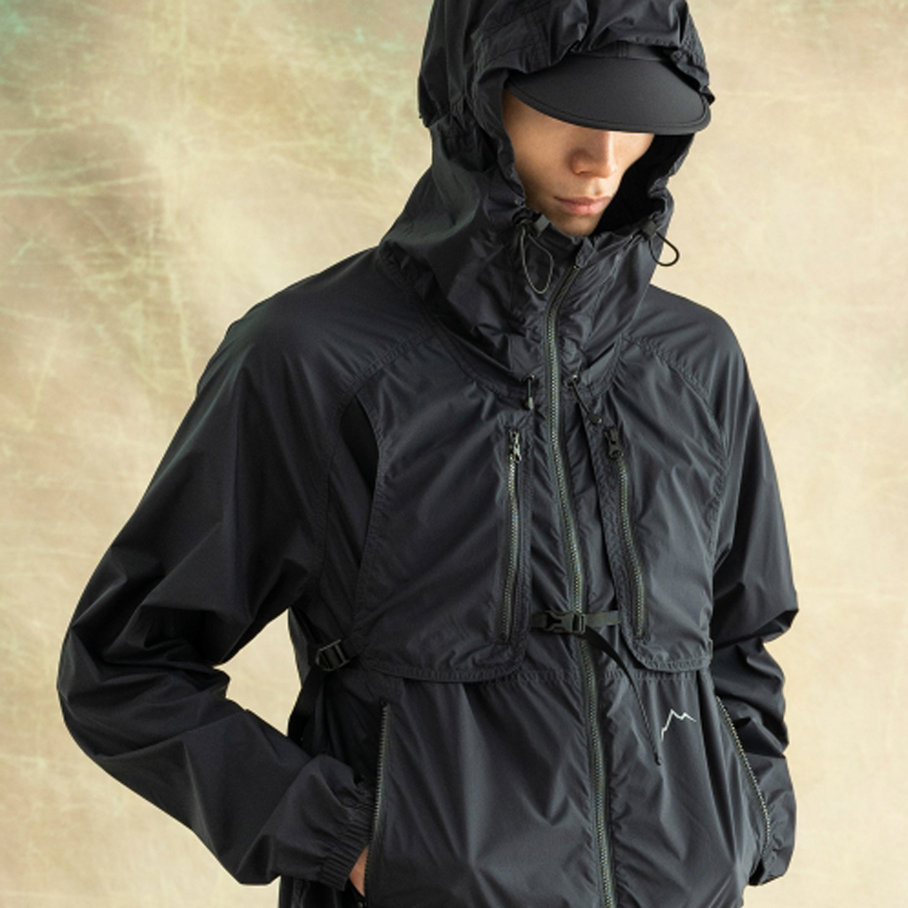 CAYL『Buckle Wind Jacket』は、バックルを効果的に配したユニークなウインドジャケット。ウインドジャケットの前胸部分だけ、薄手のベストを重ね着したようなデザインになっています。 胸元のバックルと、両サイドのバックルを活用してフィッティングが調整でき、ゆったりと着たり、風が強いシチュエーションなどバタつきが気になる時は絞ってタイトに着用することで快適に行動できます。 また、フロントのダブルジップを開けた時にも胸元のバックルを留めておけば、換気をしてオーバーヒートを防ぎつつも、ジャケットの形を保持することで、胸ポケットをストレスなく使うことができます。 軽量ながら防風性、撥水性に優れたPertex Quauntum Airはちょっとした雨なら凌げて、収納もコンパクト。 薄くてもしっかり防風してくれるので、アクティビティはもちろん、夏場の冷房対策や旅行、デイリーユースにも、1枚あるととても重宝するウインドジャケットです。