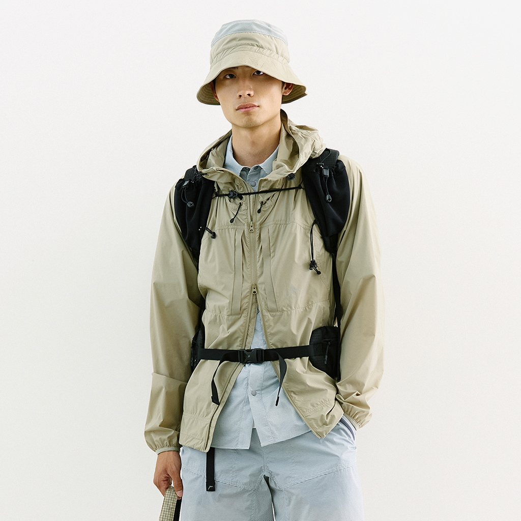 CAYL『Wind Jacket』は、軽量ながら適度な通気性、防風性、撥水性に優れた高機能素材「Pertex Quauntum Air」を使った万能ウインドジャケット。 撥水加工も施され、ちょっとした雨なら凌げて、収納もコンパクト。 フロントはダブルジッパー、4つのポケット、フードと裾はストリングコードで調整もできて、使うシーンを選ばないまさにCAYLらしいマルチな仕様。 軽量でコンパクトになるので荷物の負担にならず、アクティビティはもちろん、夏場の冷房対策や旅行、デイリーユースにも。 インナーやアウターとのレイヤリングで、1年を通して活躍してくれます。 モデル:184cm/Lサイズ