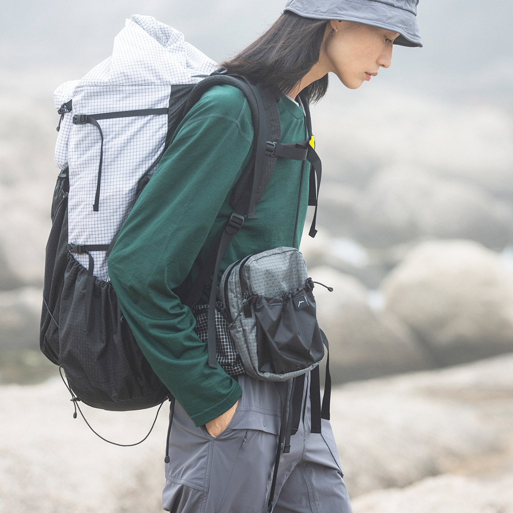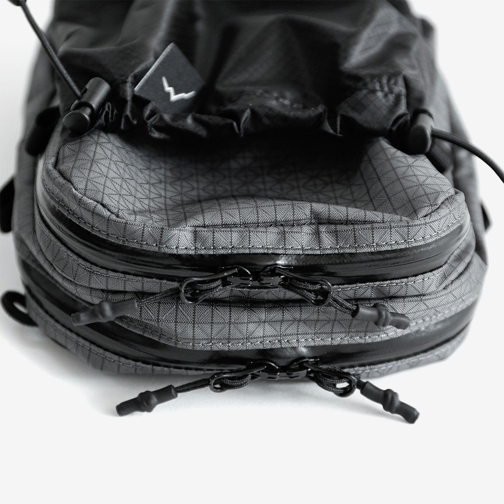CAYLの『Seorak 6』は、スクエア型でポケットの豊富なサコッシュ。 4つのポケットスペースが設けられていて、いろんな使い分けに対応しています。 1. メインポケット1(30Dコーデュラナイロン製の仕切りあり) 2. メインポケット2(仕切りなし) 3. フロント外ポケット(30Dコーデュラナイロン) 4. 背面外ポケット(エアメッシュ素材で通気とクッション性あり) メインポケットはジッパー式、フロント外ポケットは上部にドローコード、下部には水抜き穴があります。背面外ポケットはベルクロ式で素早く開け閉めできます。 外ポケットと、内部の仕切りに採用された30Dコーデュラナイロンは、強度がありながらも薄手で少し透け感があります。 ショルダーストラップの接触面には3Dエアメッシュを採用し、通気性とクッション性を持たせ、もちろん簡単に長さ調整も可能です。 カラー、素材違いでいくつものモデルが用意されているので、好みに合わせて選べるのも◎ カラー:Grey カラー:Black