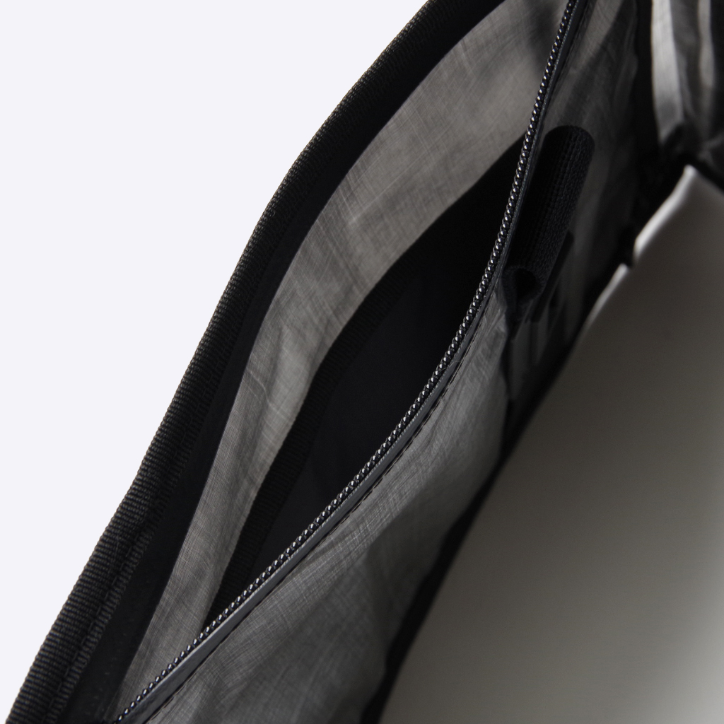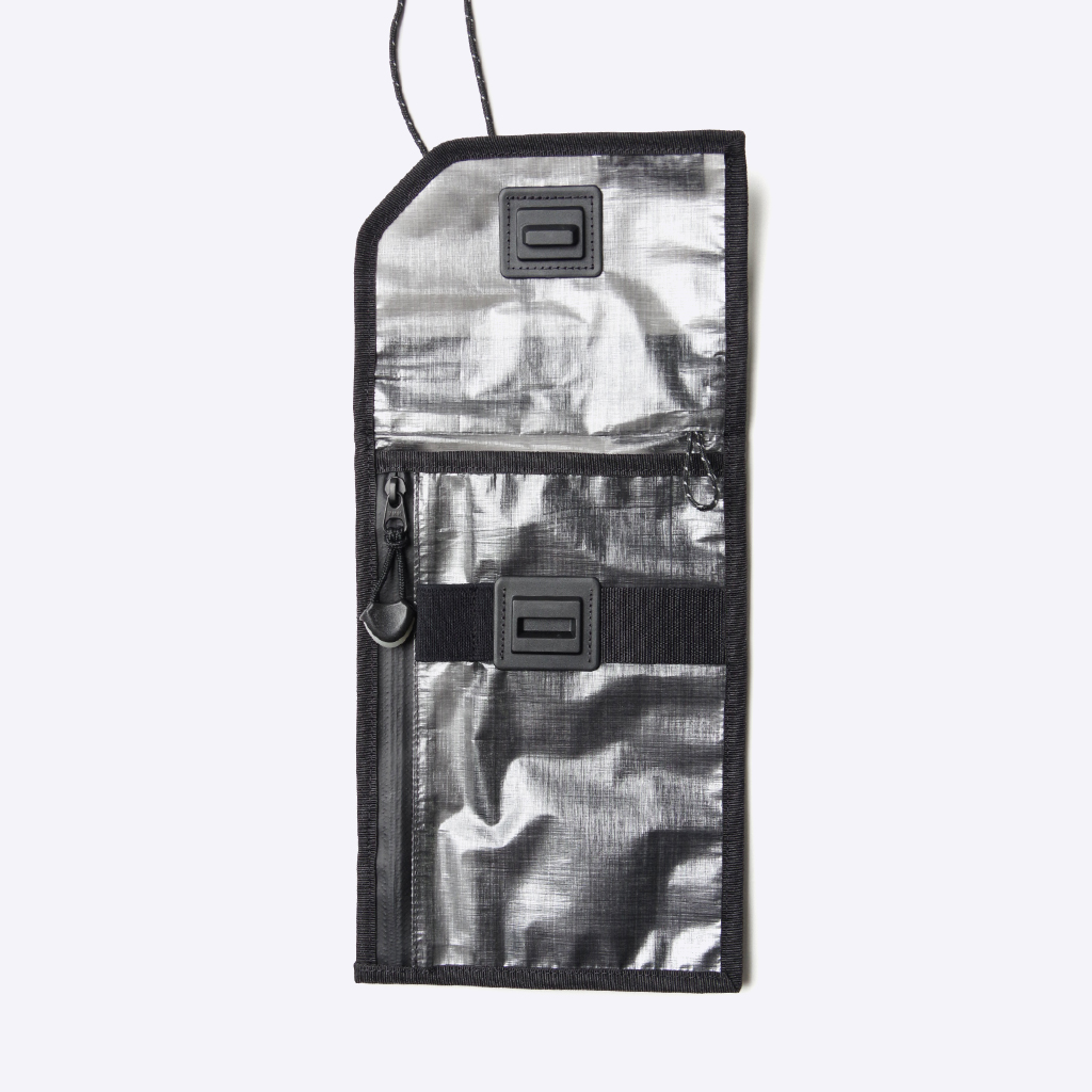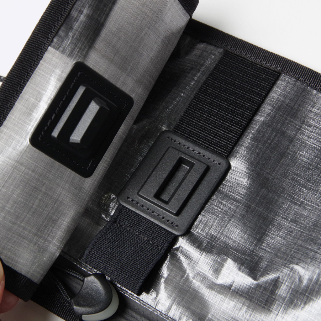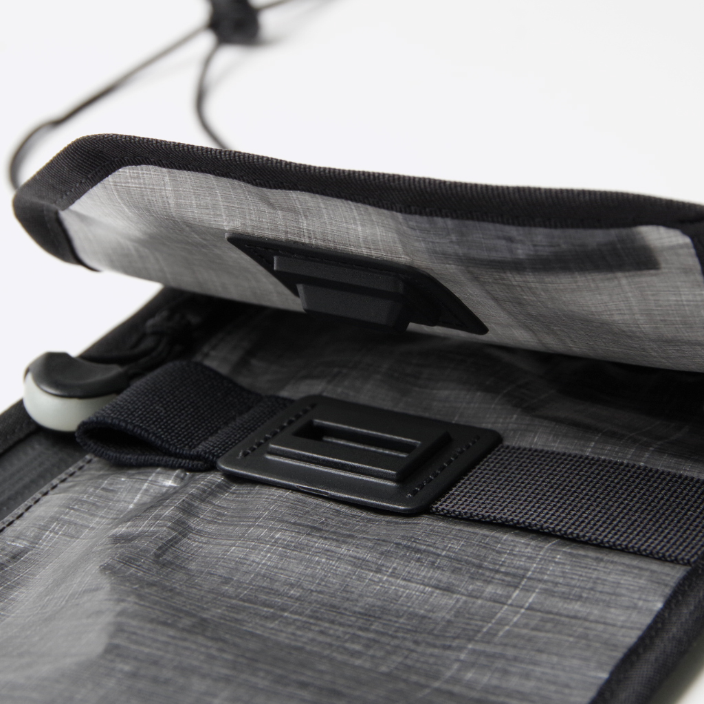 海外旅行に行けなくなって久しいですが、この窮屈な空気感が早く晴れることを願って作られたFlatPass。 シンプルな部屋割りで構成された、ミニマルサコッシュです。 パスポート、航空券、ペン、メモ、iPhone、カード、紙幣、チケットや切符などの収納に最適。 旅先で何かと増えがちな紙類の管理にもオススメです。 僕は展示会をまわる時にとても重宝しています。 もちろん旅行以外でも、登山口までのアプローチや、散歩、手ぶら感覚で使えますので日常使いにも。 フラットな形状で、他のバッグへの収まりも良く、サブバック、お財布としても。 カラー:DCF Gray カラー:Hybrid Black ジッパープルは蓄光仕様 マグネットで気持ち良く開閉可能 裏面もポケットで、コンパクトなノートなども収納可能 サイドジップのインナーは、仕切りがあるので財布としても コードロックでお好きな長さに調整可能 サイドジップのインナーは、仕切りがあるので財布としても 左は、2ヶ月毎日使用した状態。生地の特性上、少し縮んで良い感じのクタっと感がでます。